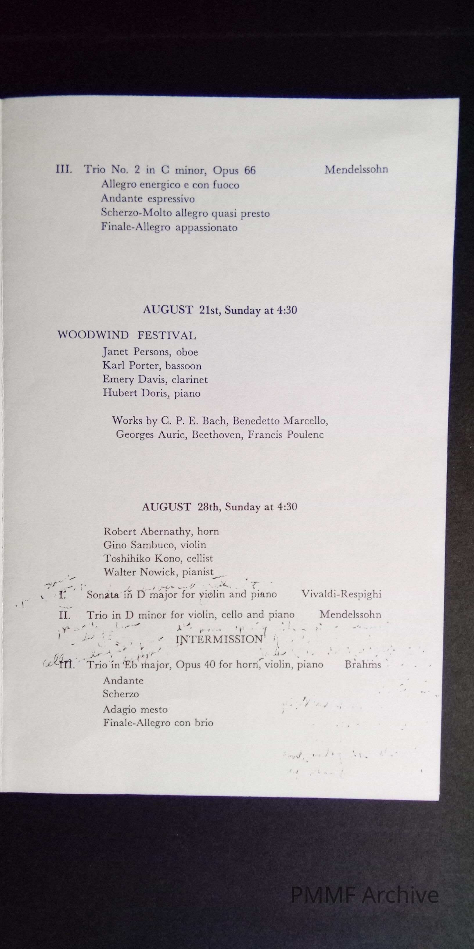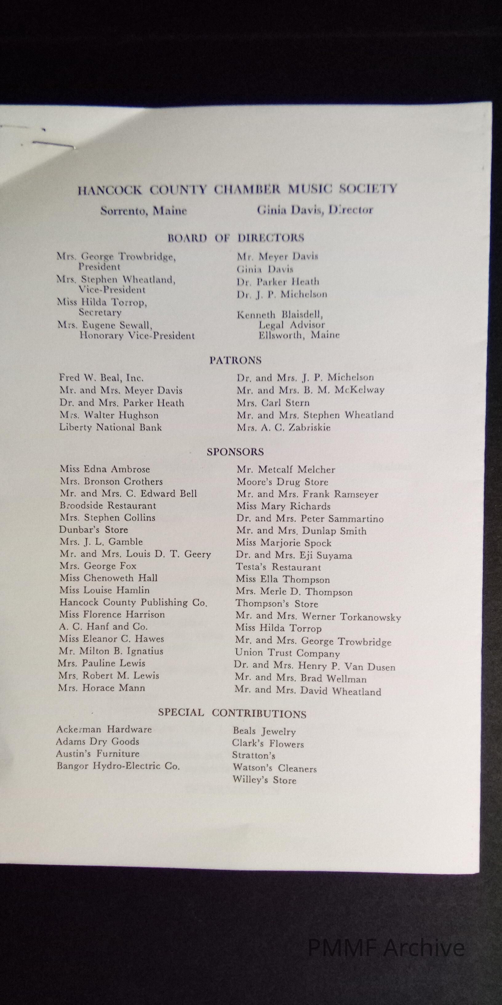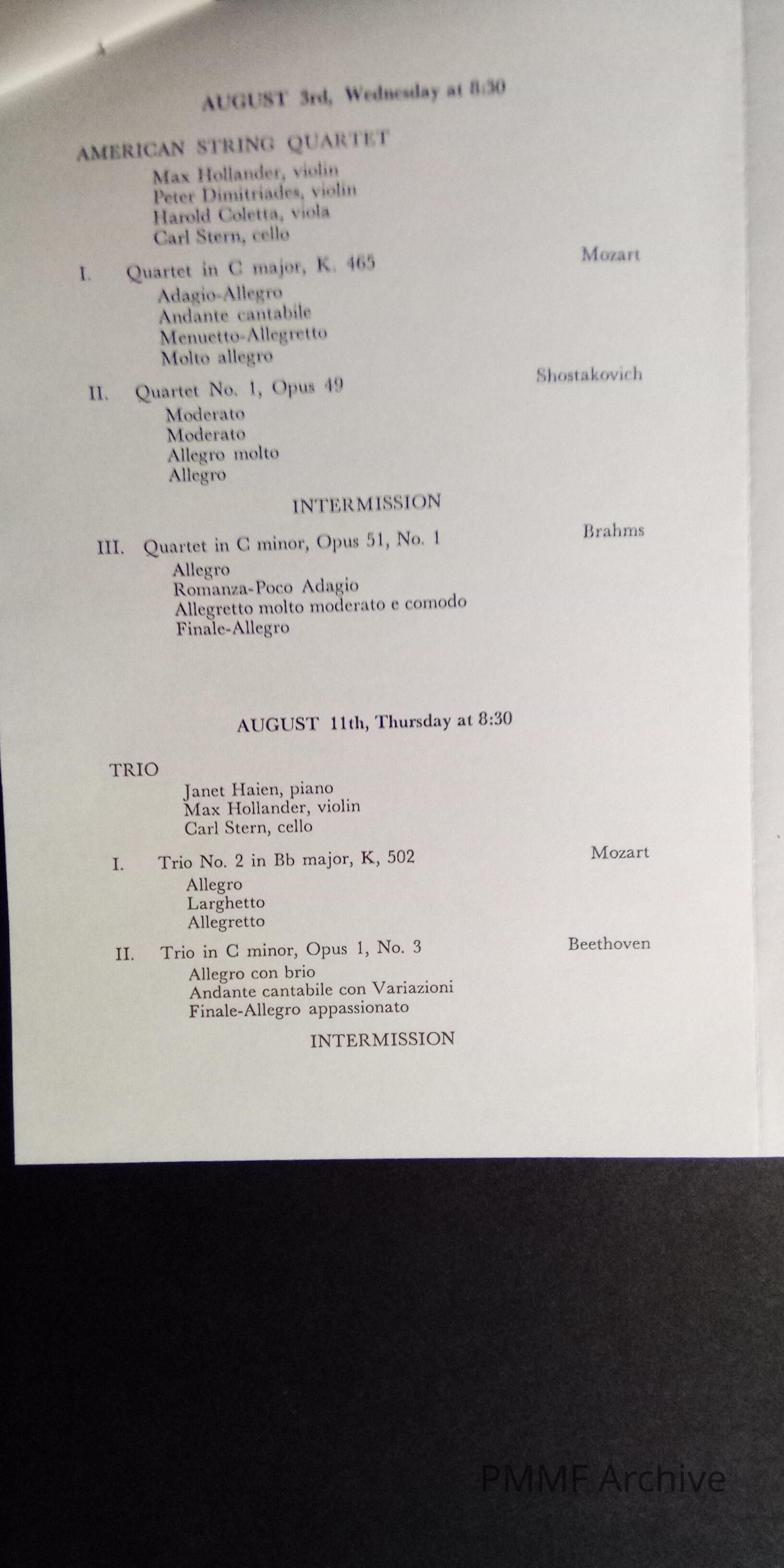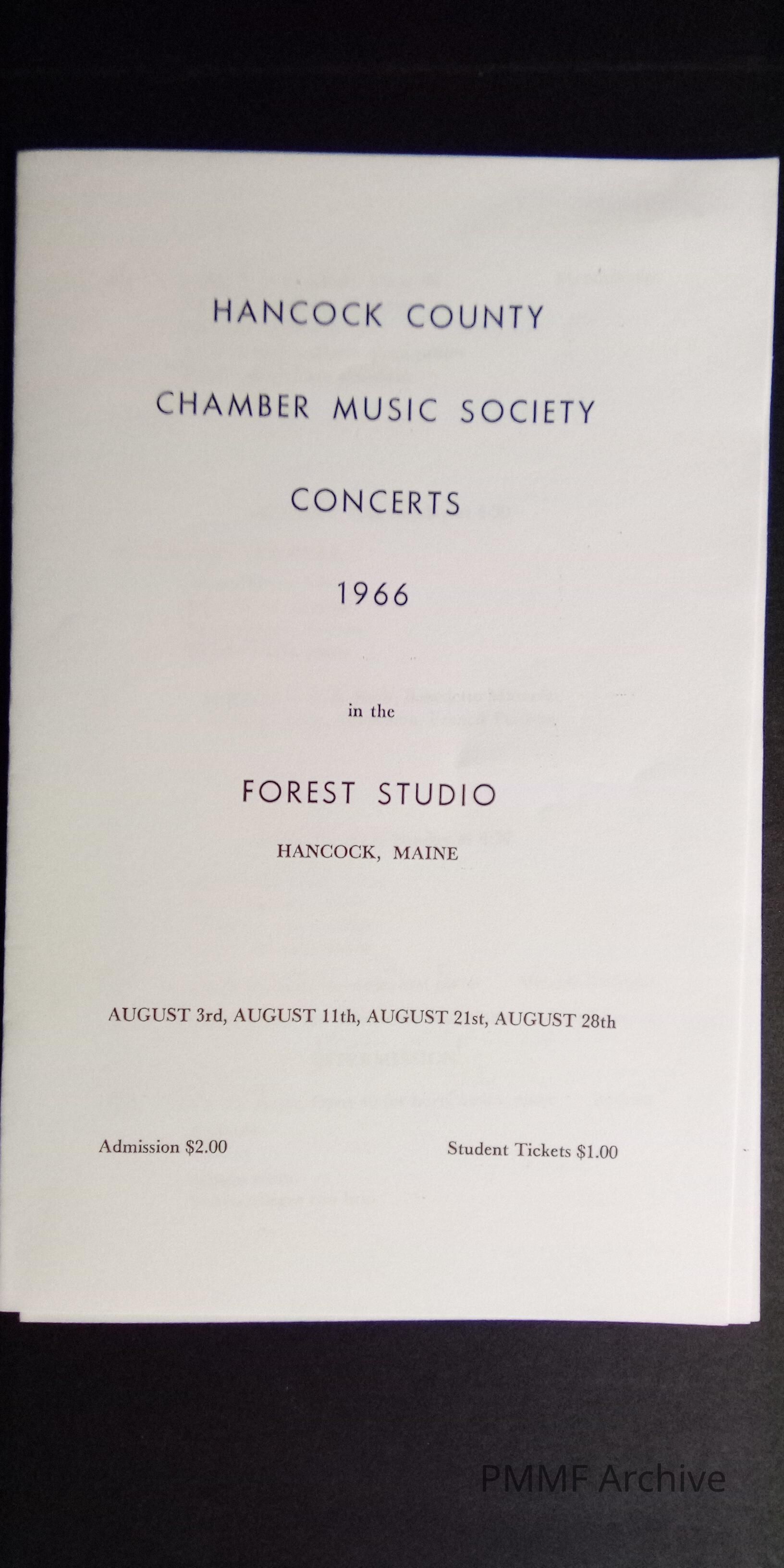 Hancock County Chamber Music Society Concerts, 1966, at the Forest Studio, Hancock, Maine