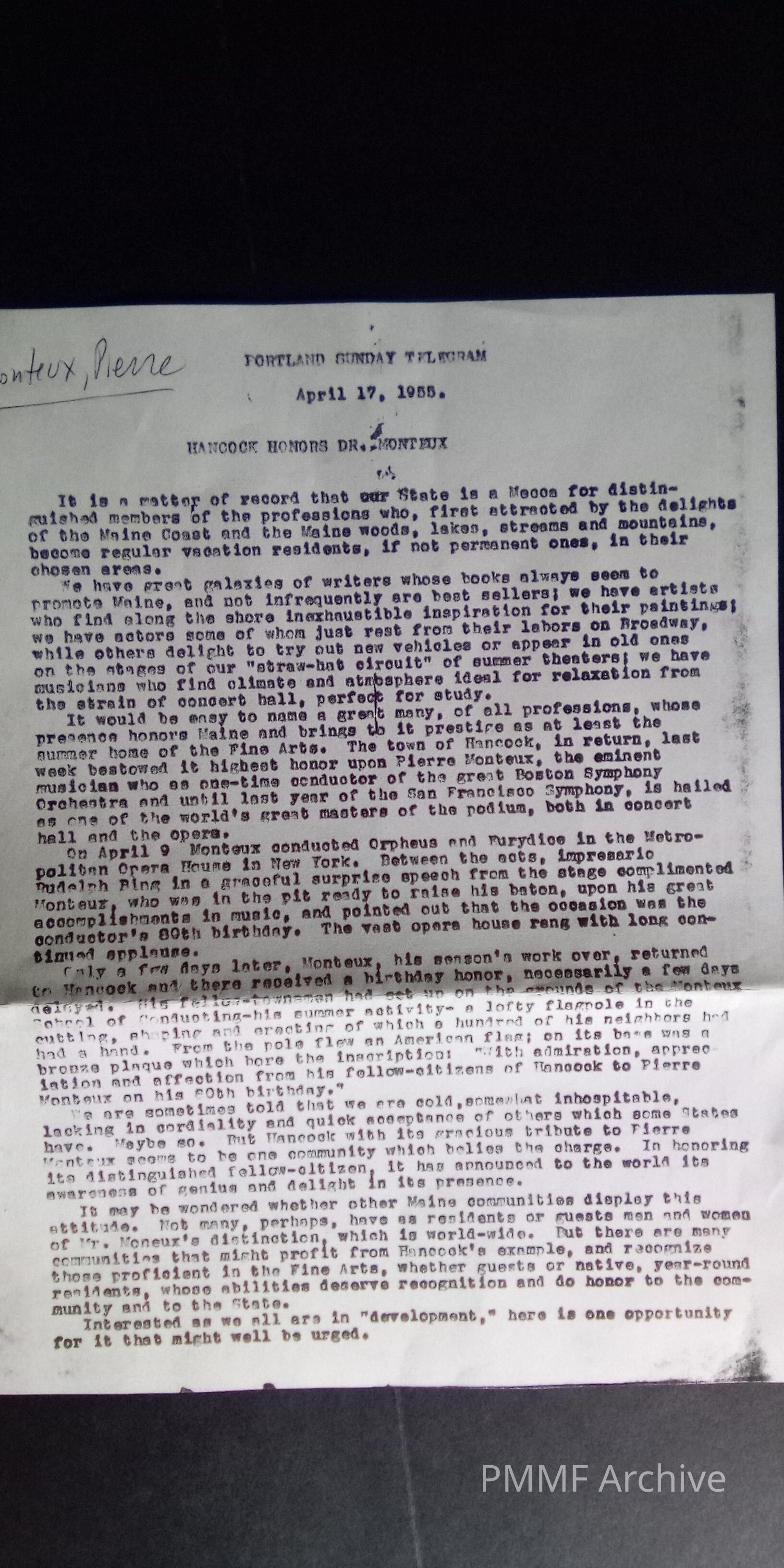 Pierre Monteux Memorial Foundation Archive