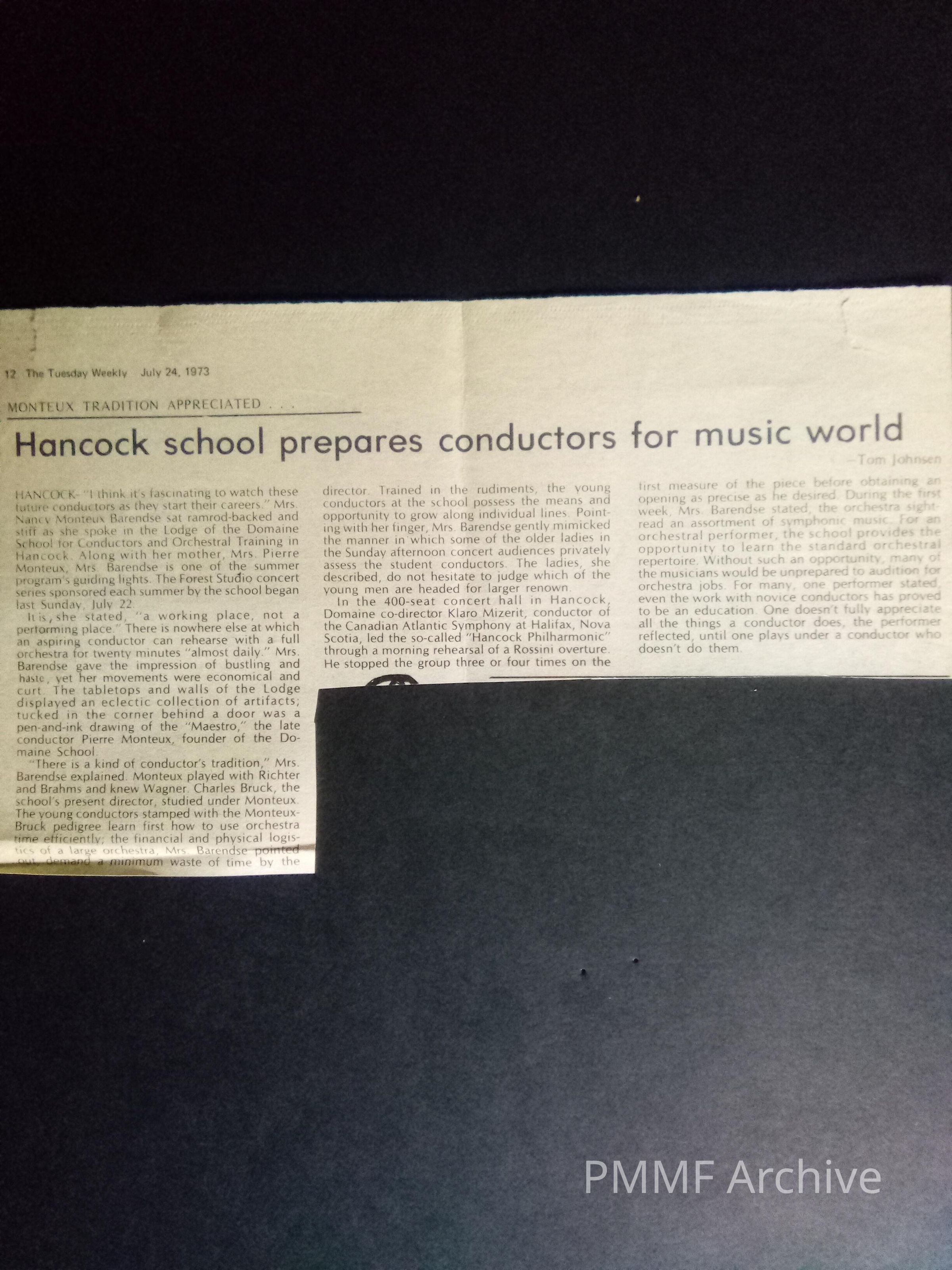 Hancock school prepares conductors for music world (1973)