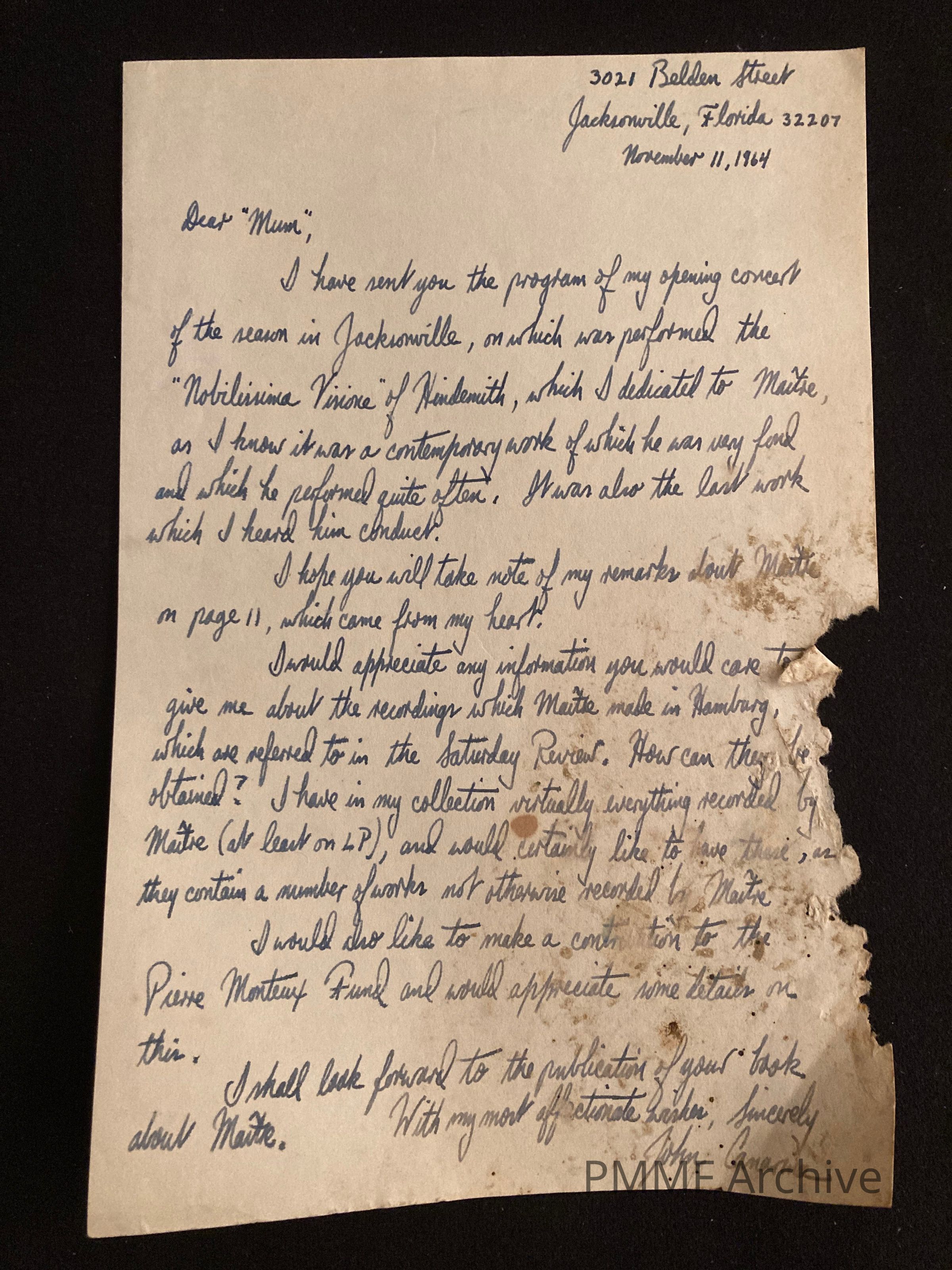 John Canarina Letter to Mum - Doris Monteux, November 11, 1964