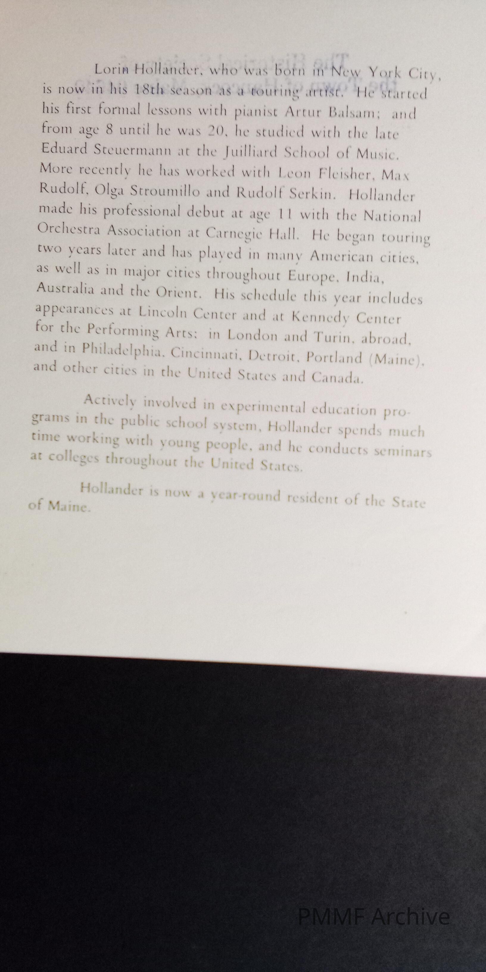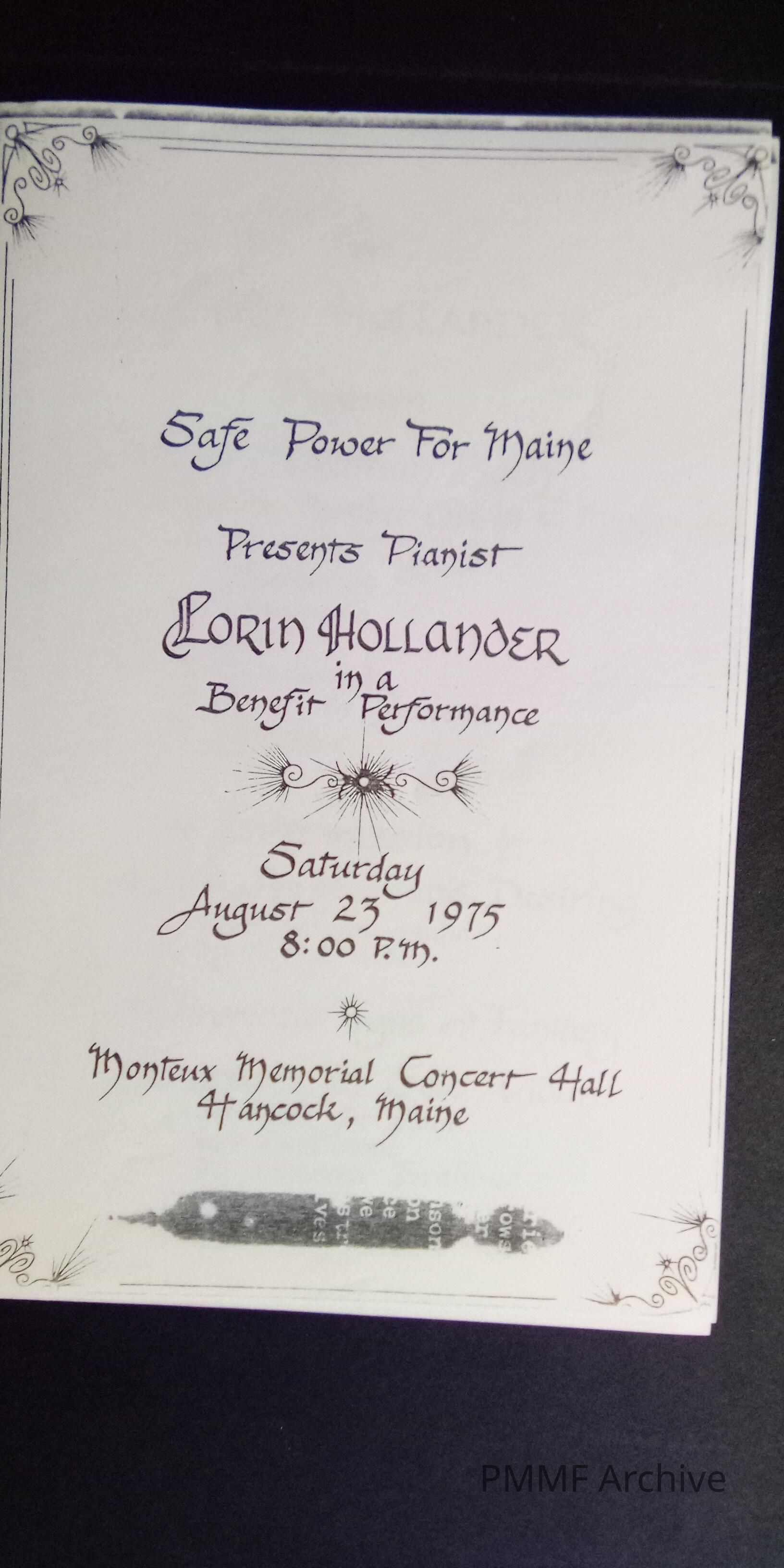 Lorin Hollander Concert (1975); benefit for Safe Power for Maine [organization concerned with nuclear power plants in Maine]Created By