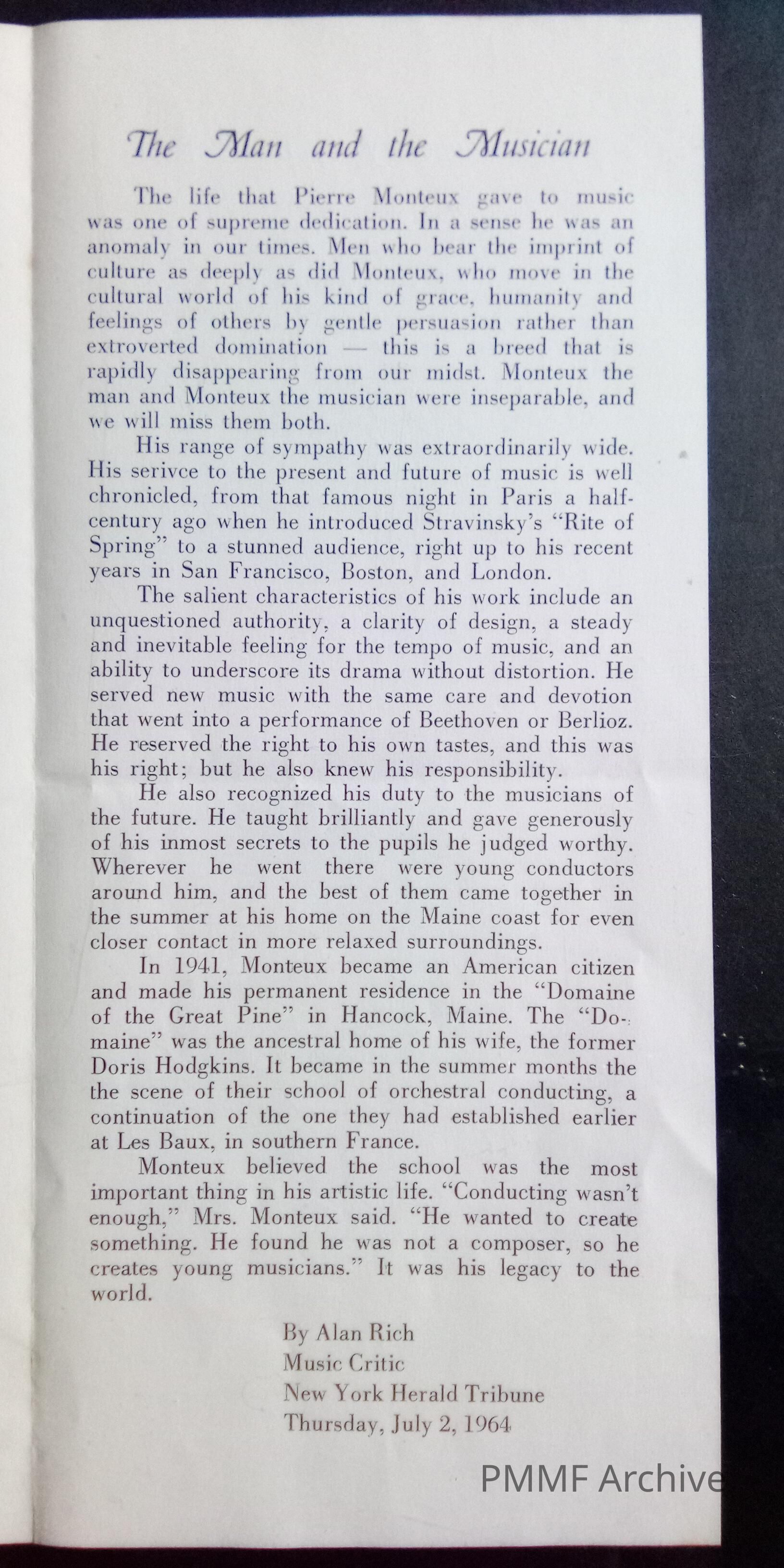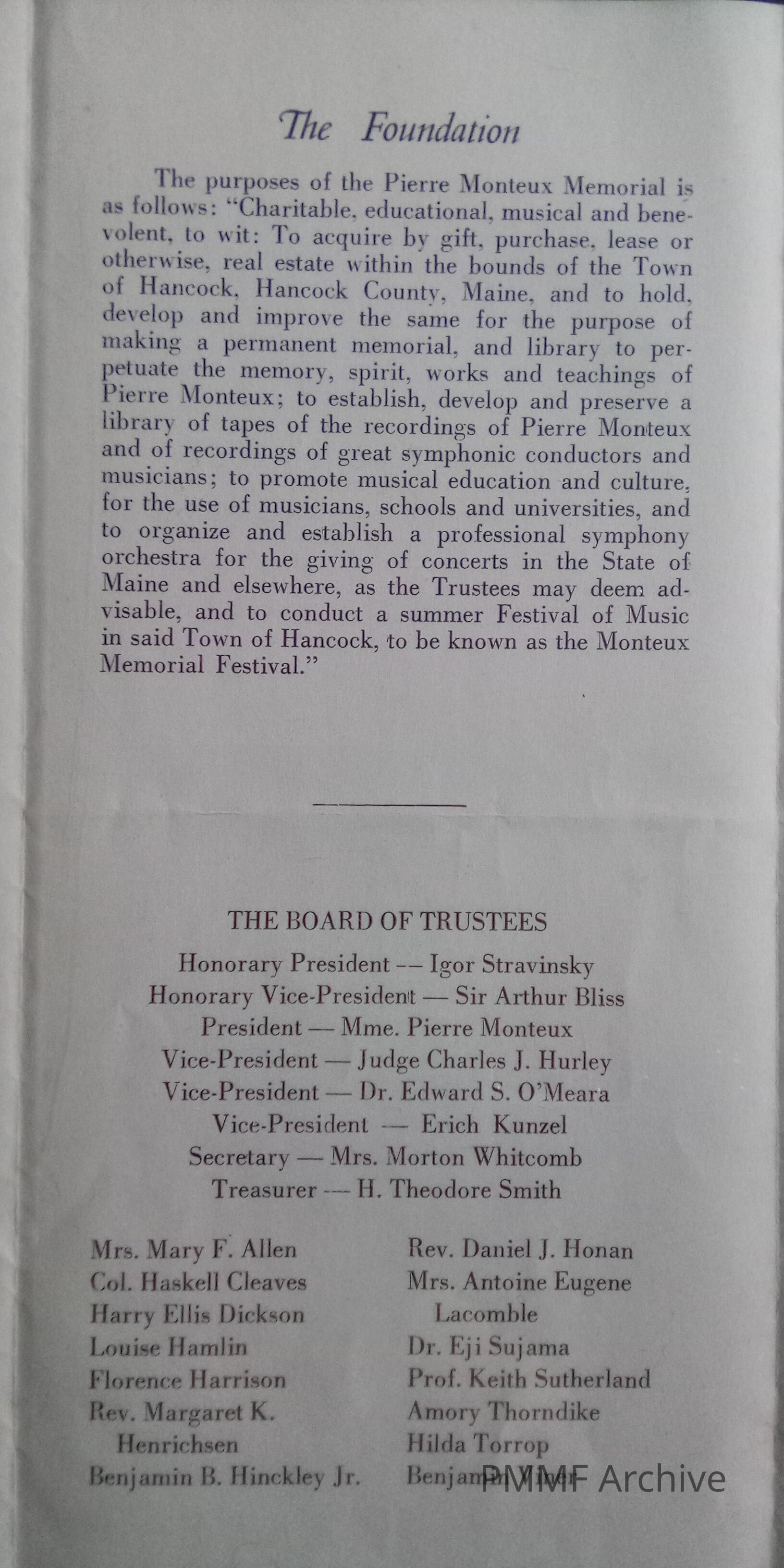 Pierre Monteux Memorial Foundation Archive