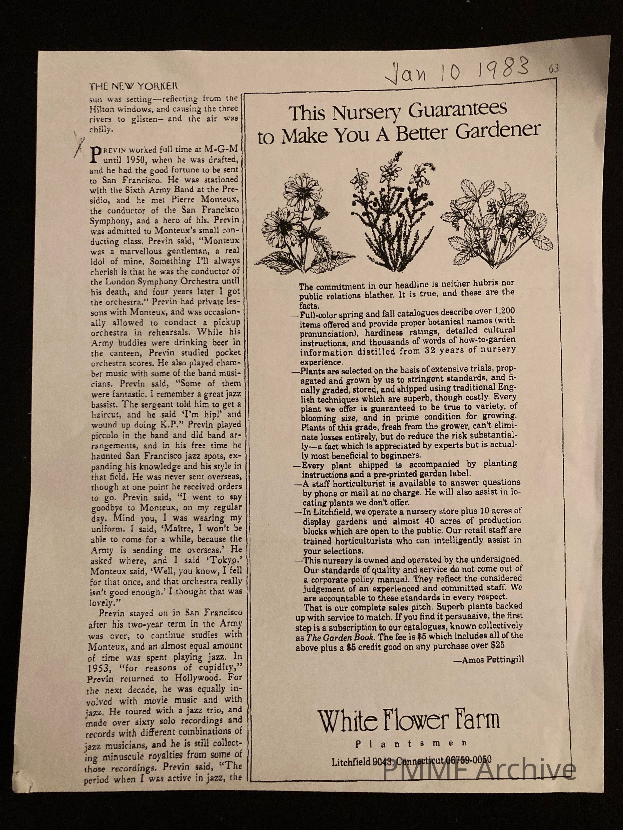 Andre Previn & Monteux – New Yorker article January 10, 1983Created By