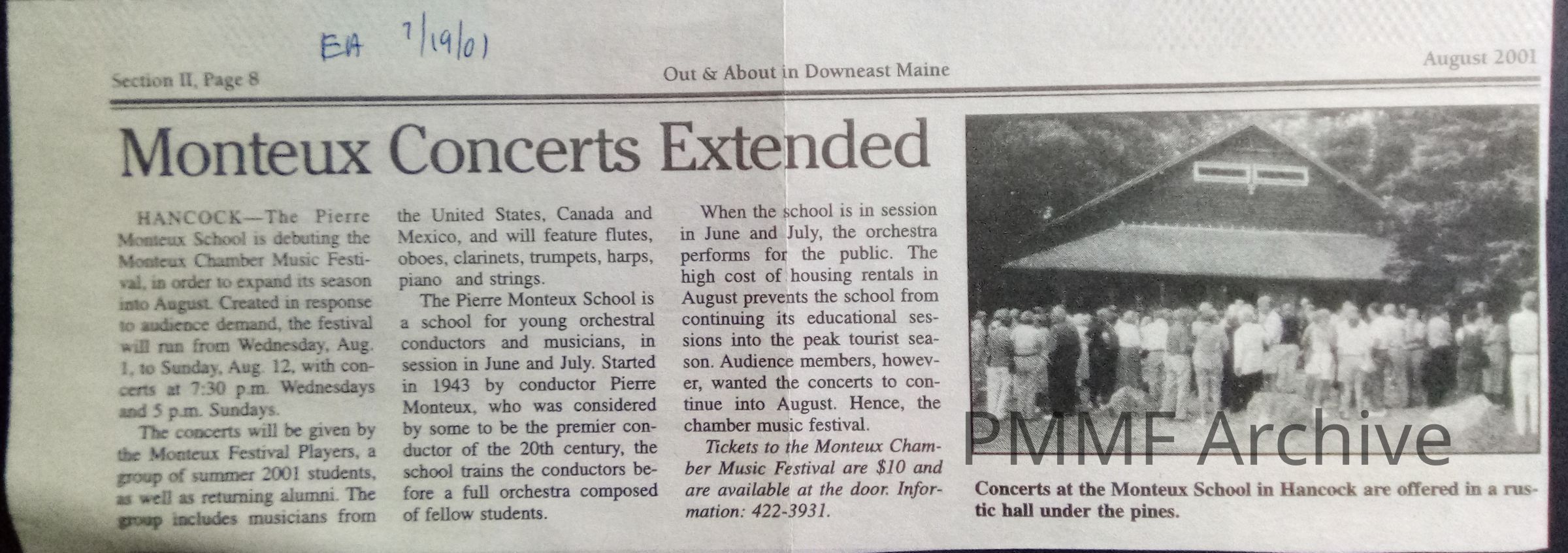 Monteux Concerts extended [Ellsworth American Out & About, 7/19/01]