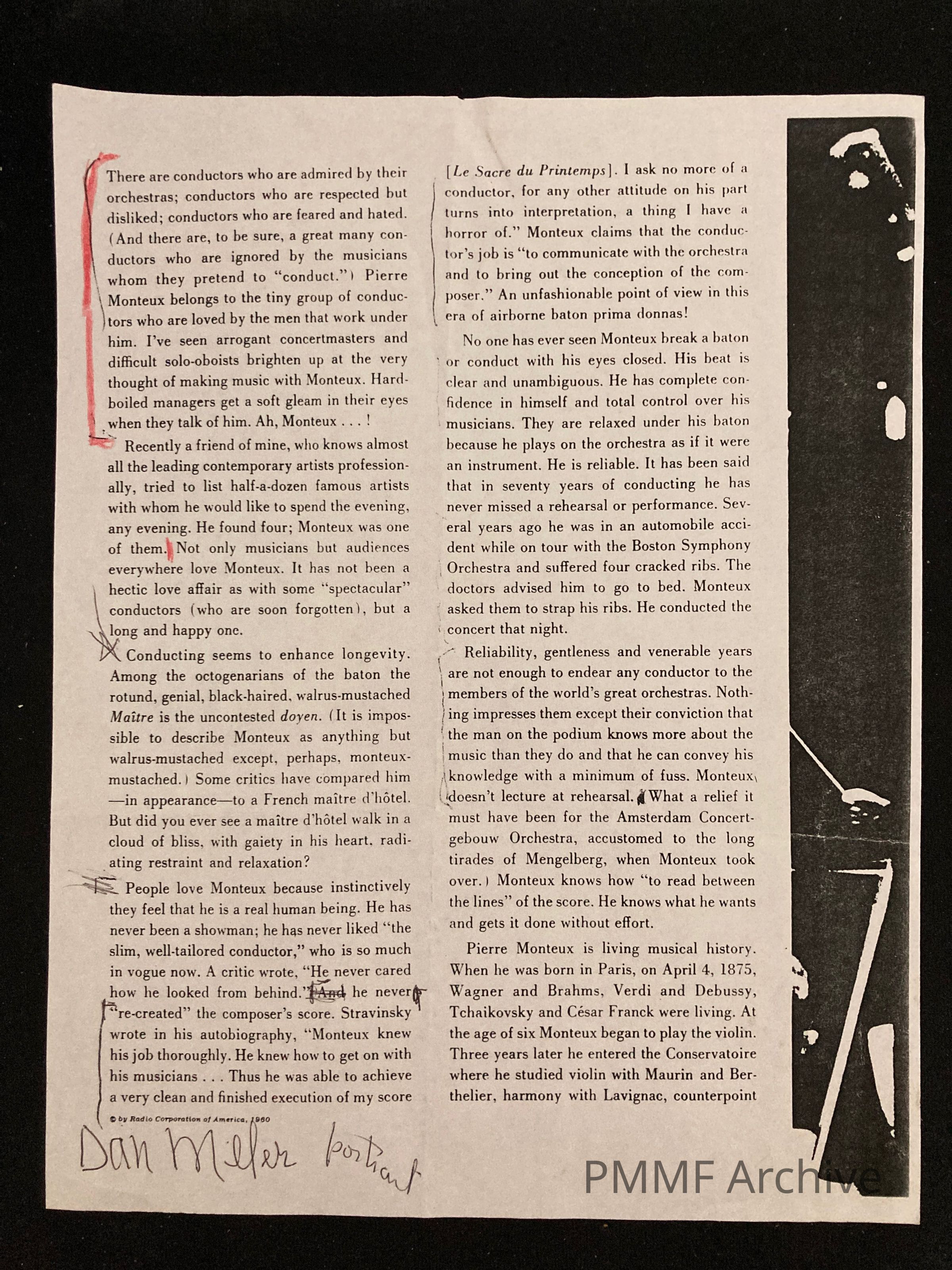 Article about Monteux as a conductor – source unknown