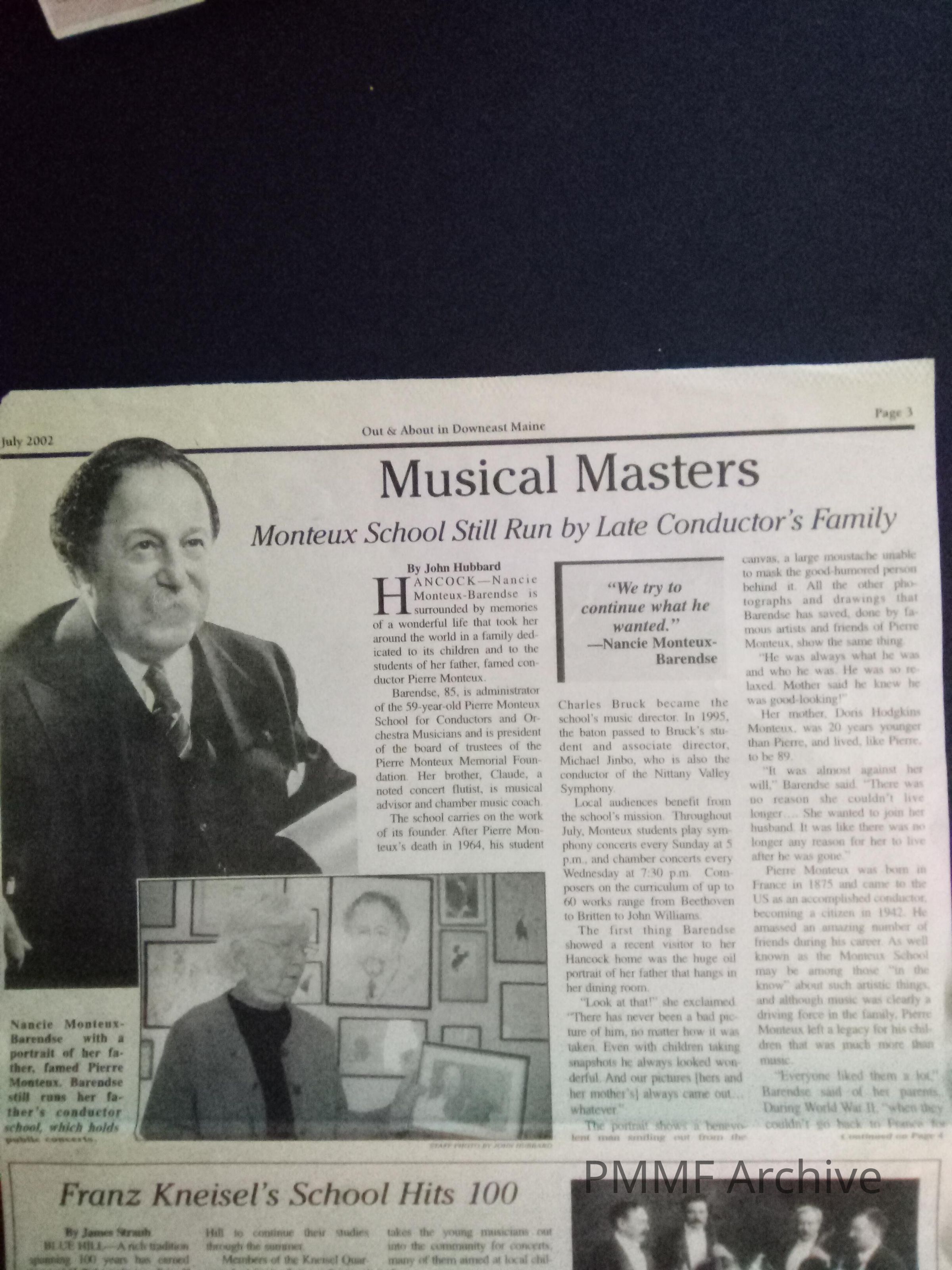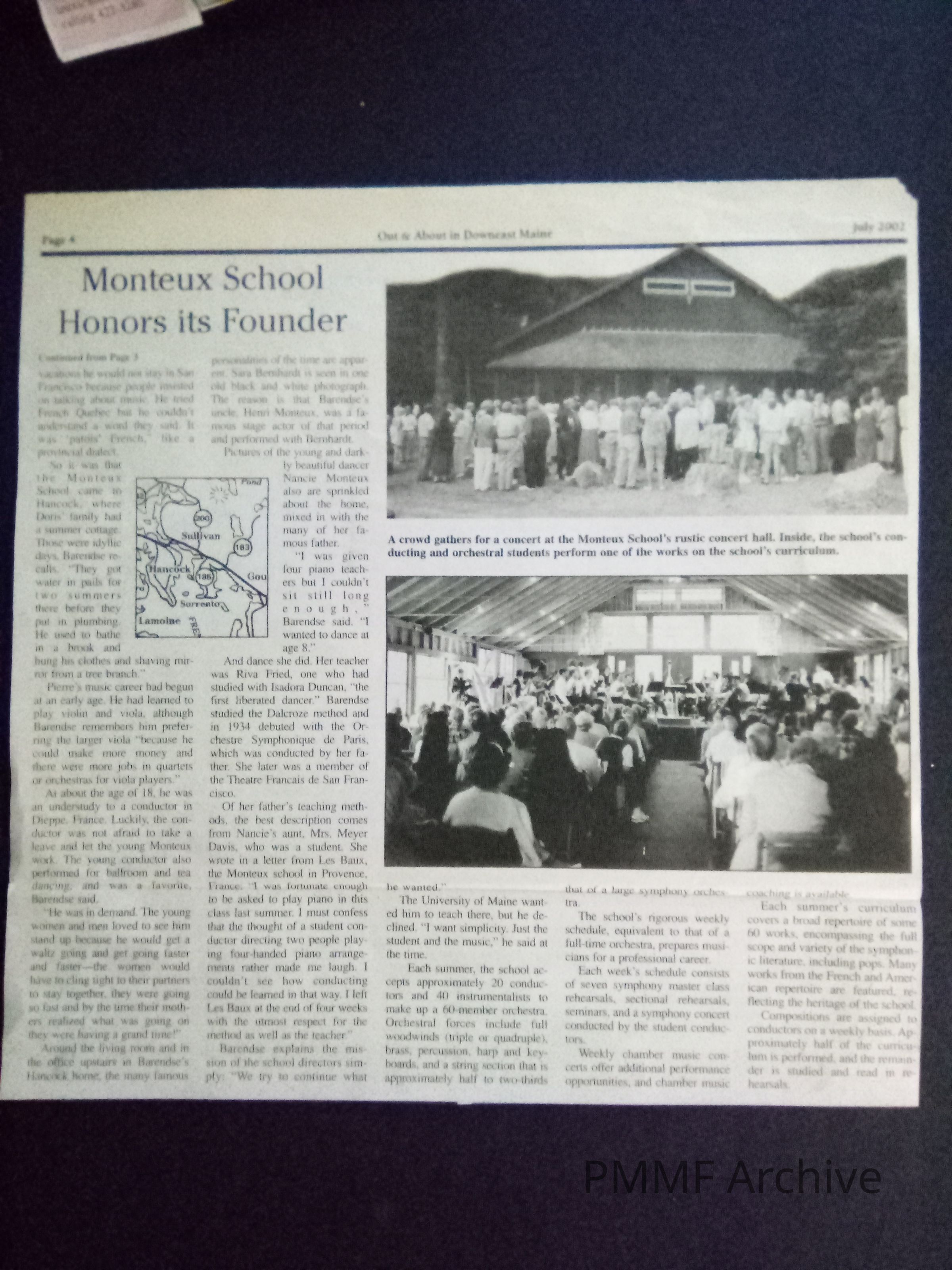 Monteux School Honors its Founder [ [Ellsworth American Out & About, July 2002]