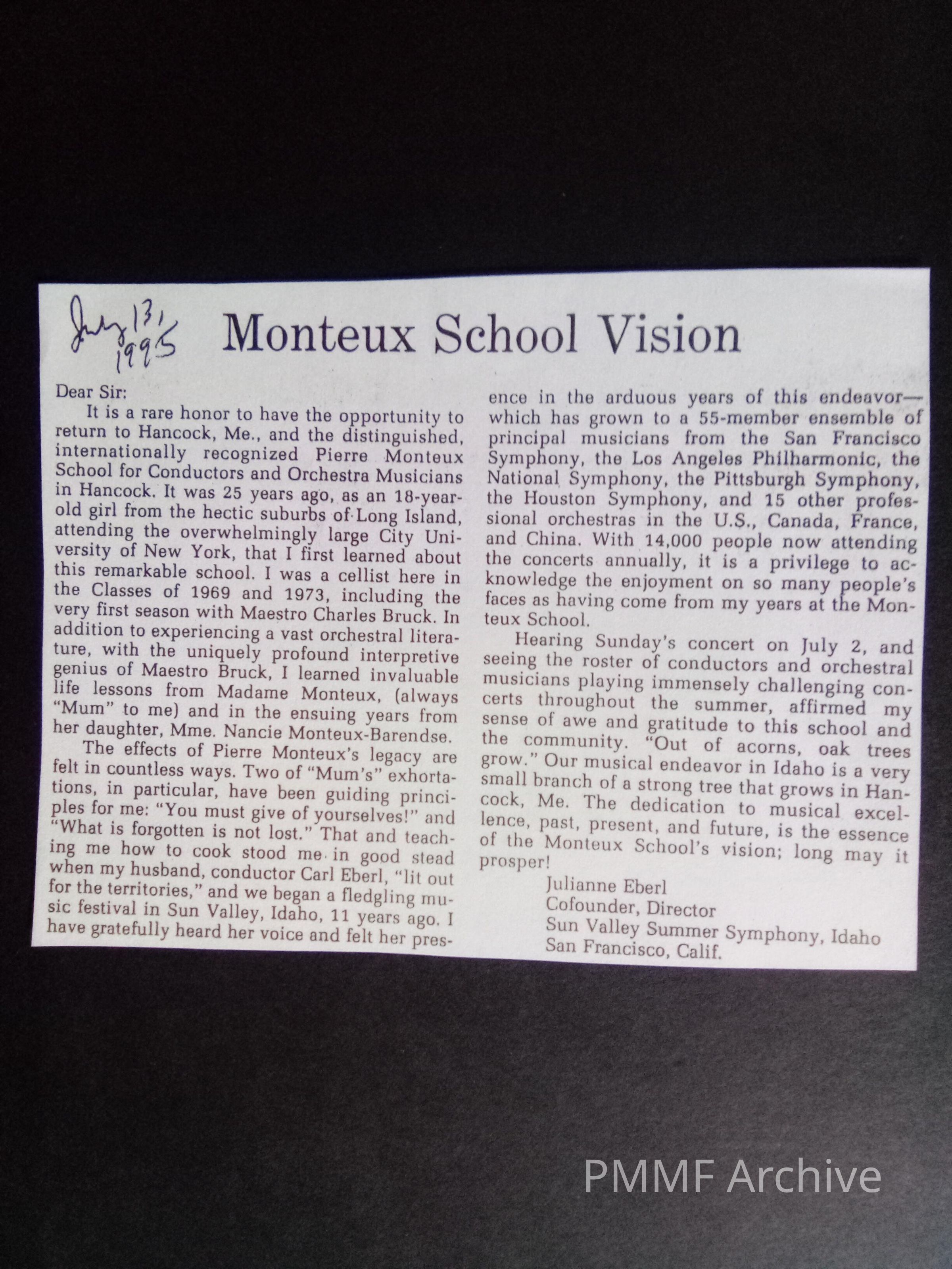 Monteux School Vision – letter to editor (Ellsworth American?) 1995