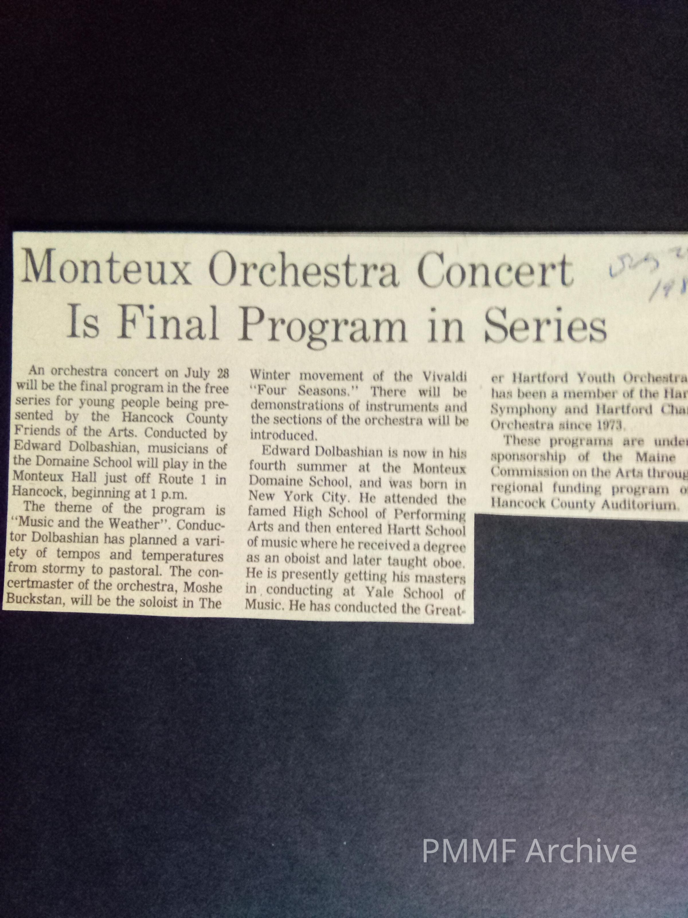 Musicians of Domaine Orchestra to play concert in free series for young people (1980)