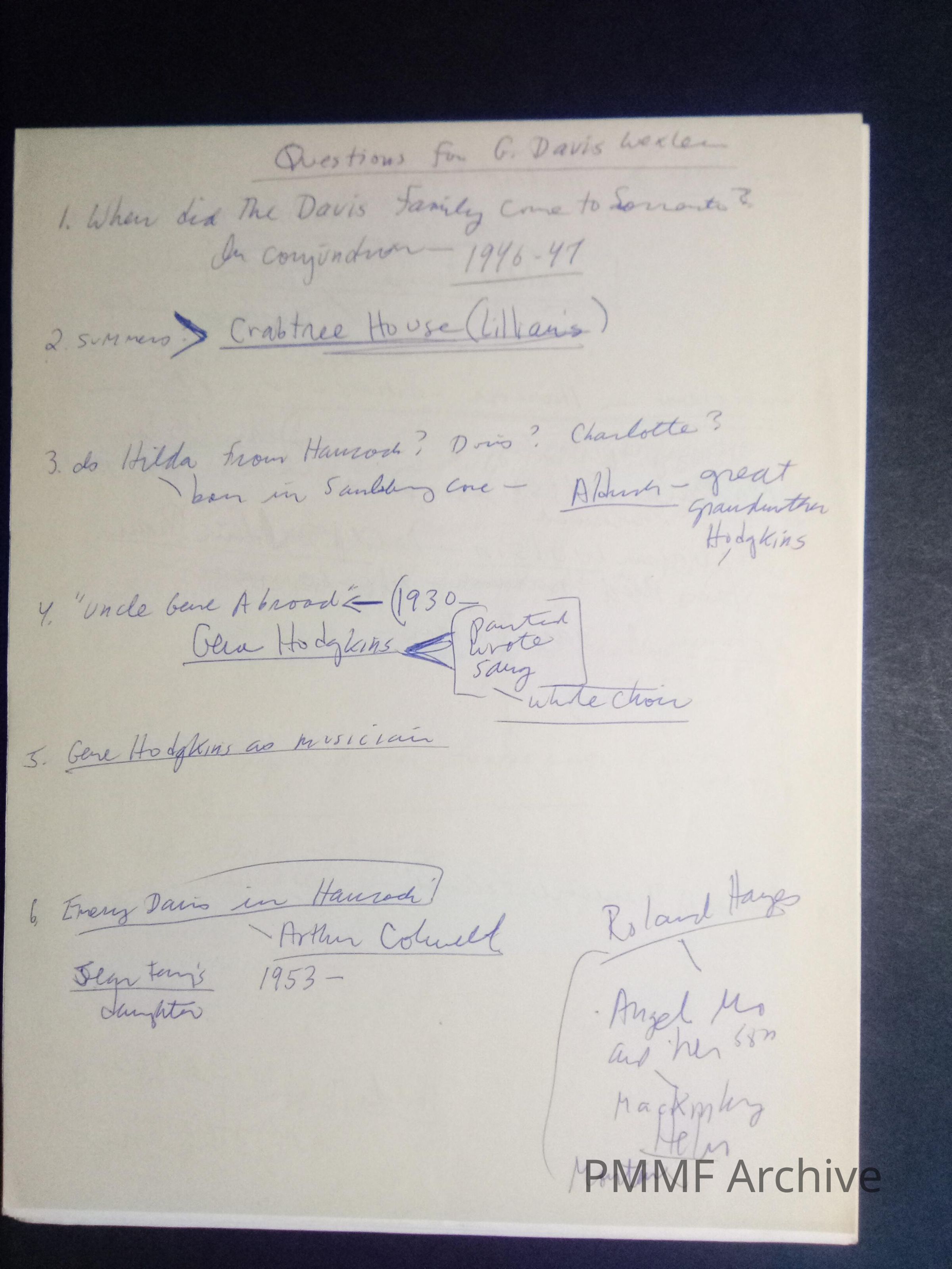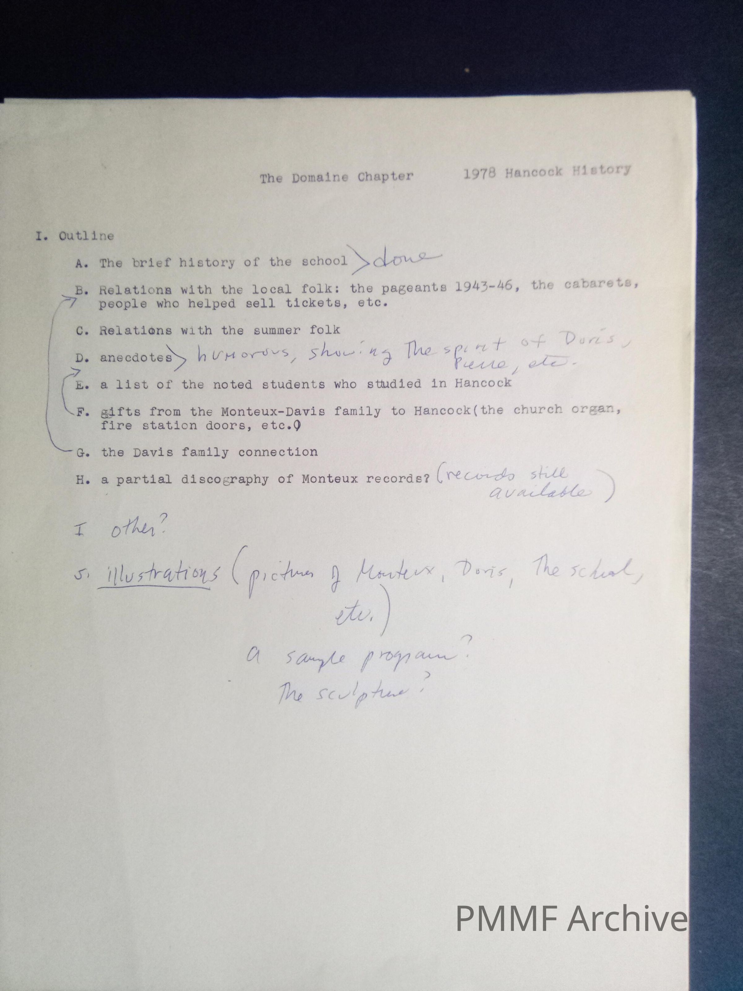 Notes for 1978 history of Hancock