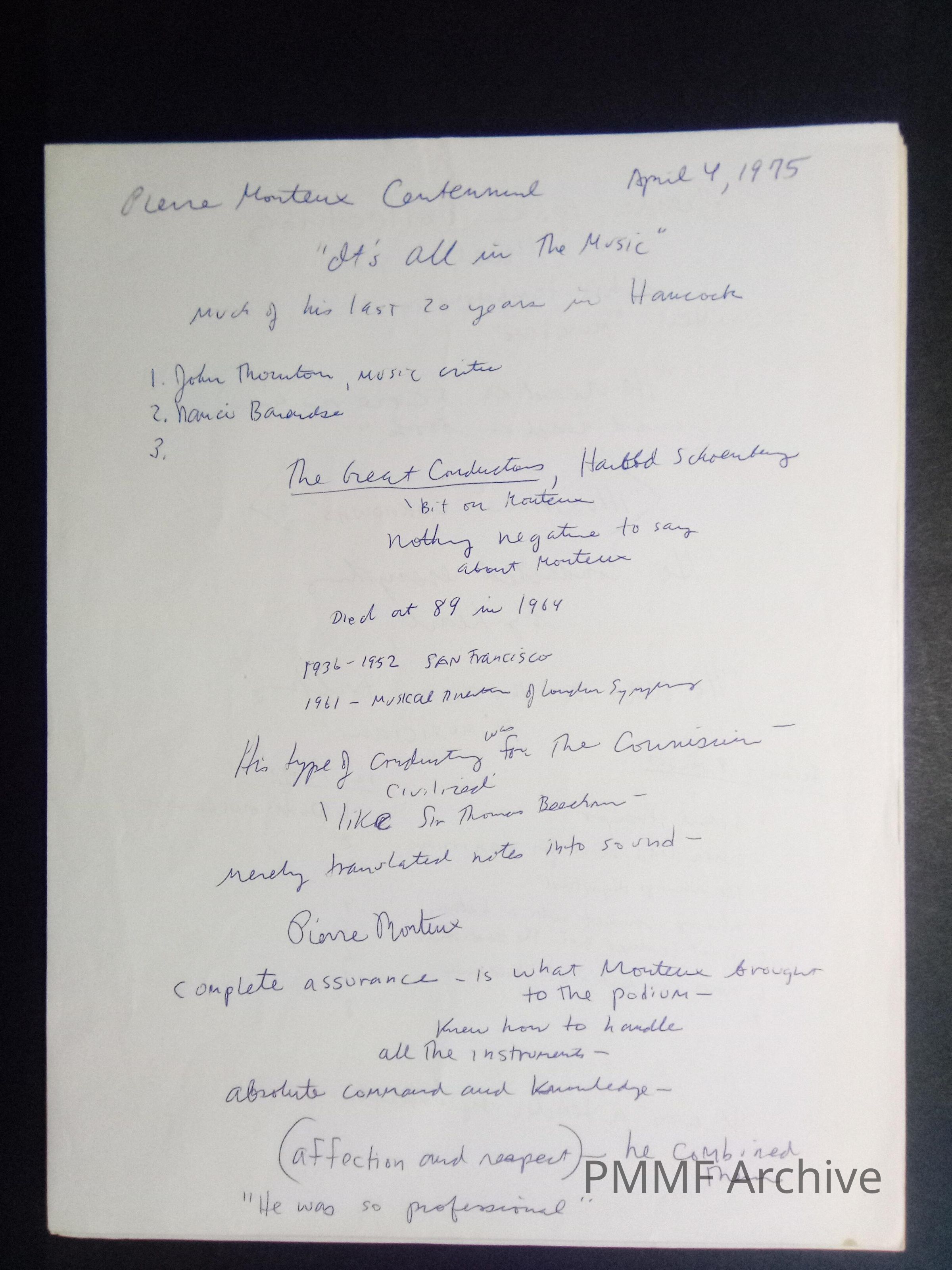 Pierre Monteux Memorial Foundation Archive