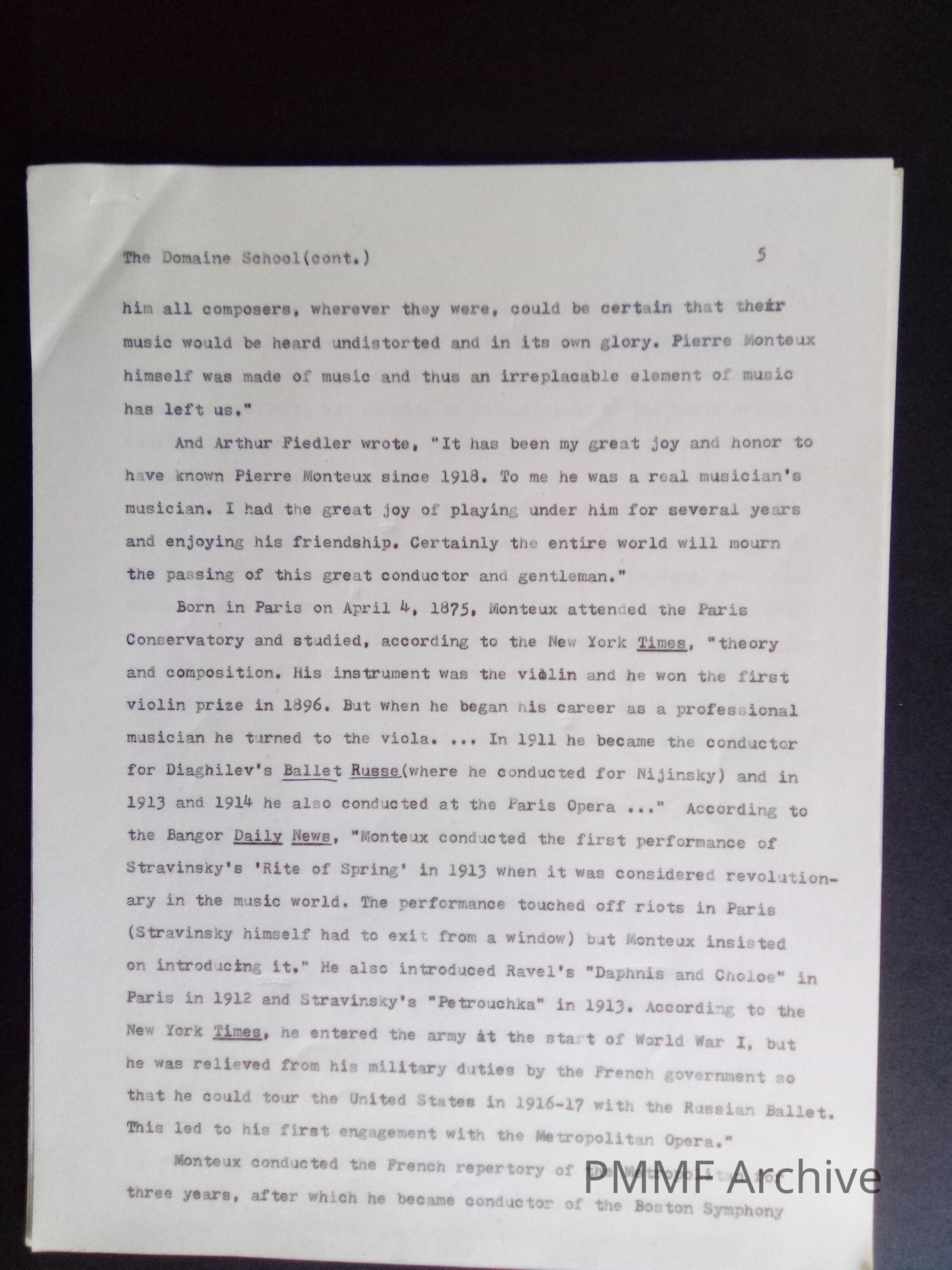 Pierre Monteux Memorial Foundation Archive