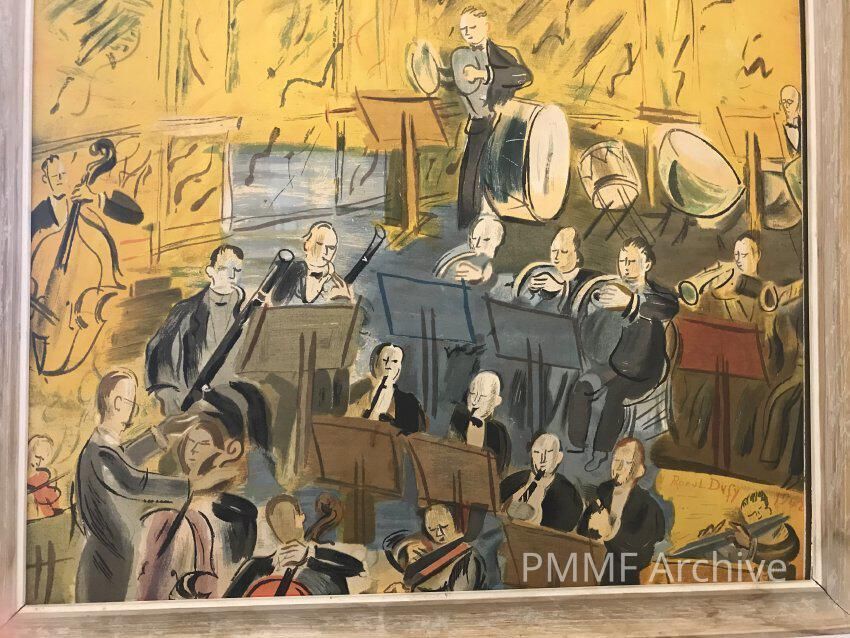 Framed painting of conductor with orchestra on paper mounted on wood by Roaul Duffy, 1942Collection