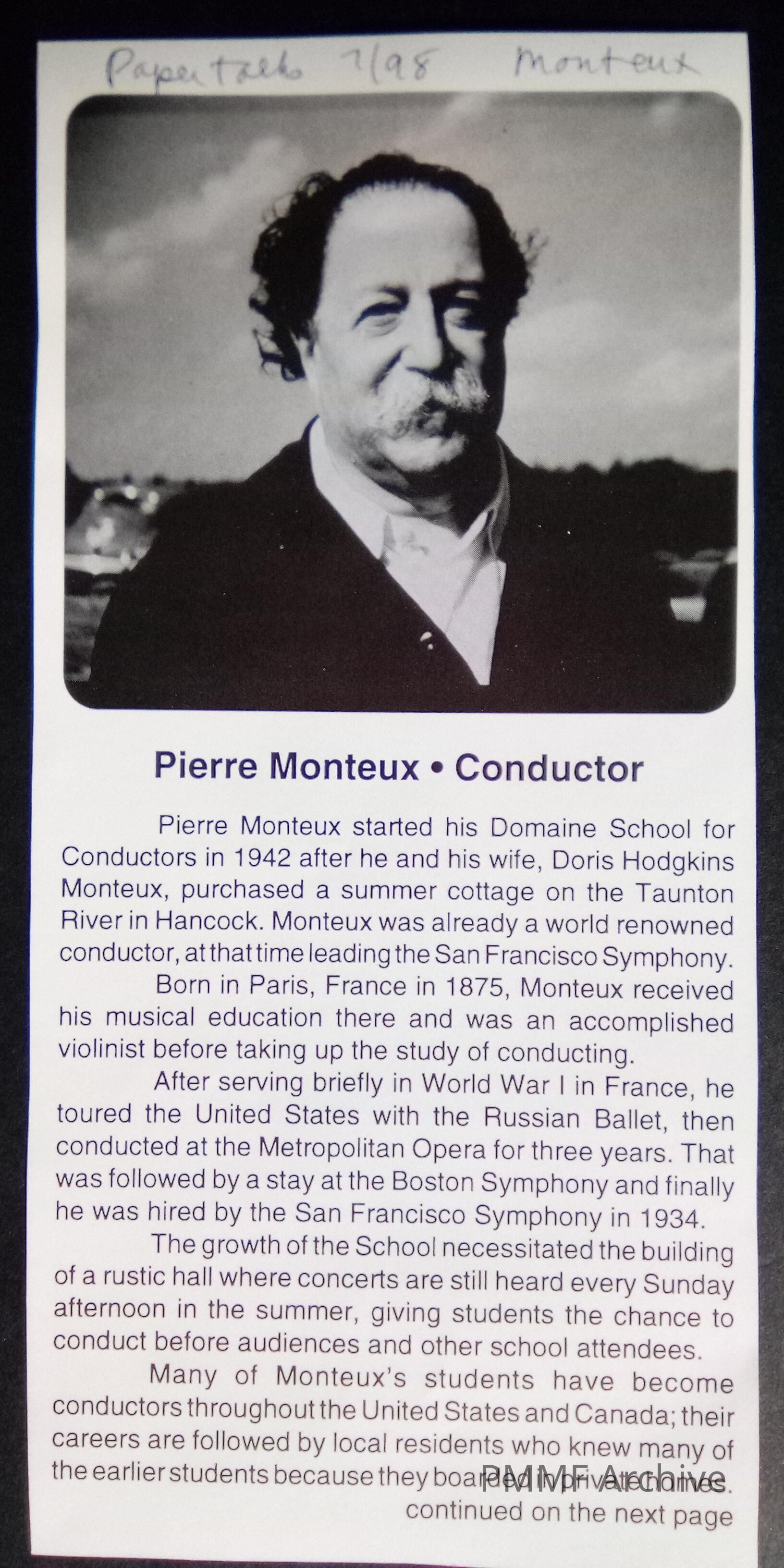 Partial essay on Monteux and school [Paper Talks magazine 7/98]