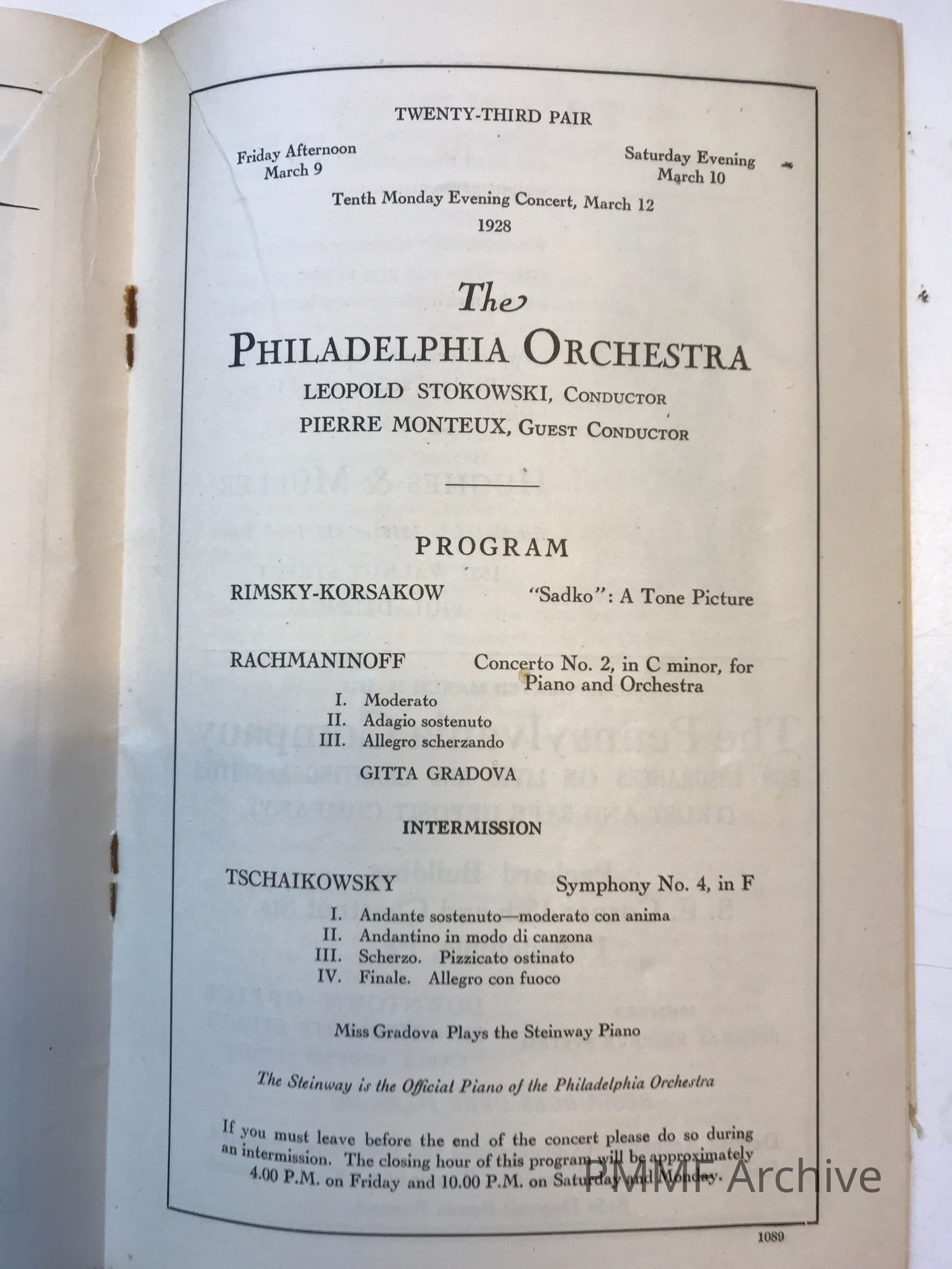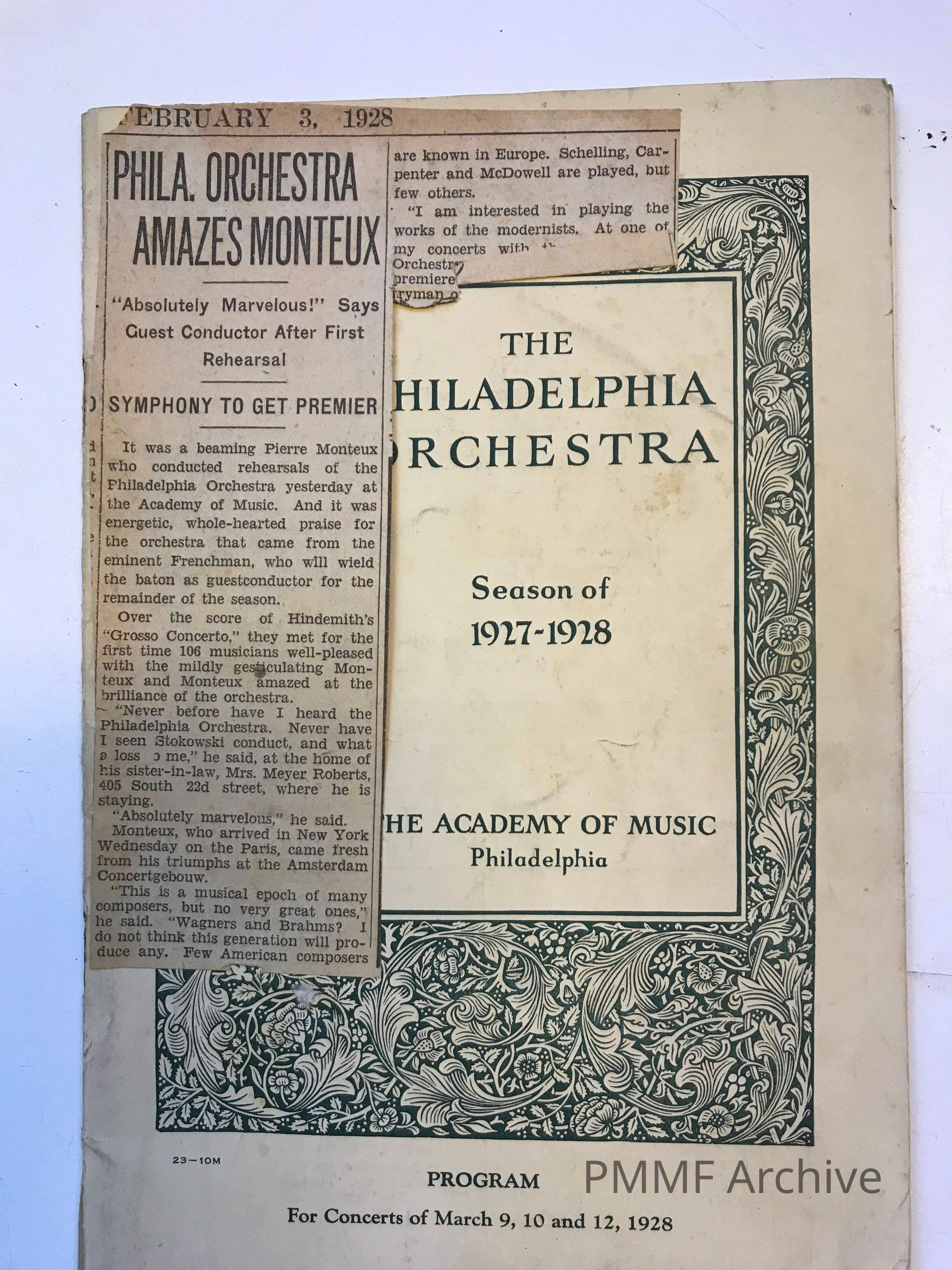 Philadelphia Orchestra, Pierre Monteux guest conductor: March 9, 10 & 12, 1928Scope and Content