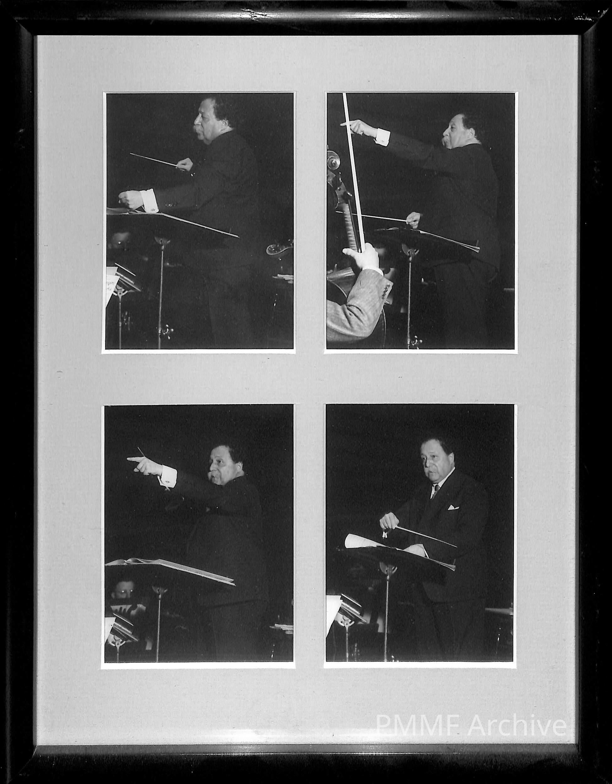 Framed B&W matted set of 4 photos of Pierre Monteux conducting in concert. Orchestra and location unidentified.Collection