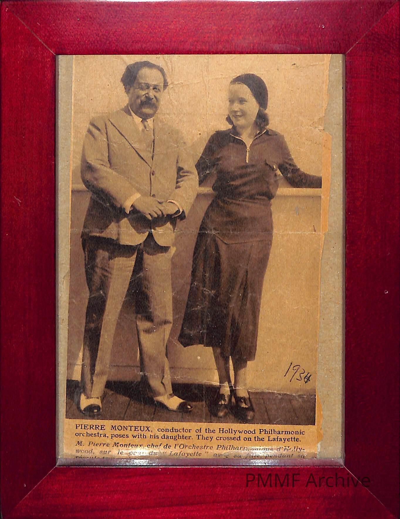 "Pierre Monteux conductor of Hollywood Philharmonic orchestra poses with his daughter. They crossed on the Lafayette"Collection