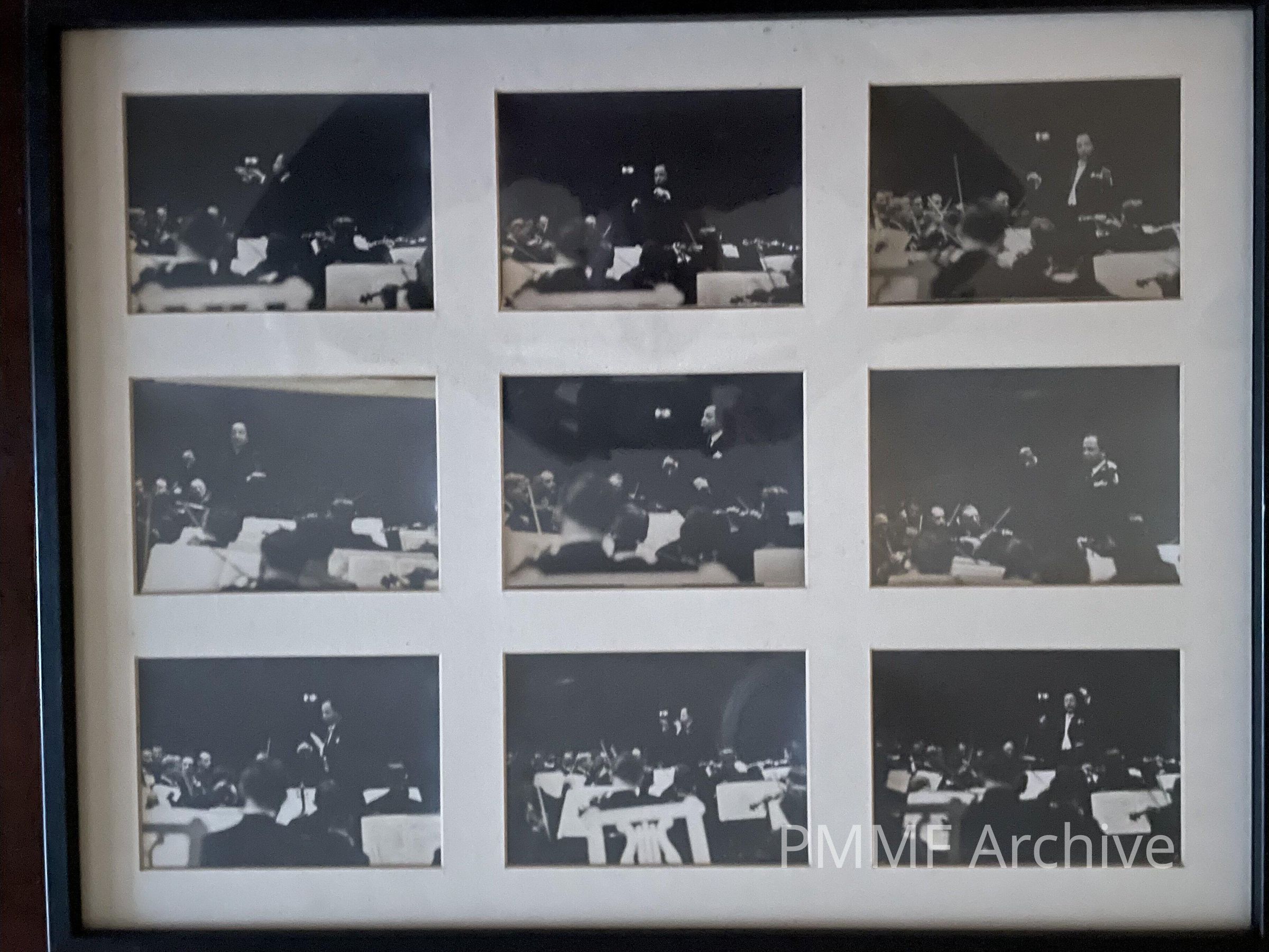 Framed set of 9 B&W photos of Pierre Monteux conducting; orchestra is not identified.Collection