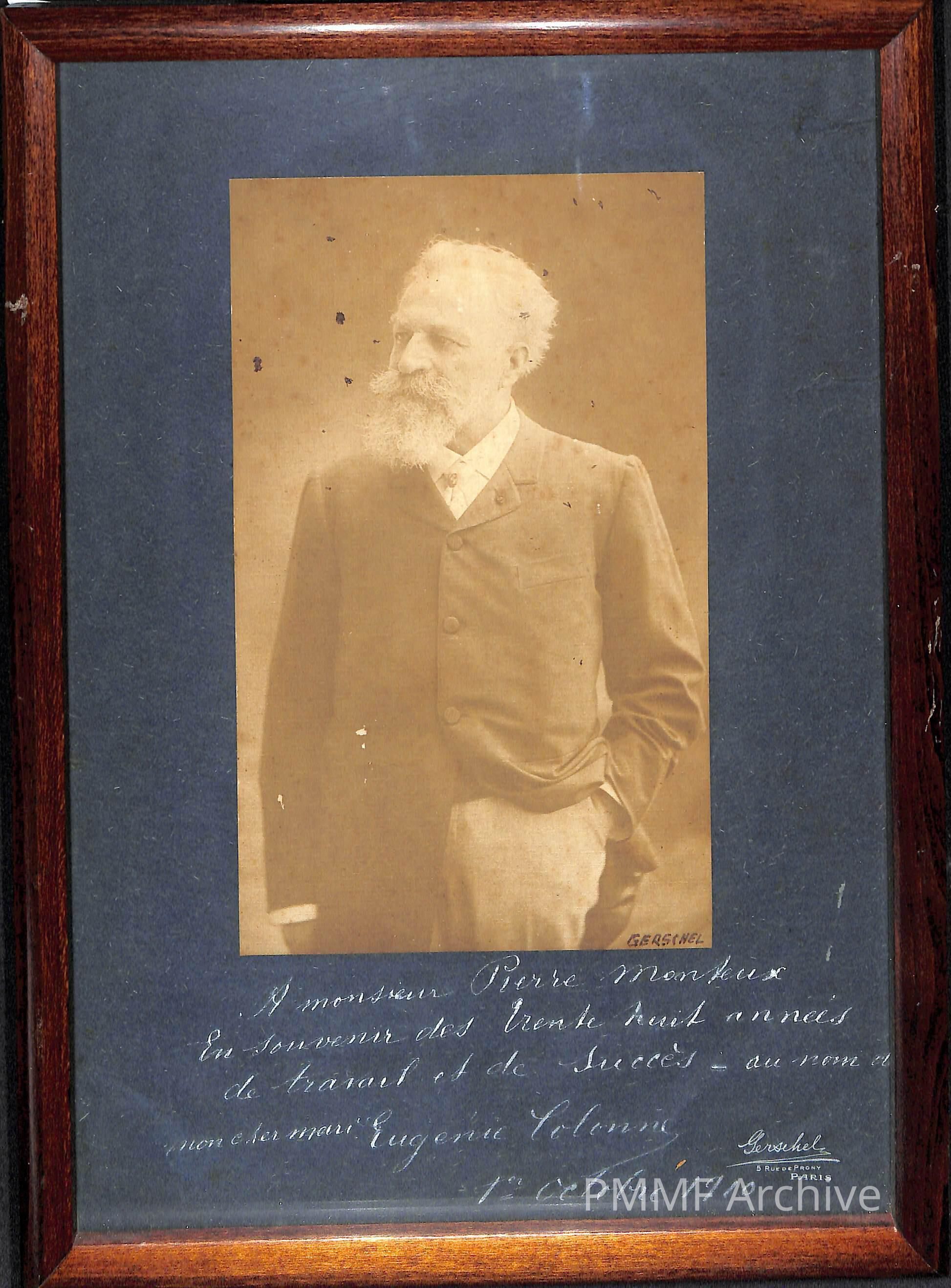 Framed matted tint photo of Edouard Colonne, founder of Concerts Colonne, October 1, 1910 [with French text]