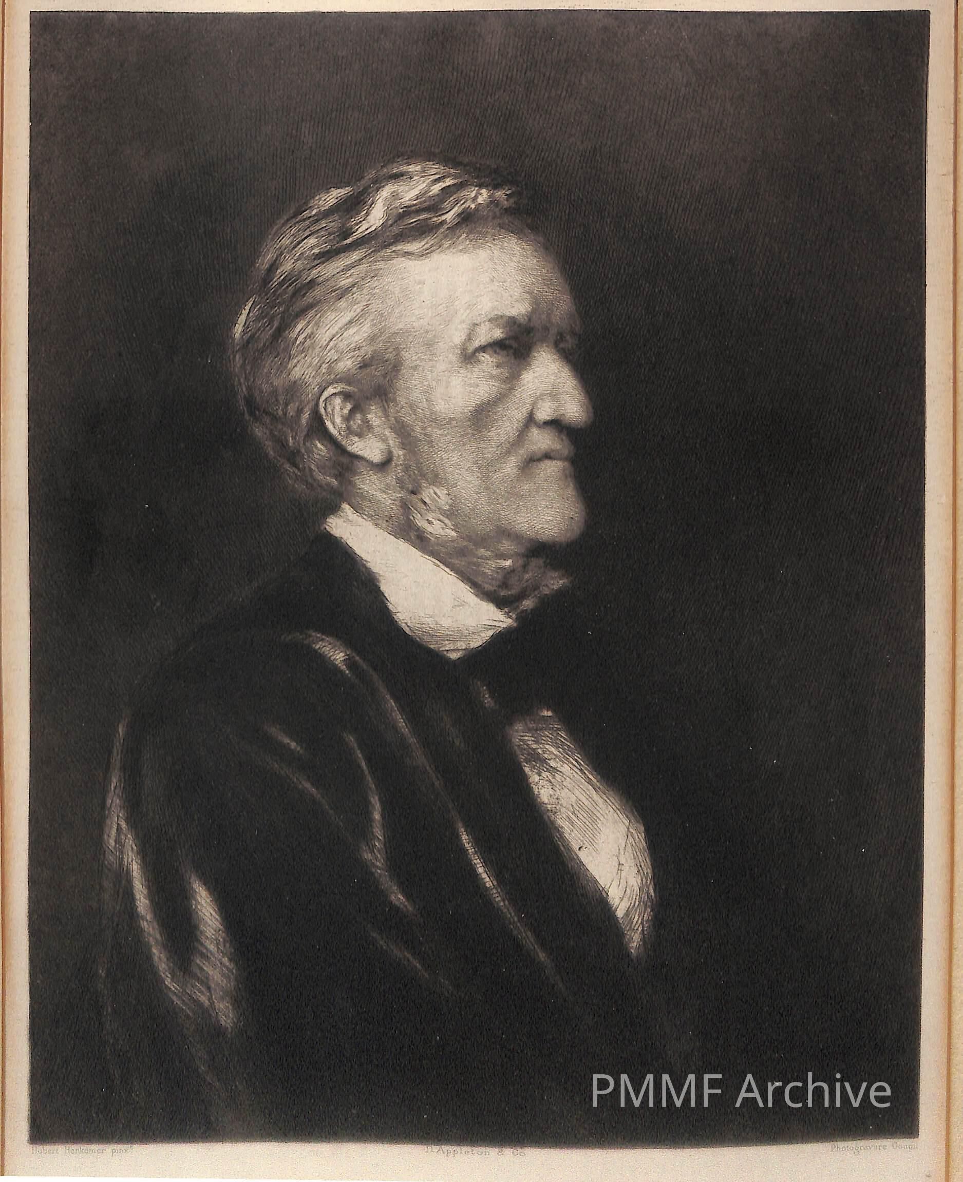 Framed B&W matted photo of Richard Wagner painting by Hubert Herkomer