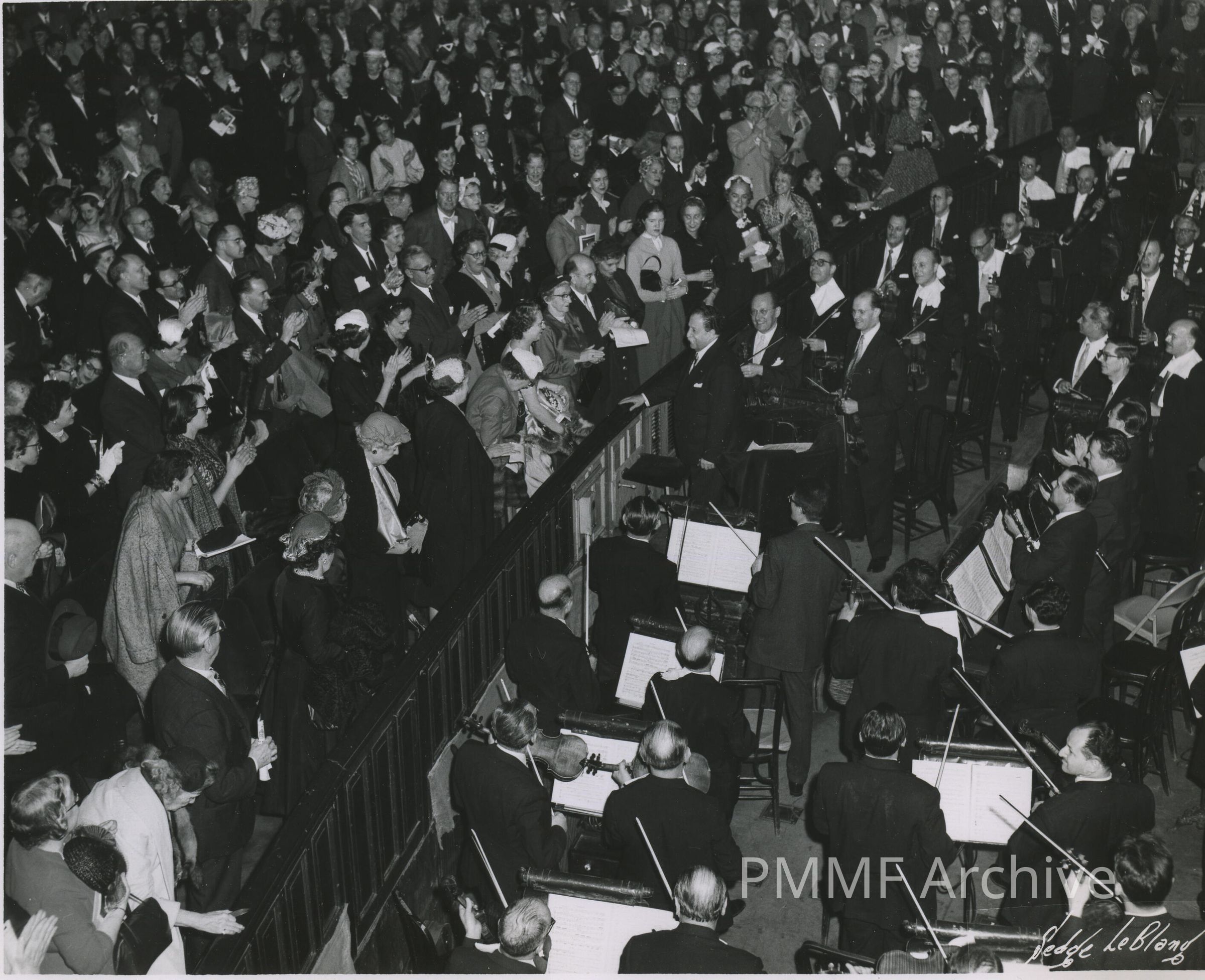 Monteux, Pierre acknowledging applause of audience on 80th birthday, 1955Photograph Details