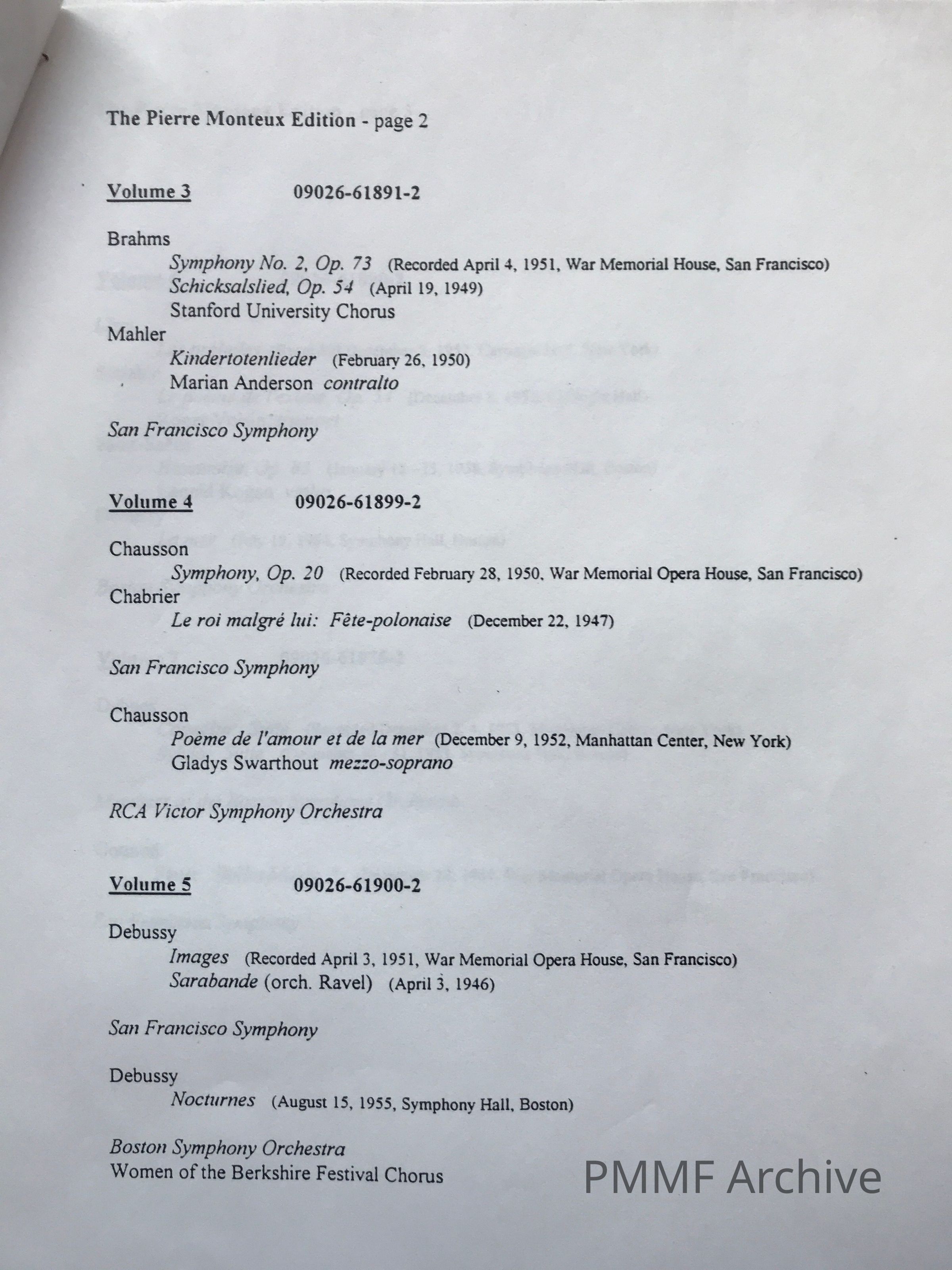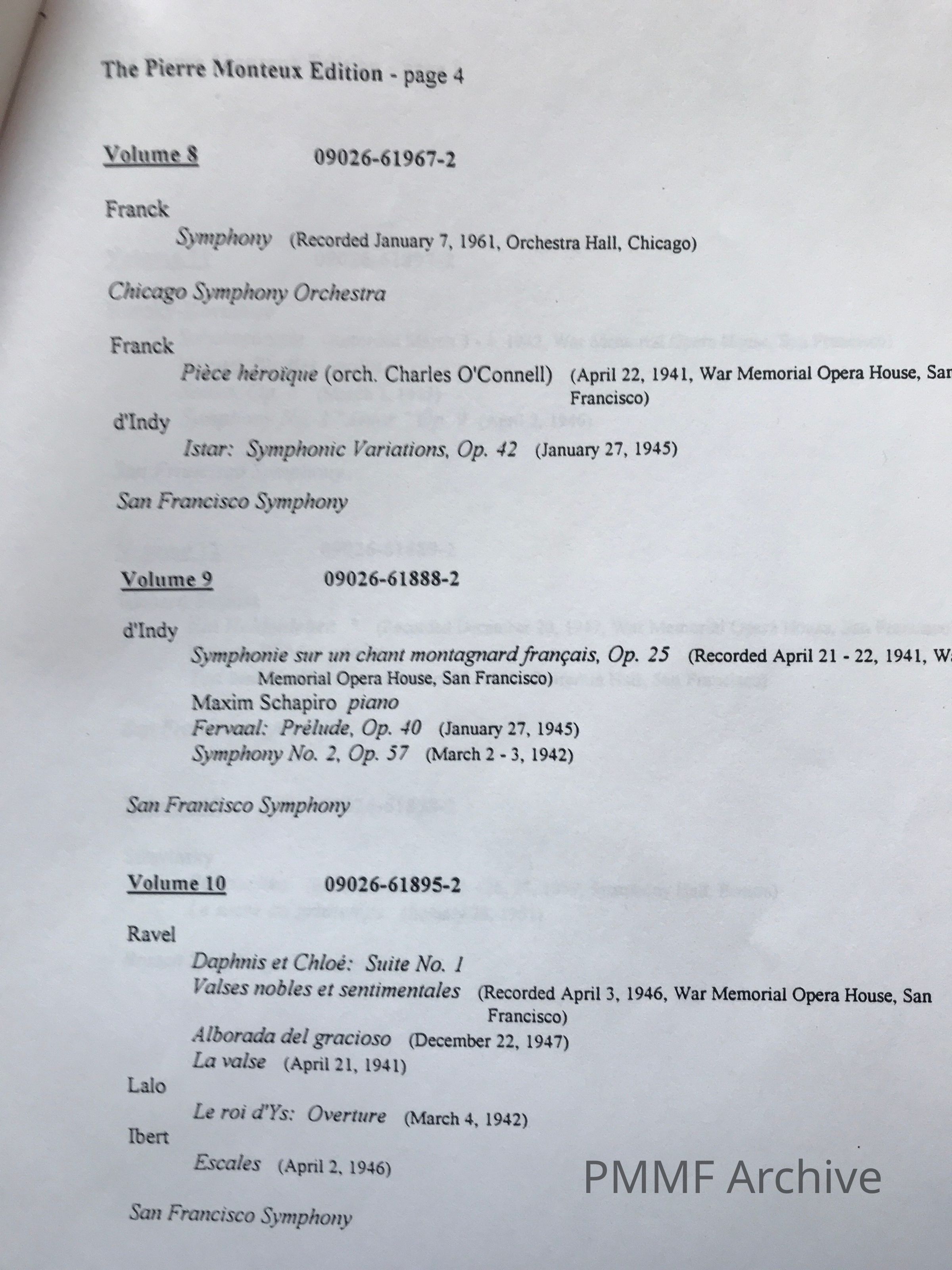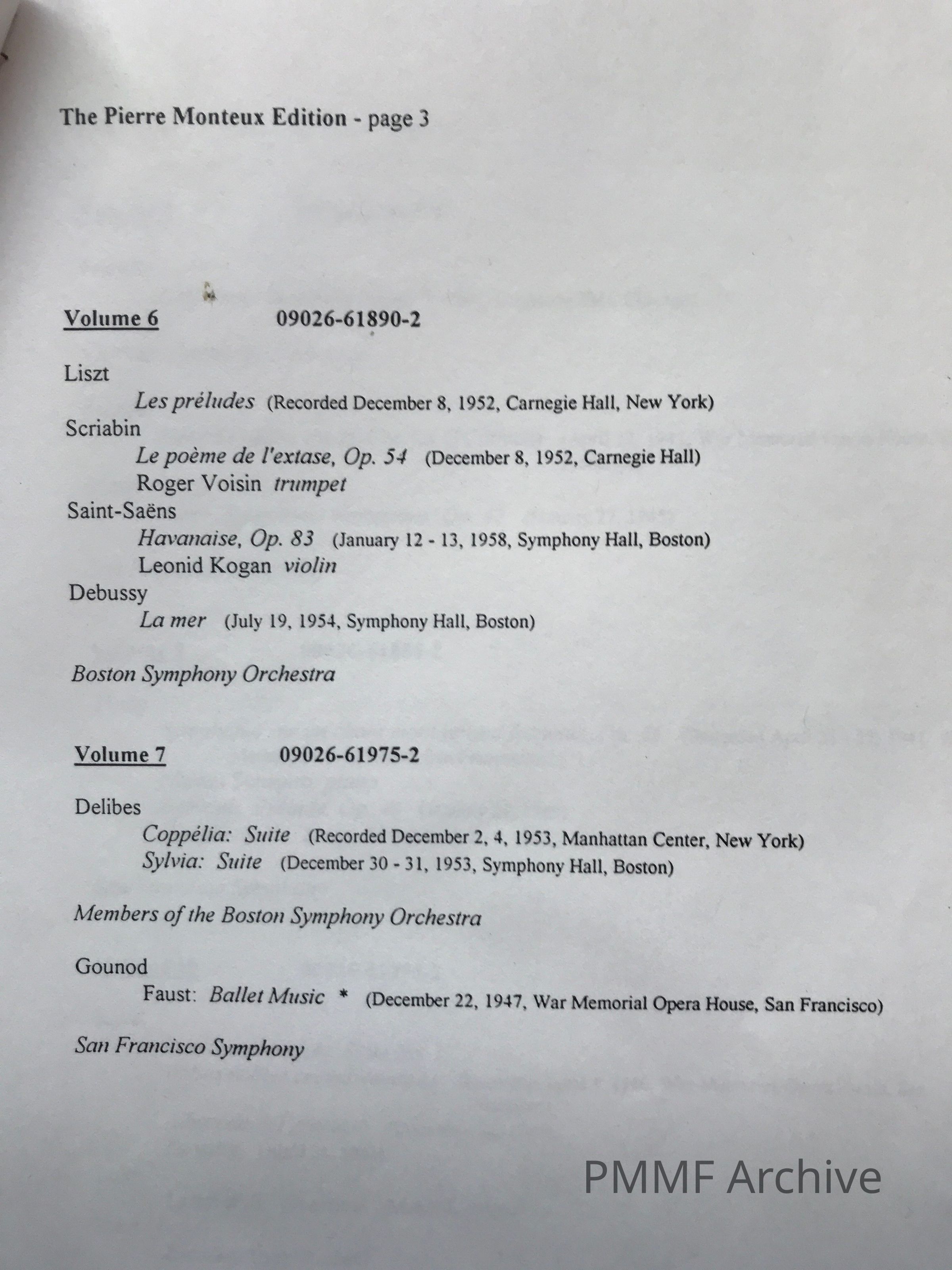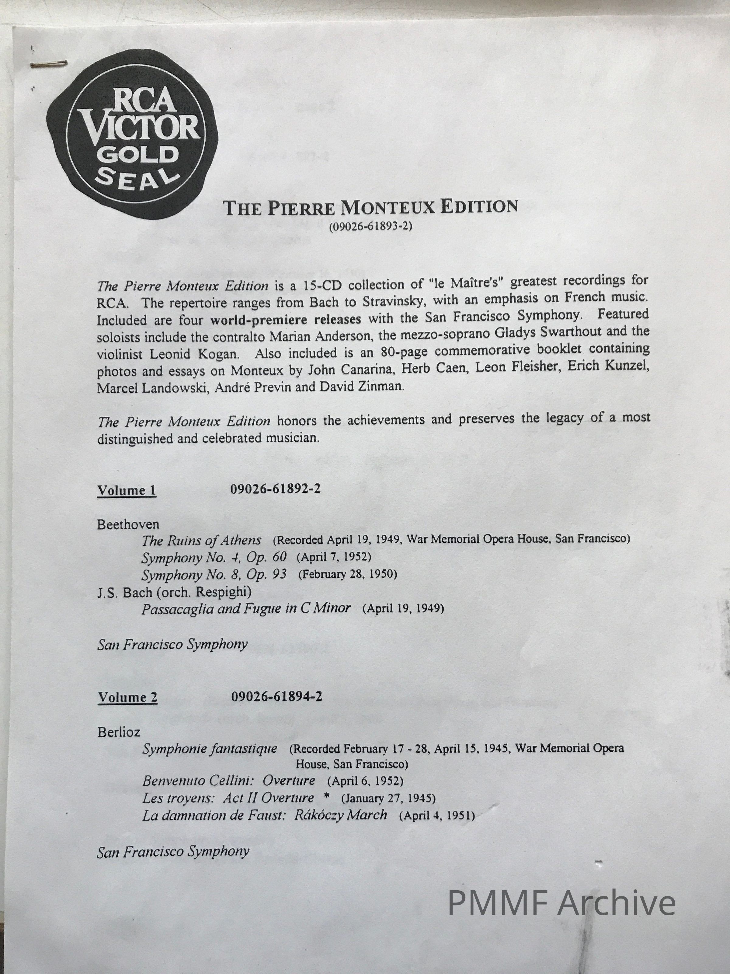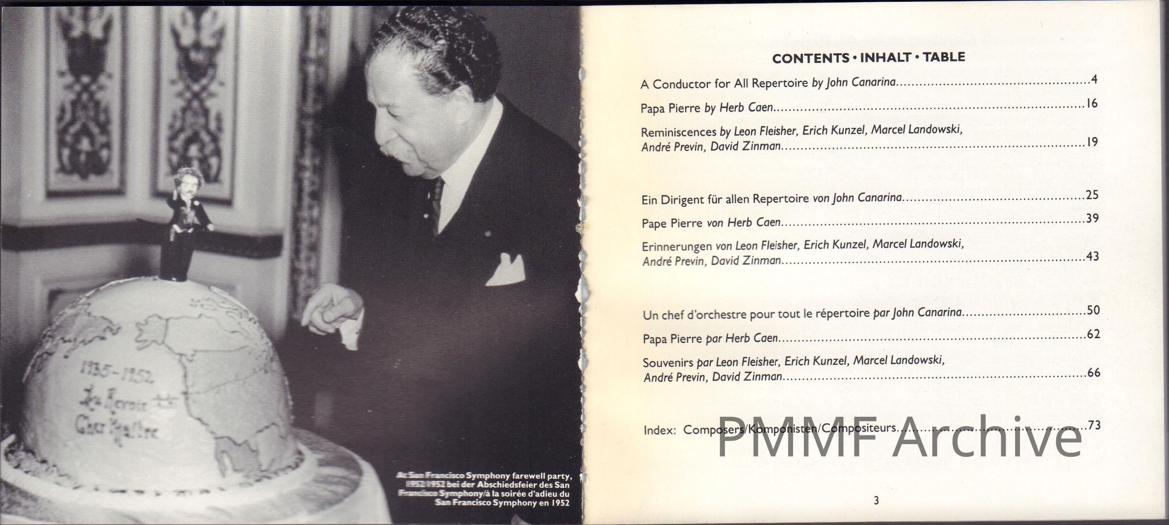 A booklet with essays by John Canarina and Herb Coen and reminiscences by Leon Fleisher, Erich Kunzel, Marcel Landowski, Andre Previn, and David Zinman [multi-language]. Index with dates and location of performance. Only English pages scanned, except for a few separate photographs.