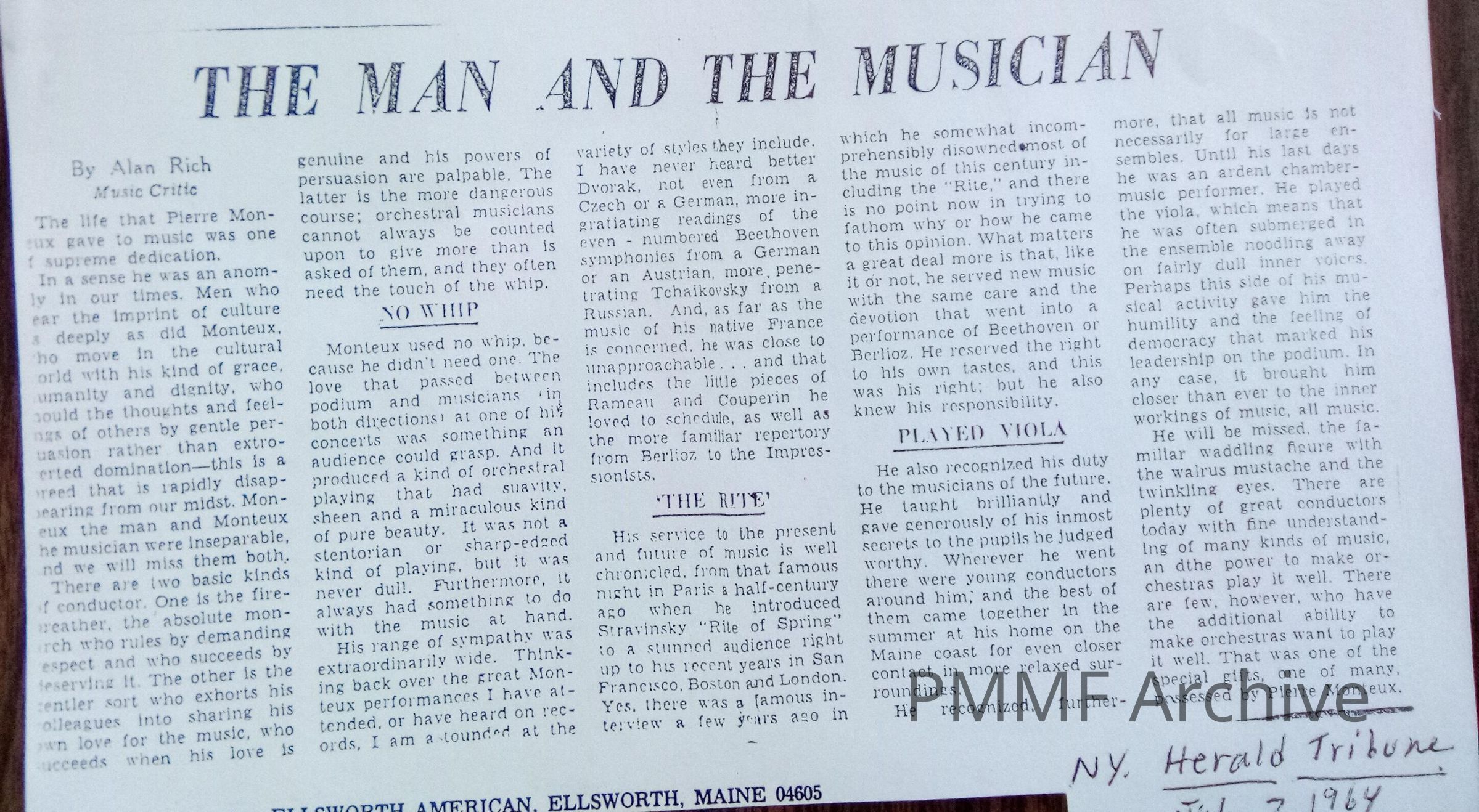 PM Tribute – Alan Rich, NY Herald Tribune July 7, 1964
