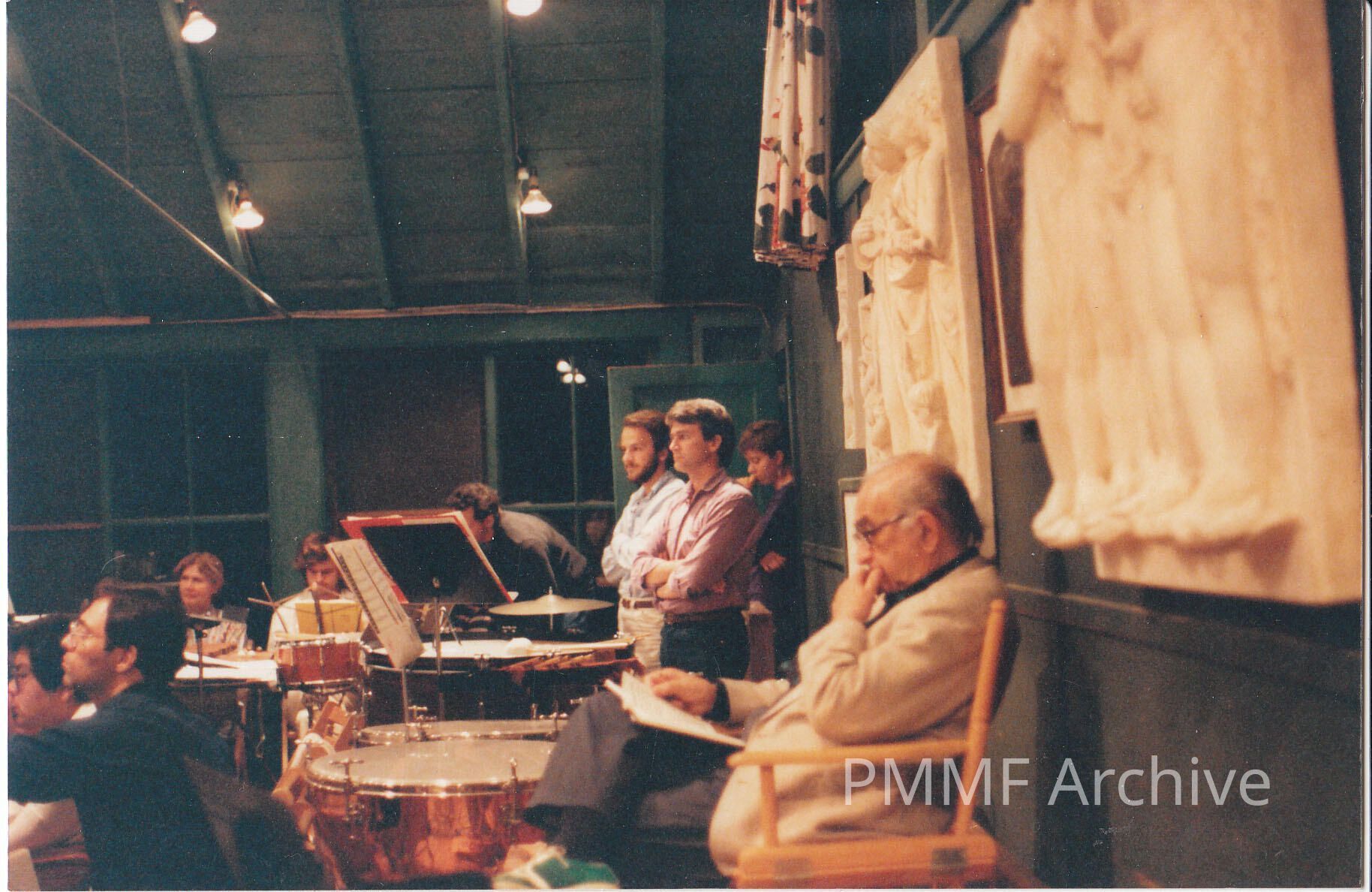 CHARLES BRUCK DURING A 1987 EVENING MASTER CLASS. CONDUCTOR MAUREEN GIROUX AT BACK LEFT AGAINST WINDOWS. OTHER STUDENTS AS YET UNIDENTIFIED.Collection