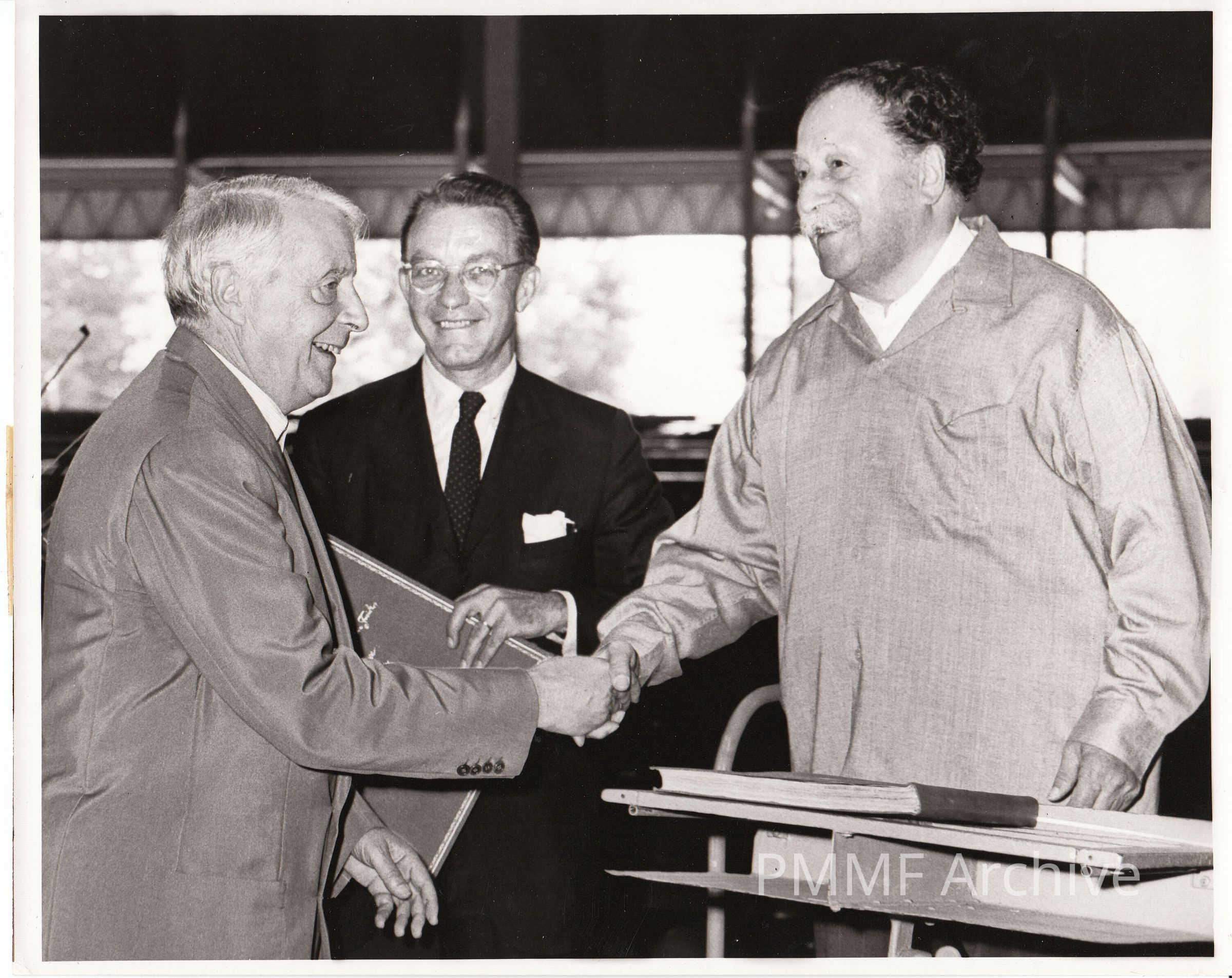 CHARLES MUNCH GREETS PIERRE AT TANGLEWOOD WITH BSO MANAGER THOMAS D. PERRY LOOKING ON. [J. CANARINA BIOGRAPHY]Collection