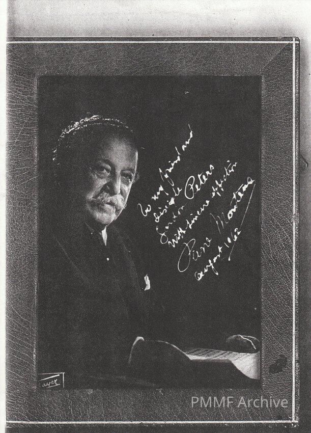 PHOTOCOPY OF FORMAL PIERRE MONTEUX PORTRAIT, DEDICATED TO GORDON PETERS. INSCRIPTION READS “To my friend and disciple Gordon Peters with sincere affection, Pierre Monteux, August 1962”
