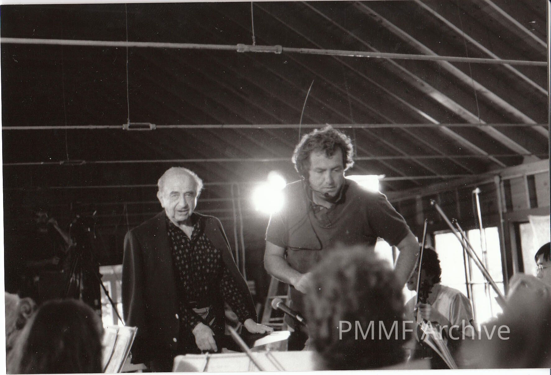 CHARLES BRUCK AND VIDEOGRAPHER JEFF DOBBS ON STAGE IN THE FOREST STUDIO, 1988Collection
