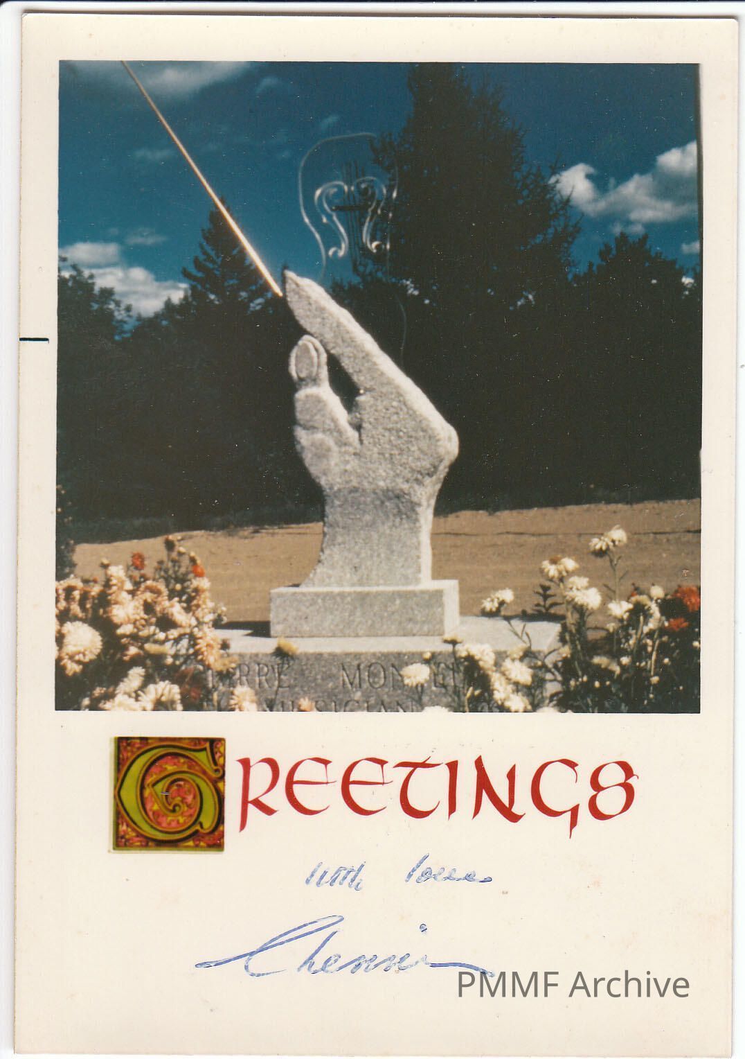 SCULPTURE BY CHENOWETH HALL IN MEMORIAL PARK, HANCOCK, MAINE ON CARD SIGNED BY SCULPTORCollection