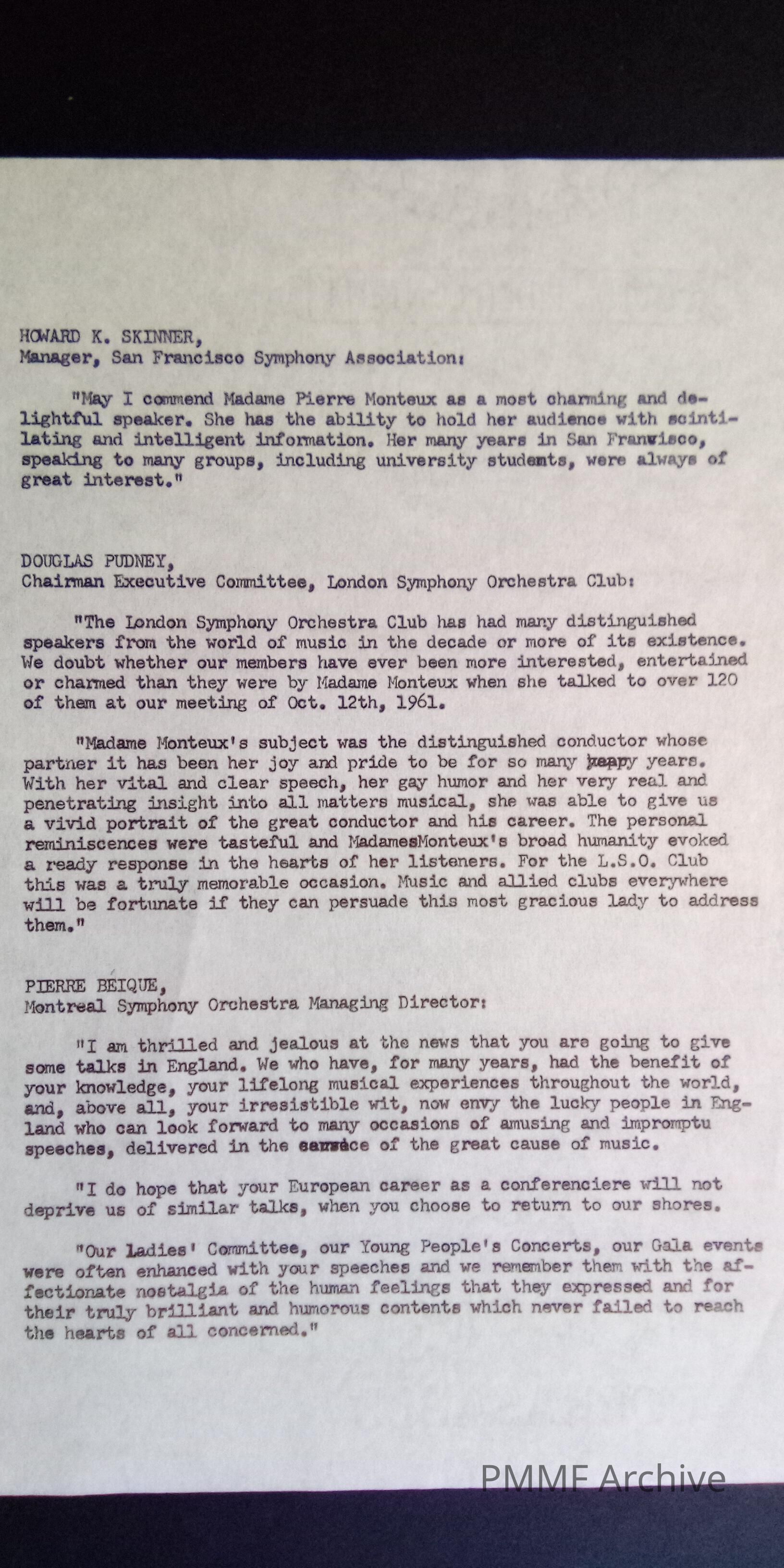 Recommendations for Doris (Madame Pierre Monteux) as speaker
