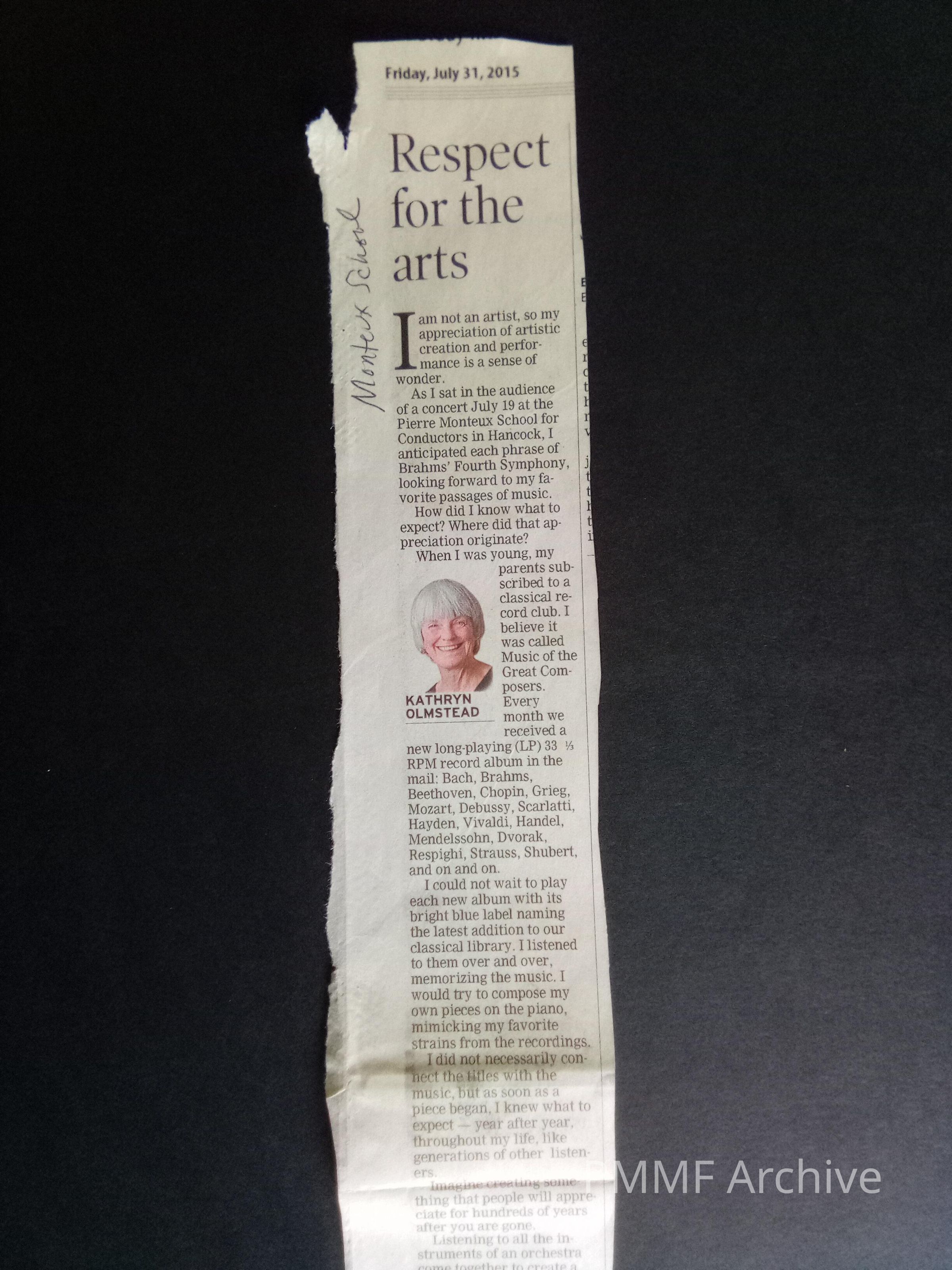 Respect for the arts (by Kathryn Olmstead) [2015]
