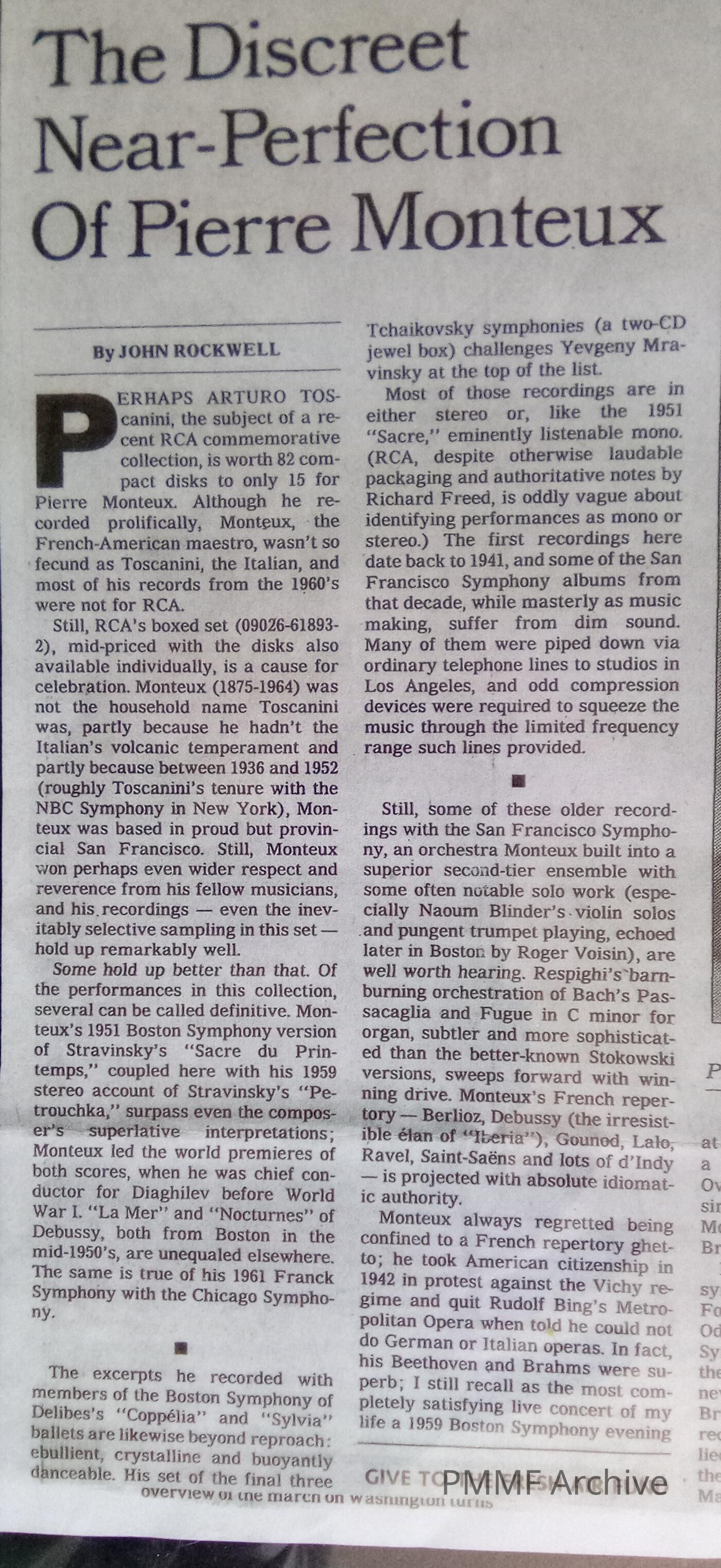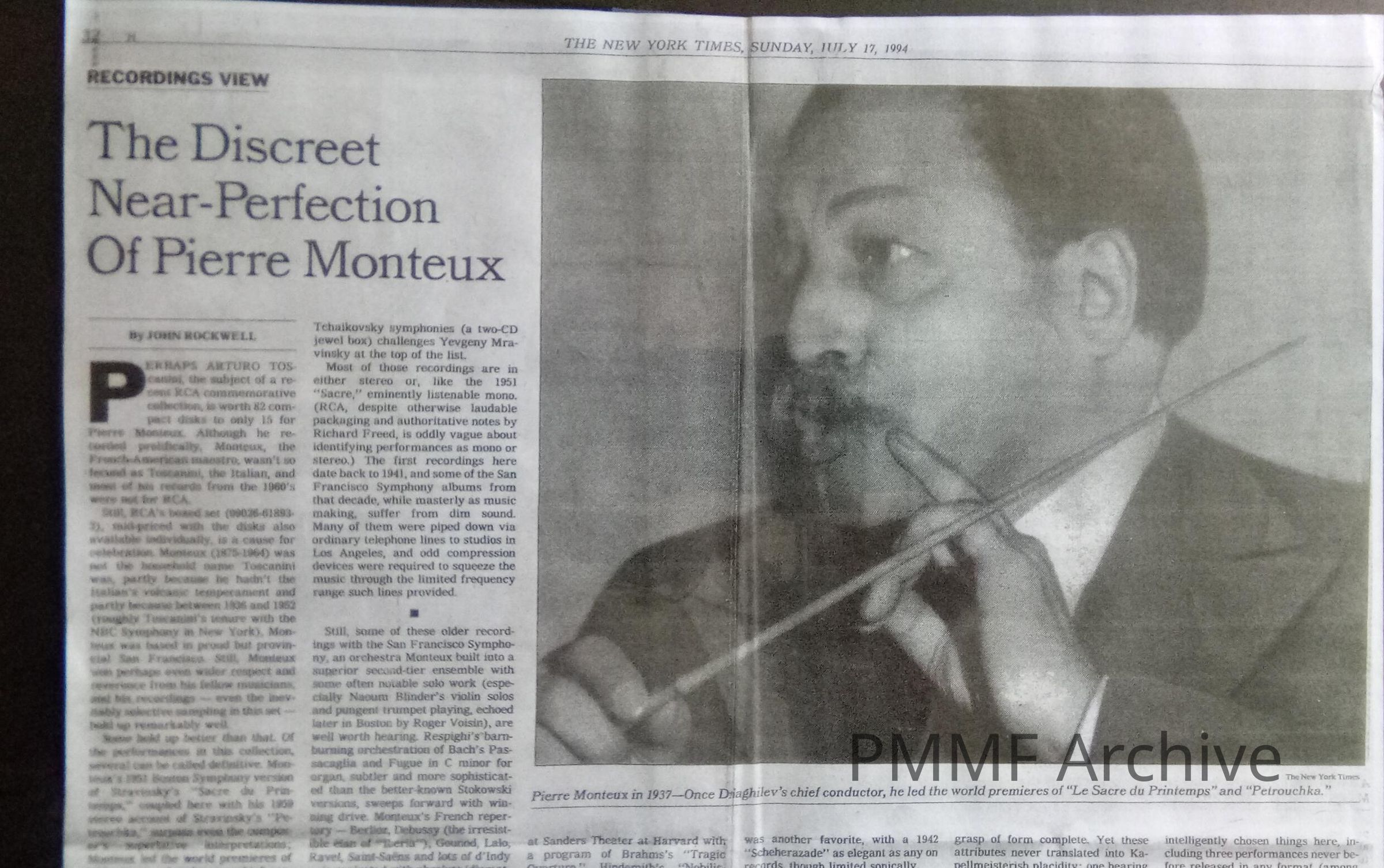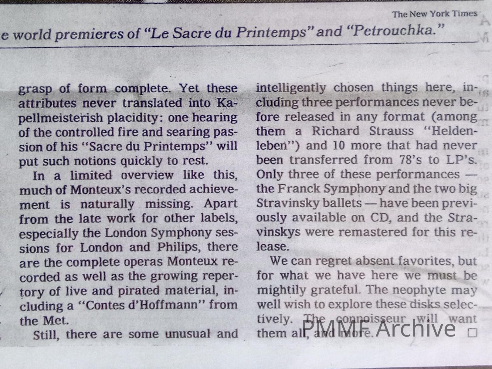Review of Monteux's recording 1994 [NY Times]