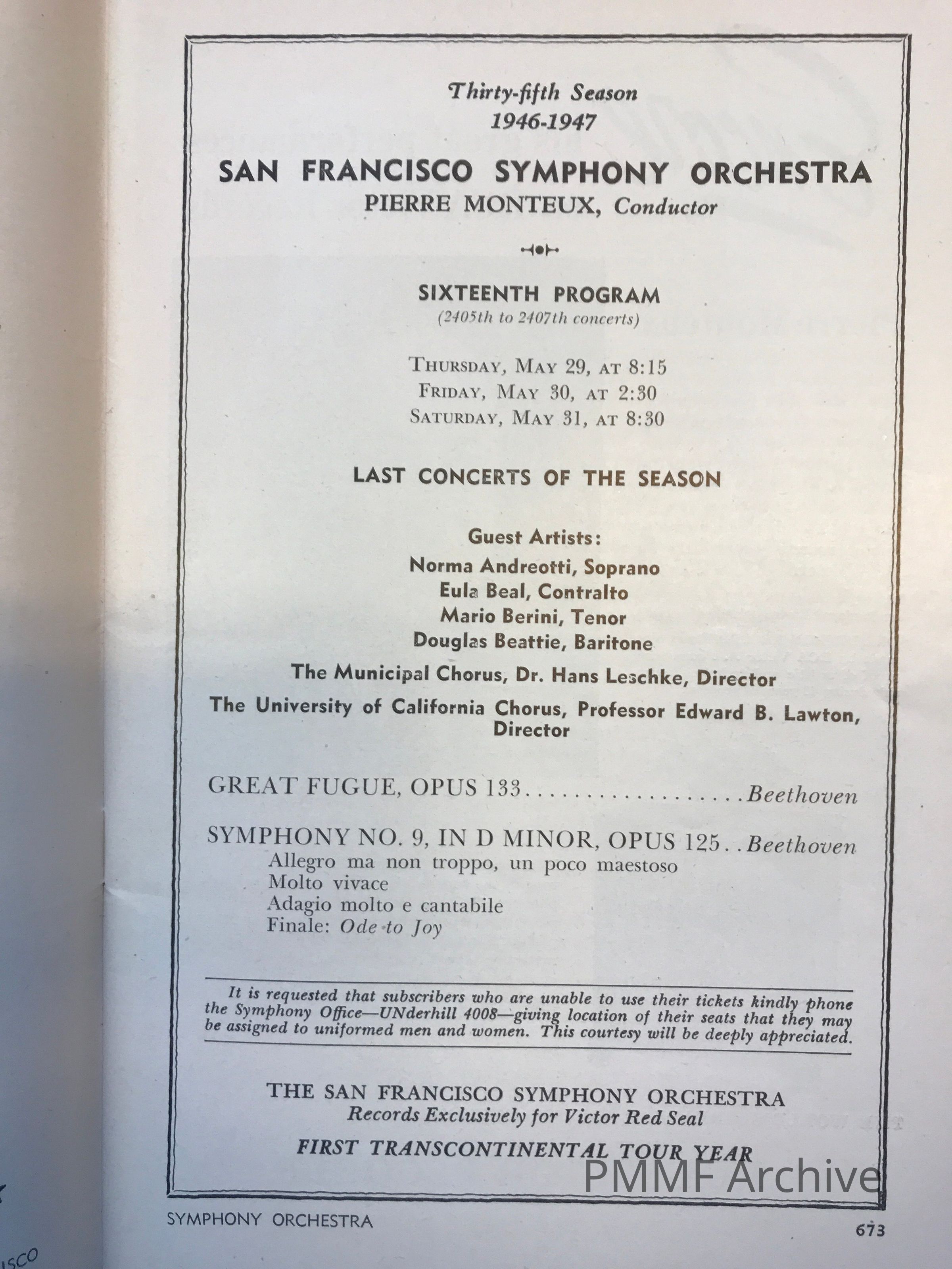 San Francisco Symphony Orchestra, Pierre Monteux conductor: 1946–1947 – 16th programScope and Content