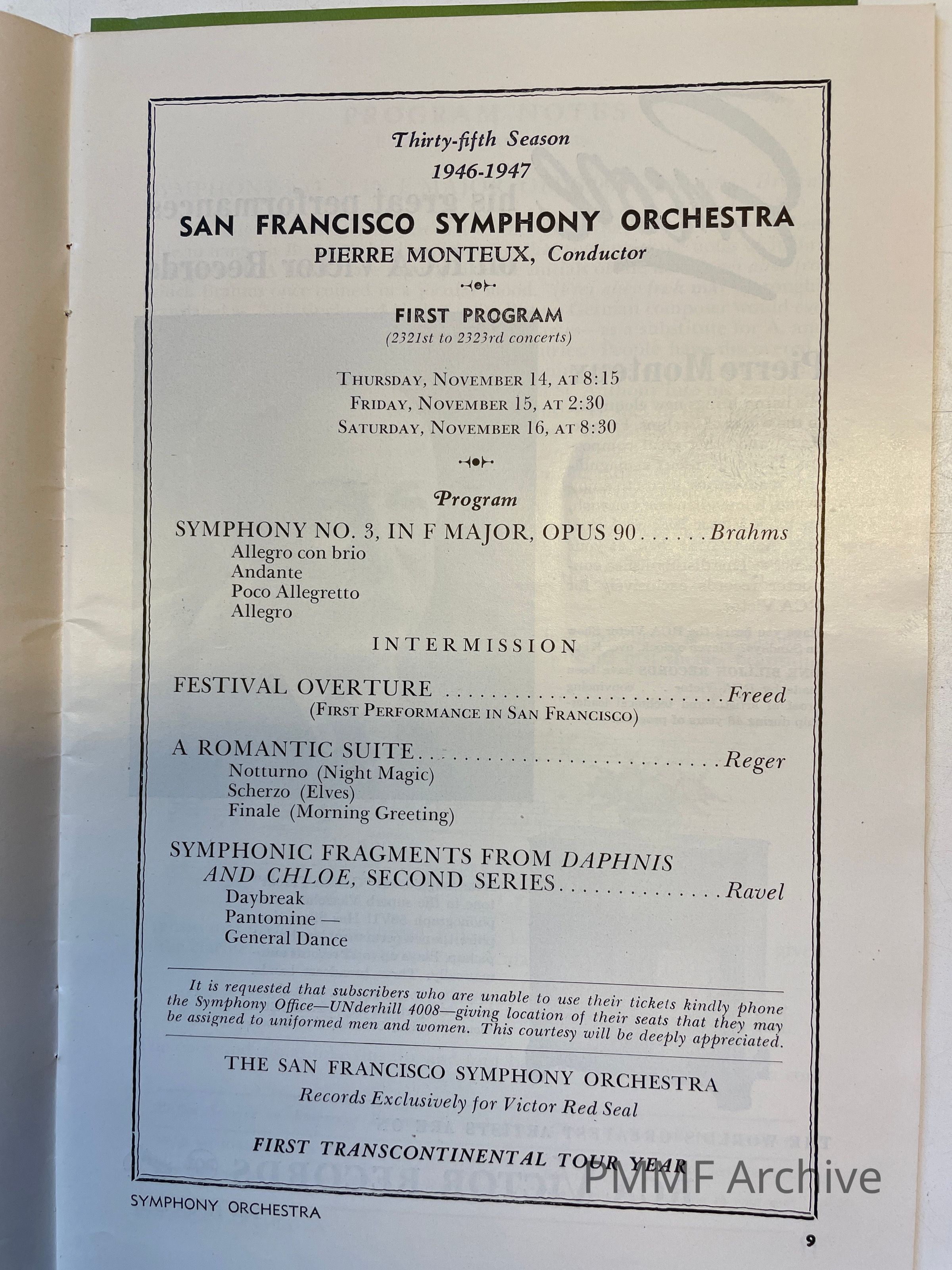 San Francisco Symphony Orchestra, Pierre Monteux conductor: 1946–1947 season – first program