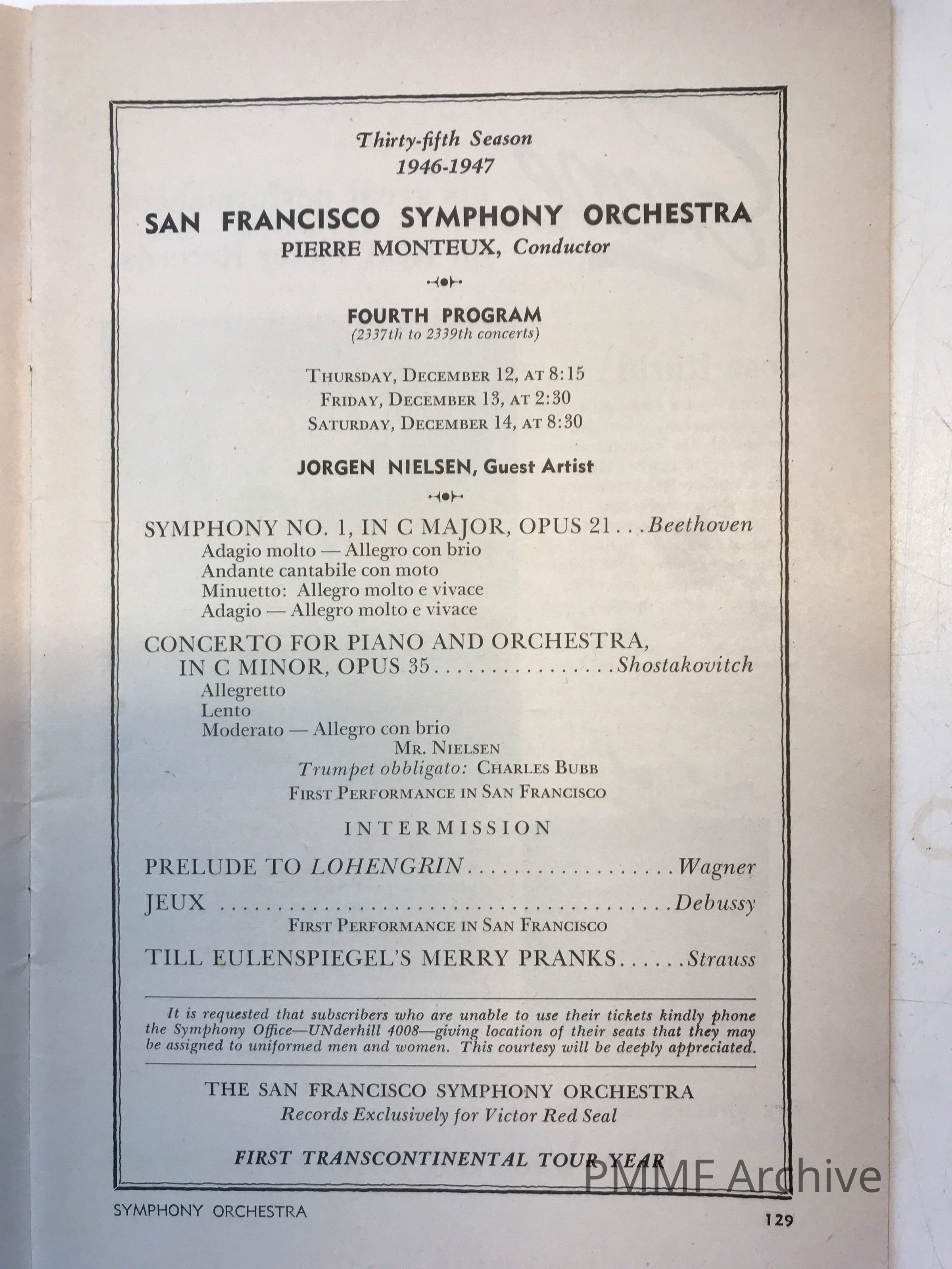 San Francisco Symphony Orchestra, Pierre Monteux conductor: 1946–1947 – fourth program