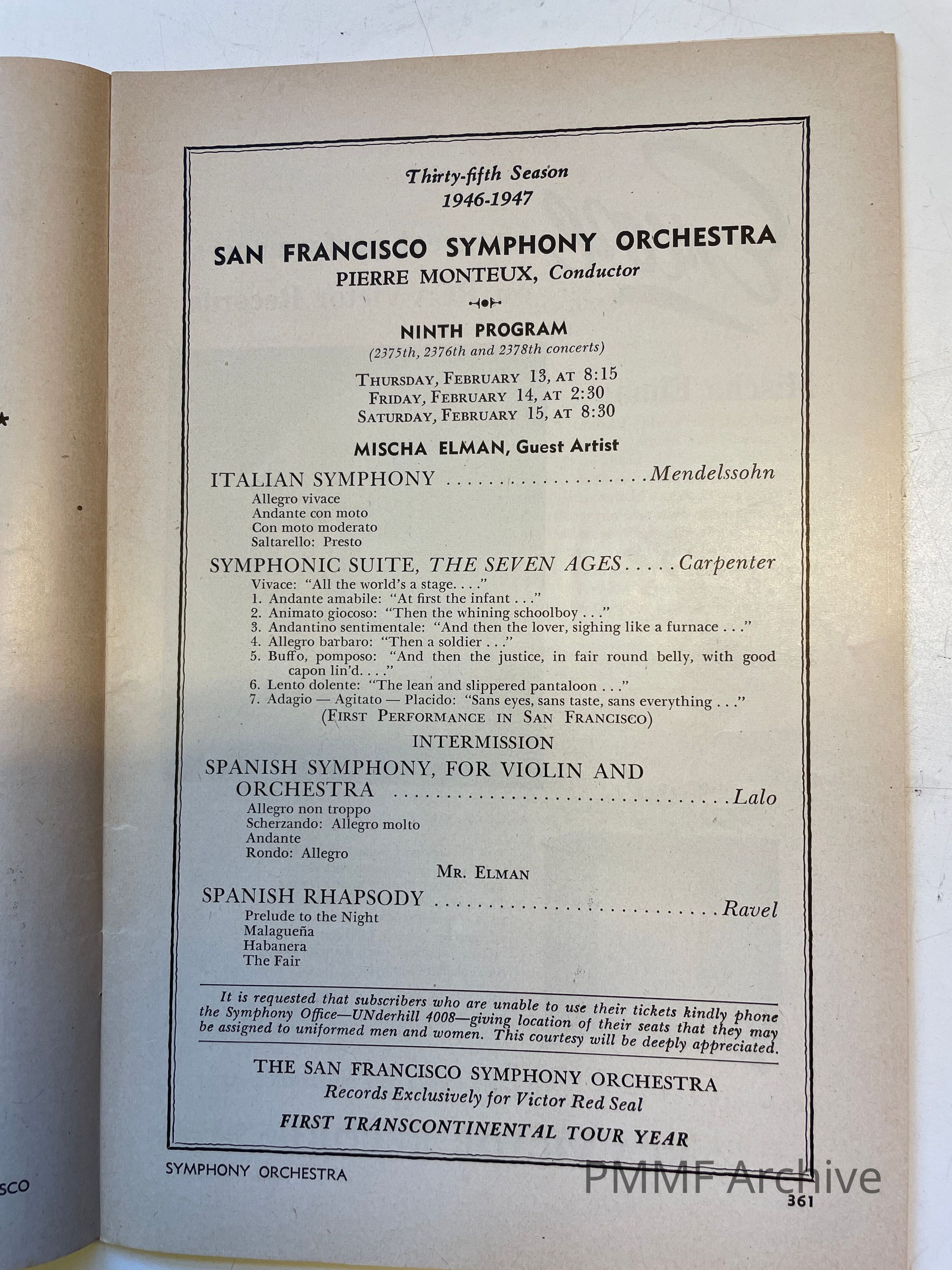 San Francisco Symphony Orchestra, Pierre Monteux conductor: 1946–1947 season – ninth program