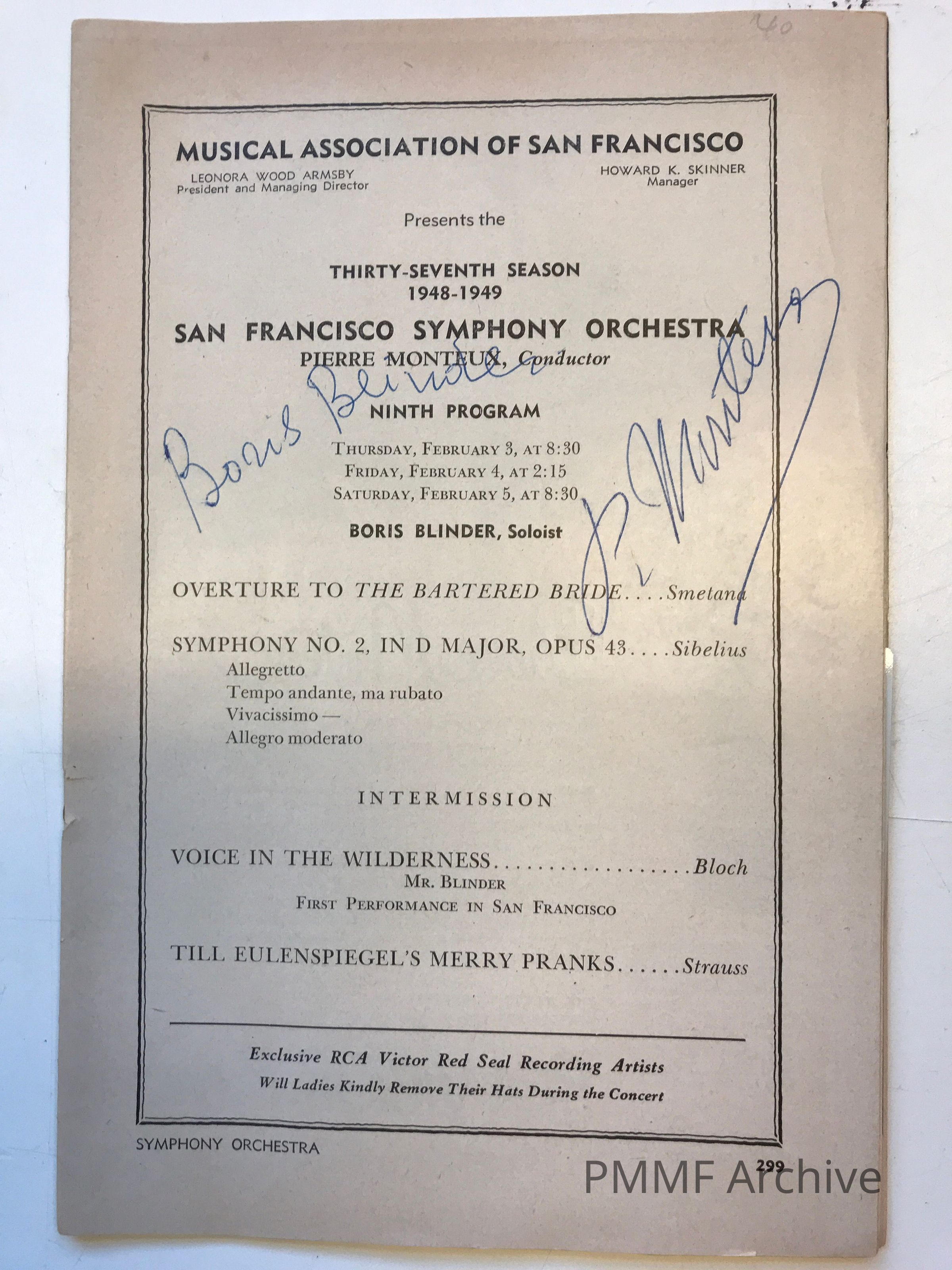 San Francisco Symphony Orchestra, Pierre Monteux conductor: 1948–1949 season – Ninth program 1948–1949 seasonScope and Content