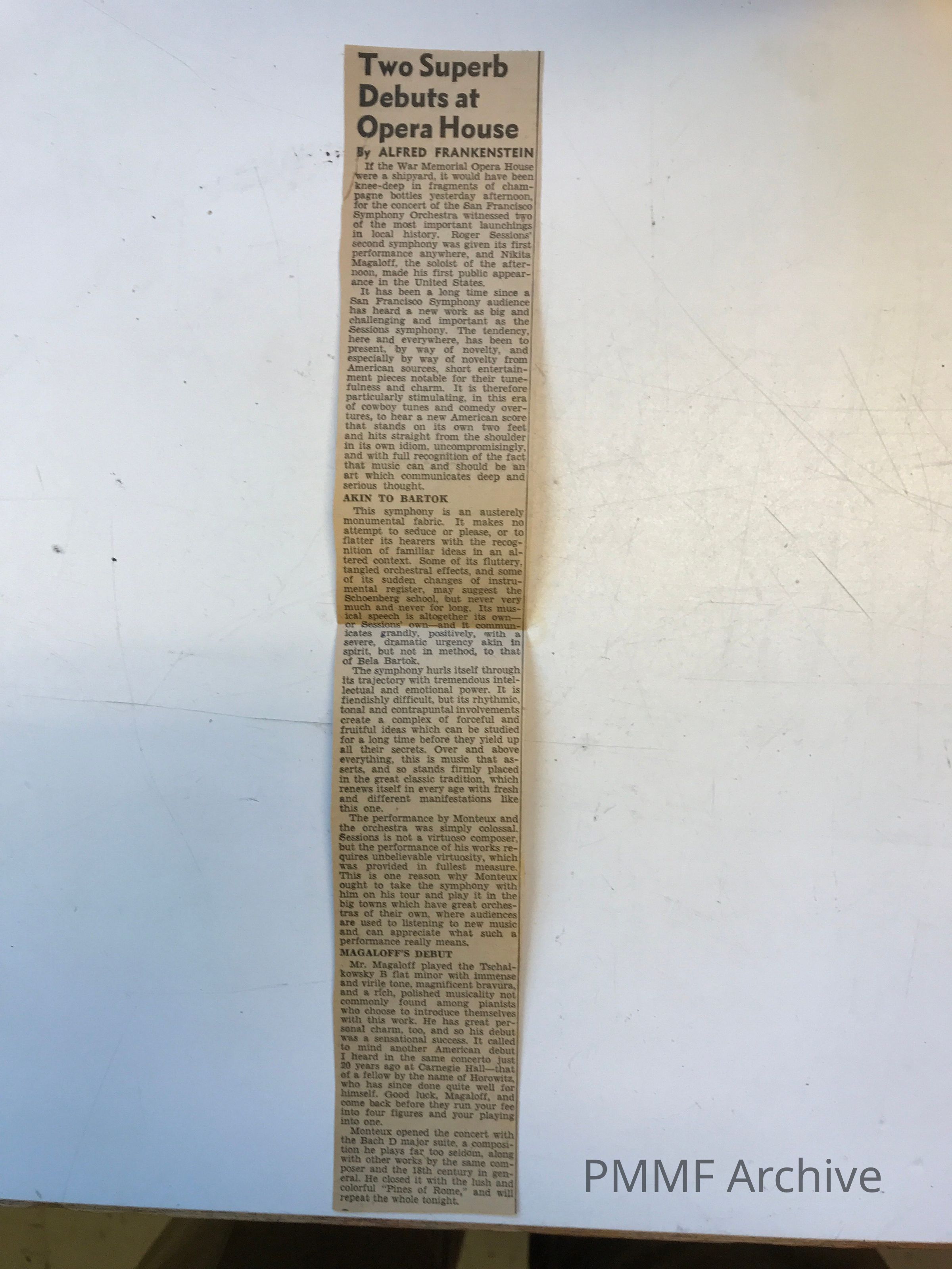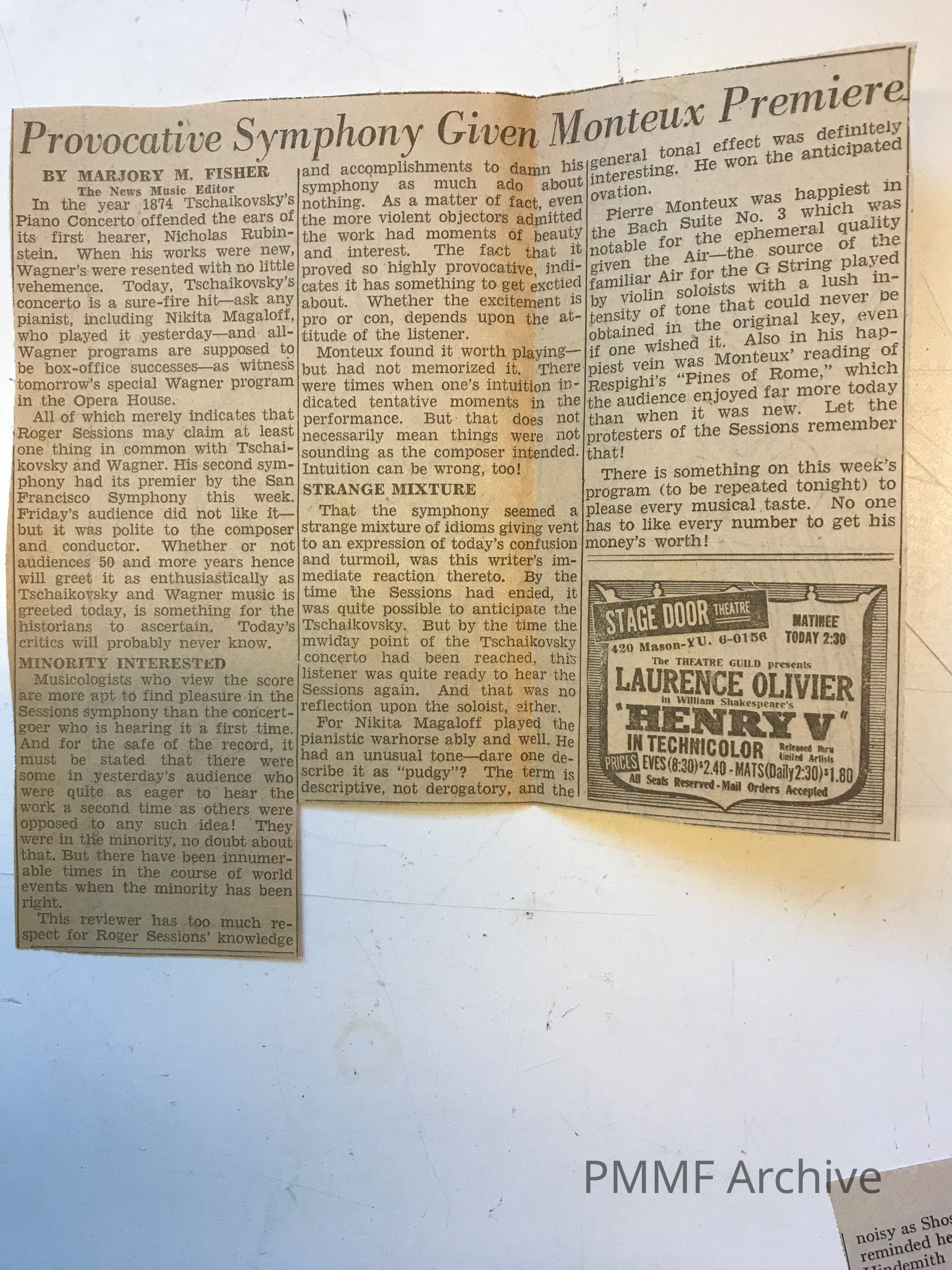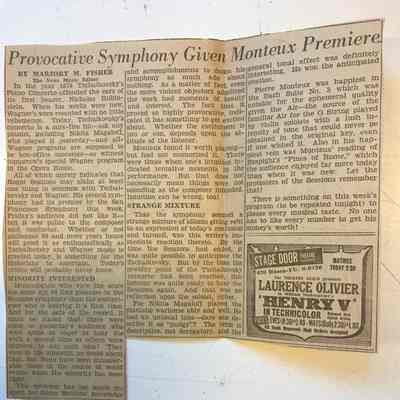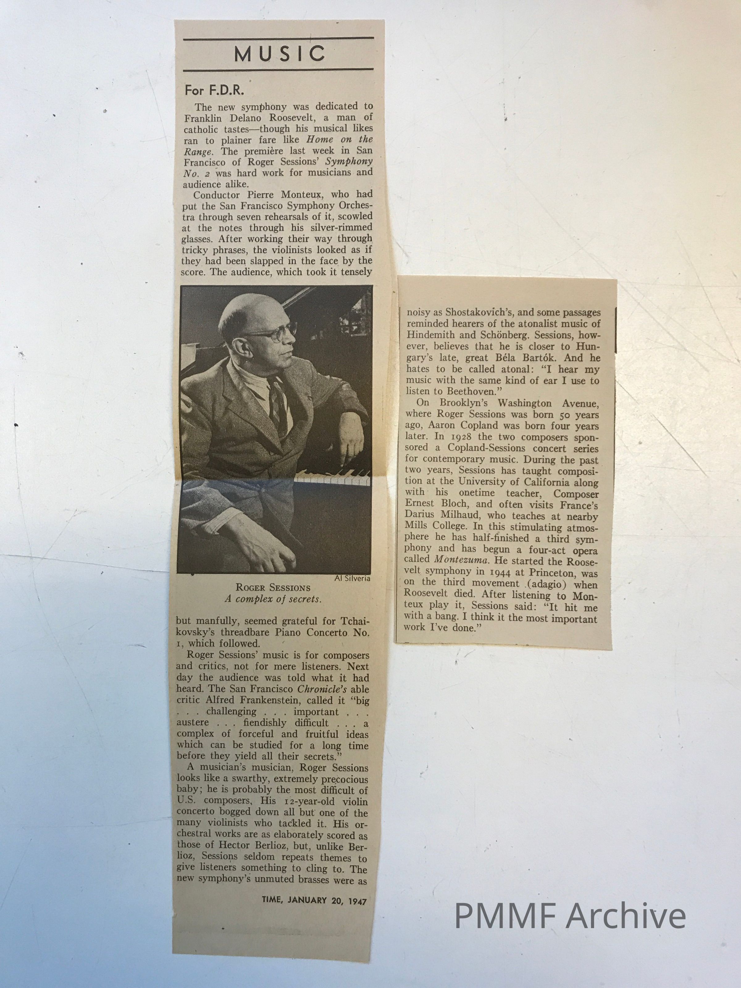 Monteux conducts premier of Roger Sessions Second Symphony (dedicated to FD Roosevelt); includes review by Marjory M. FisherCreated By