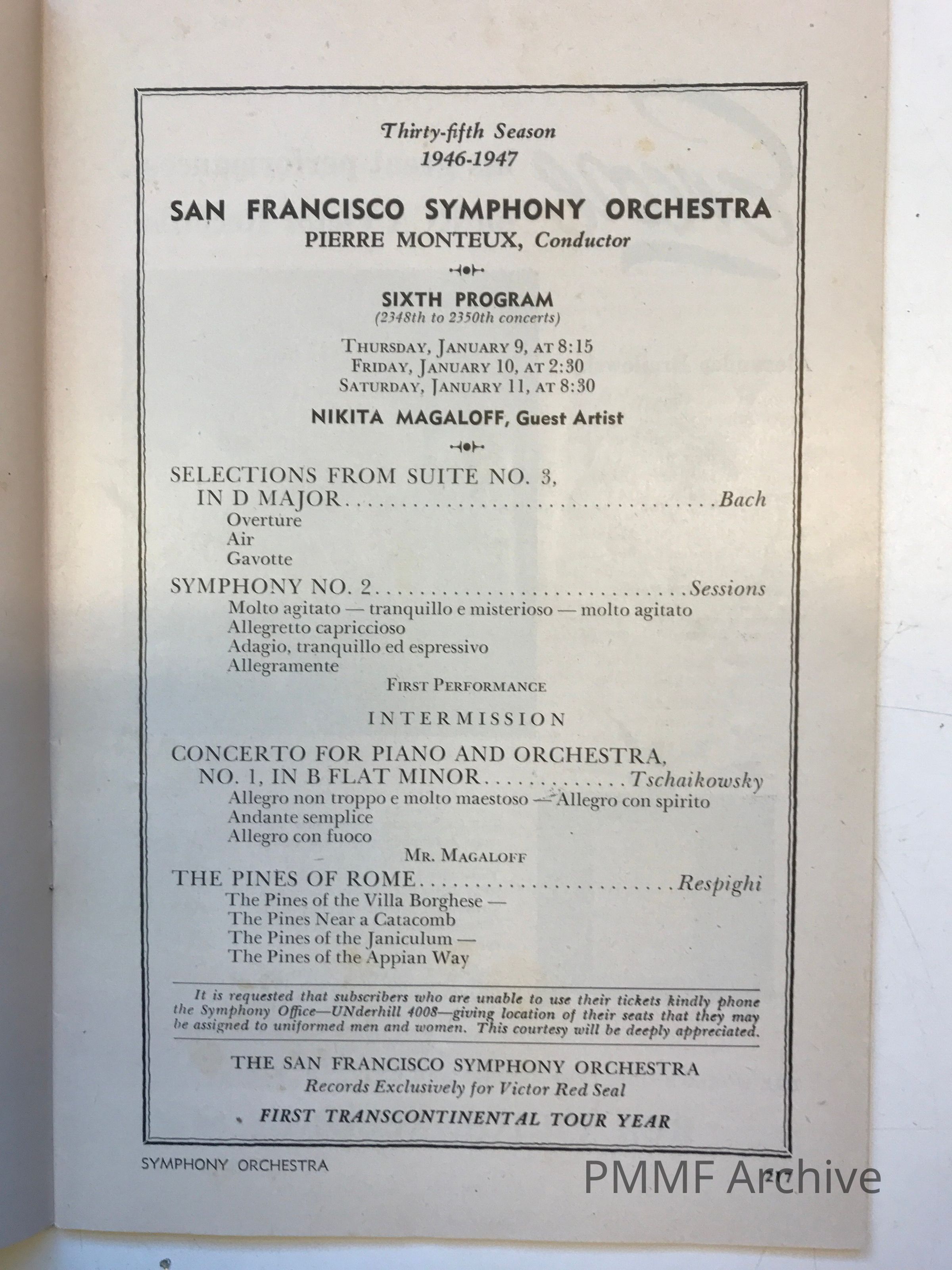 San Francisco Symphony Orchestra, Pierre Monteux conductor: 1946–1947 season – sixth programScope and Content