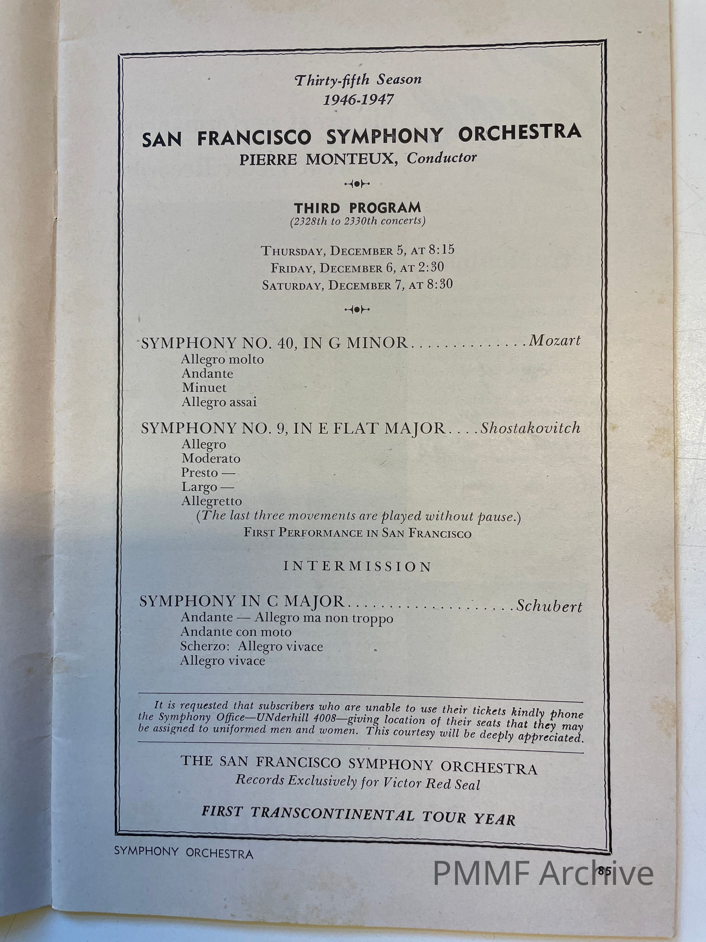 San Francisco Symphony Orchestra, Pierre Monteux conductor: 1946–1947 season – third program