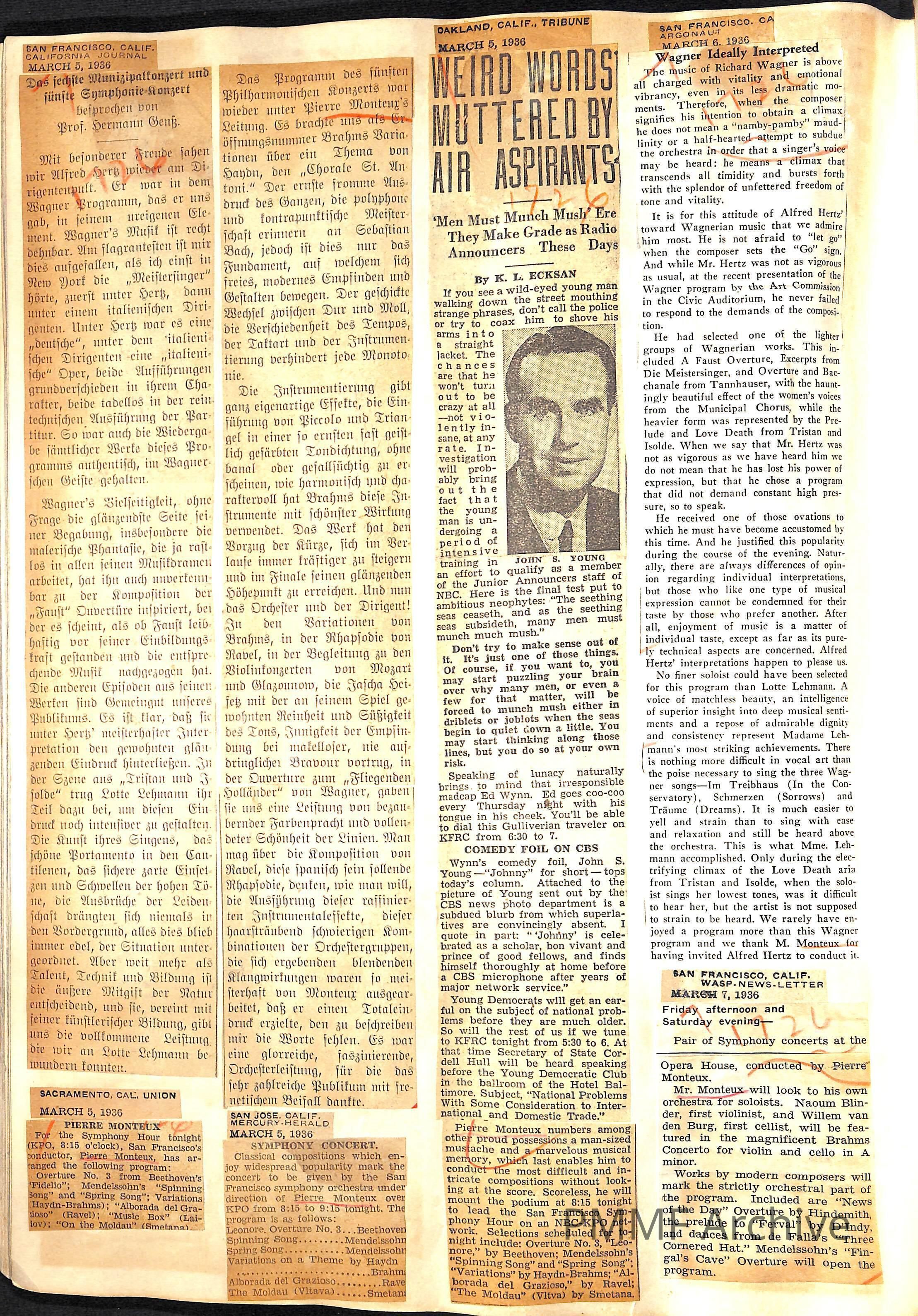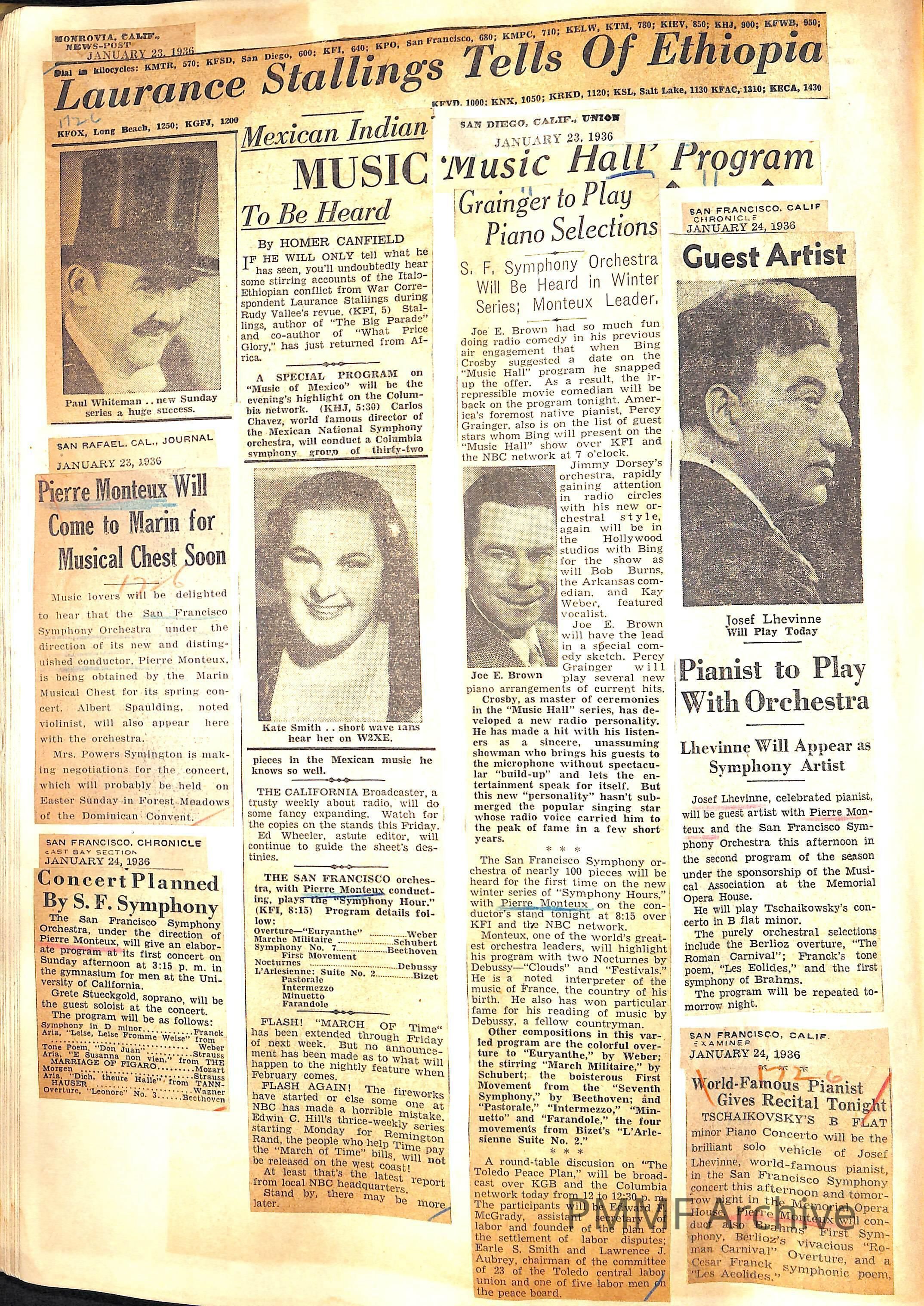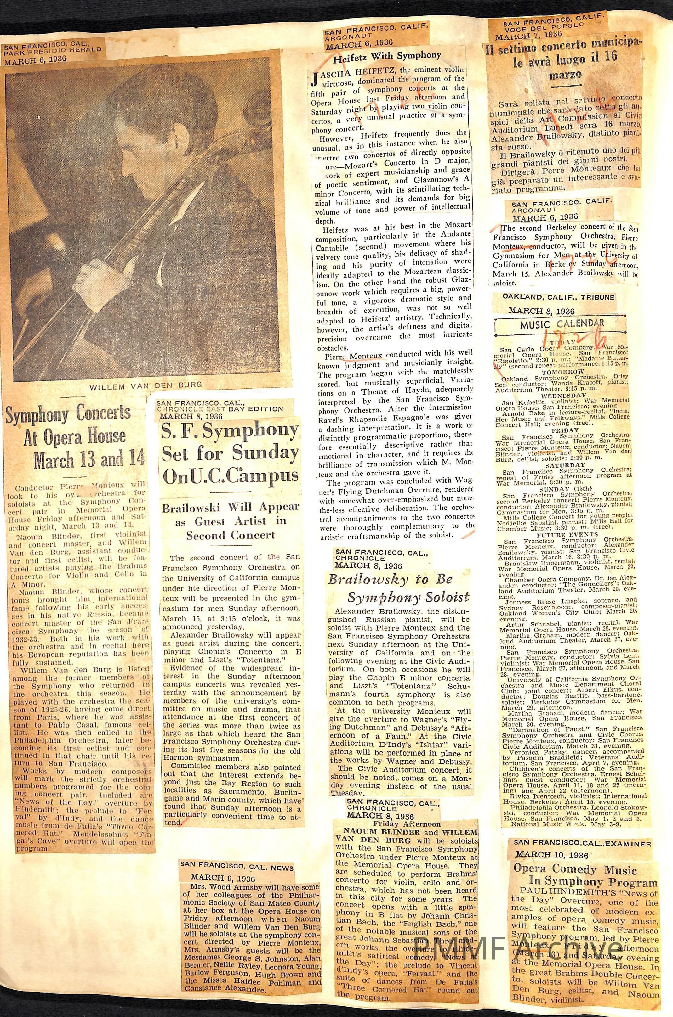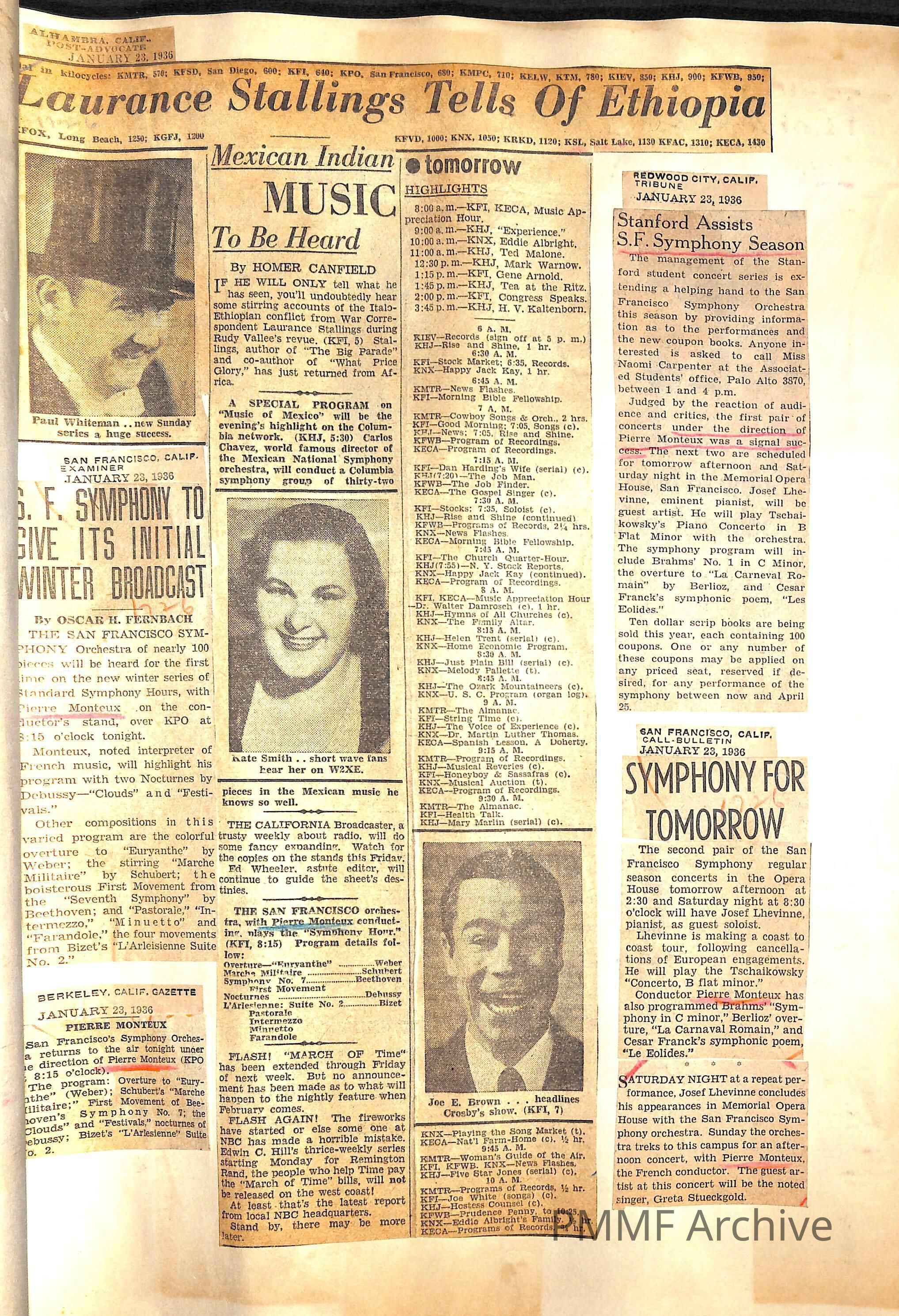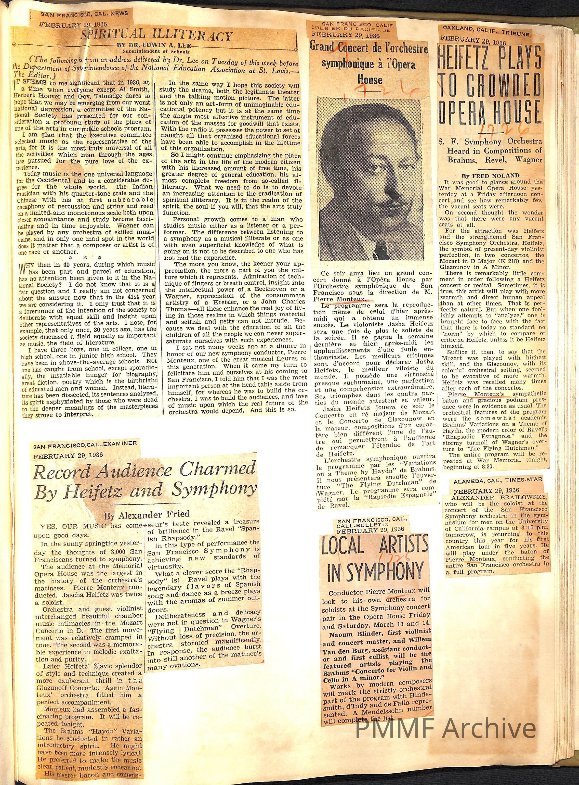 Scrapbook created by Doris Monteux of newspaper articles from 1935-1936 related to the first year of Monteux conducting the San Francisco Symphony Orchestra.