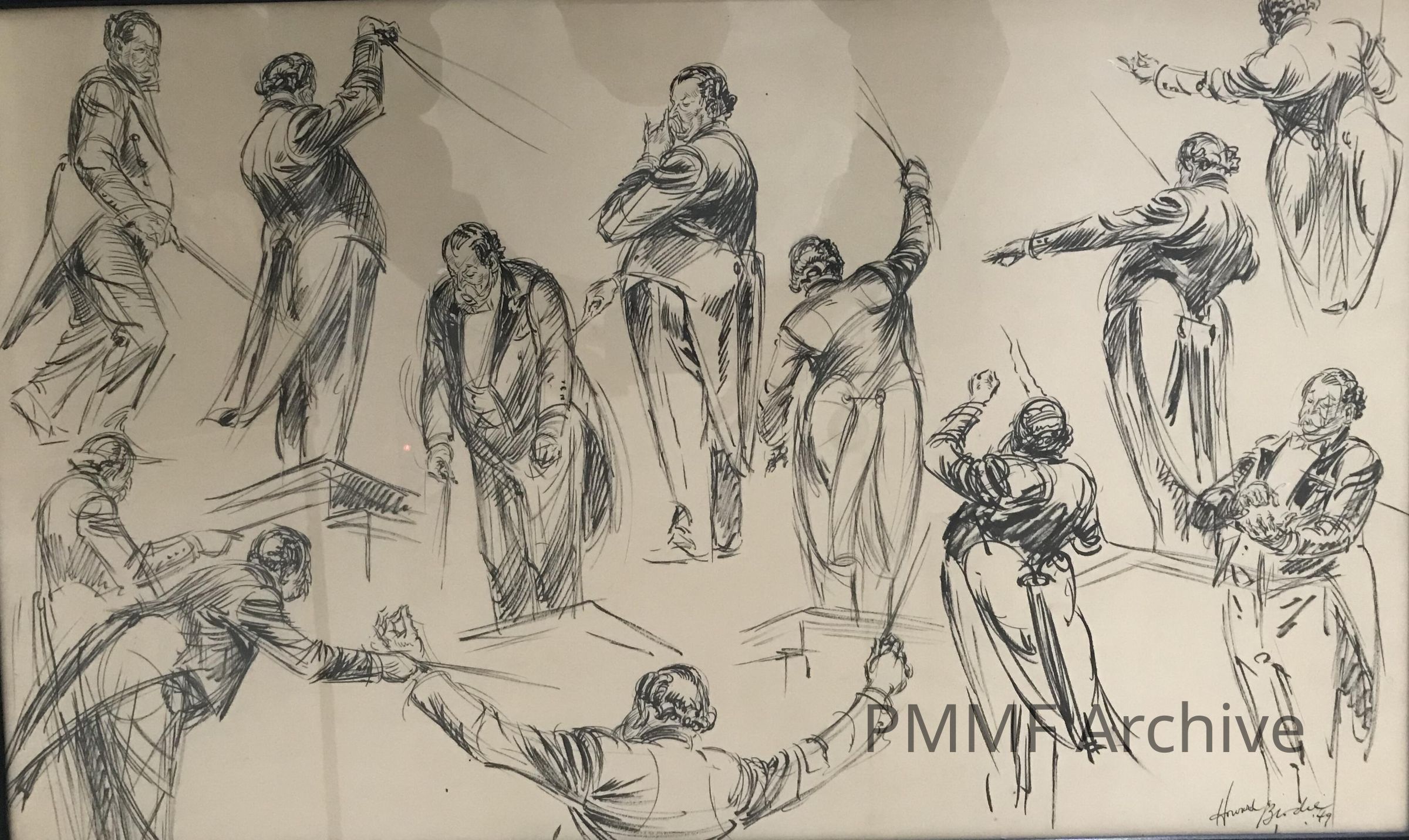 Howard Brodie sketches in ink, signed