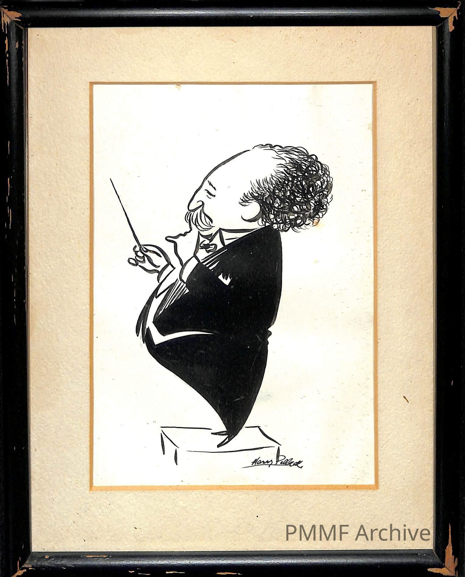 Framed ink caraciture sketch of Moneux by Harry PollackCollection