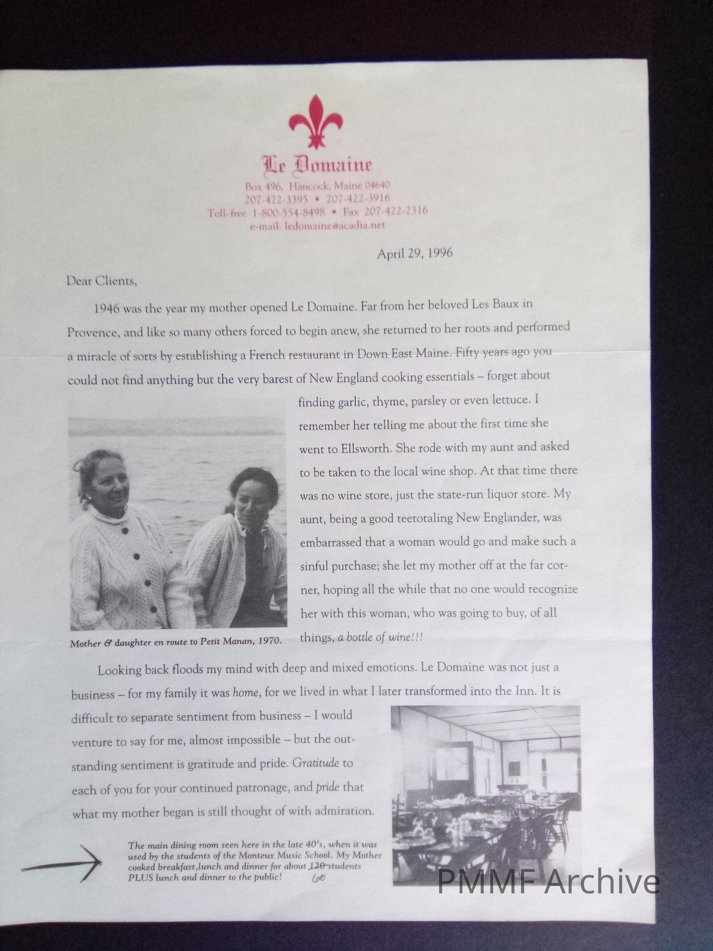 Students ate at Le Domaine