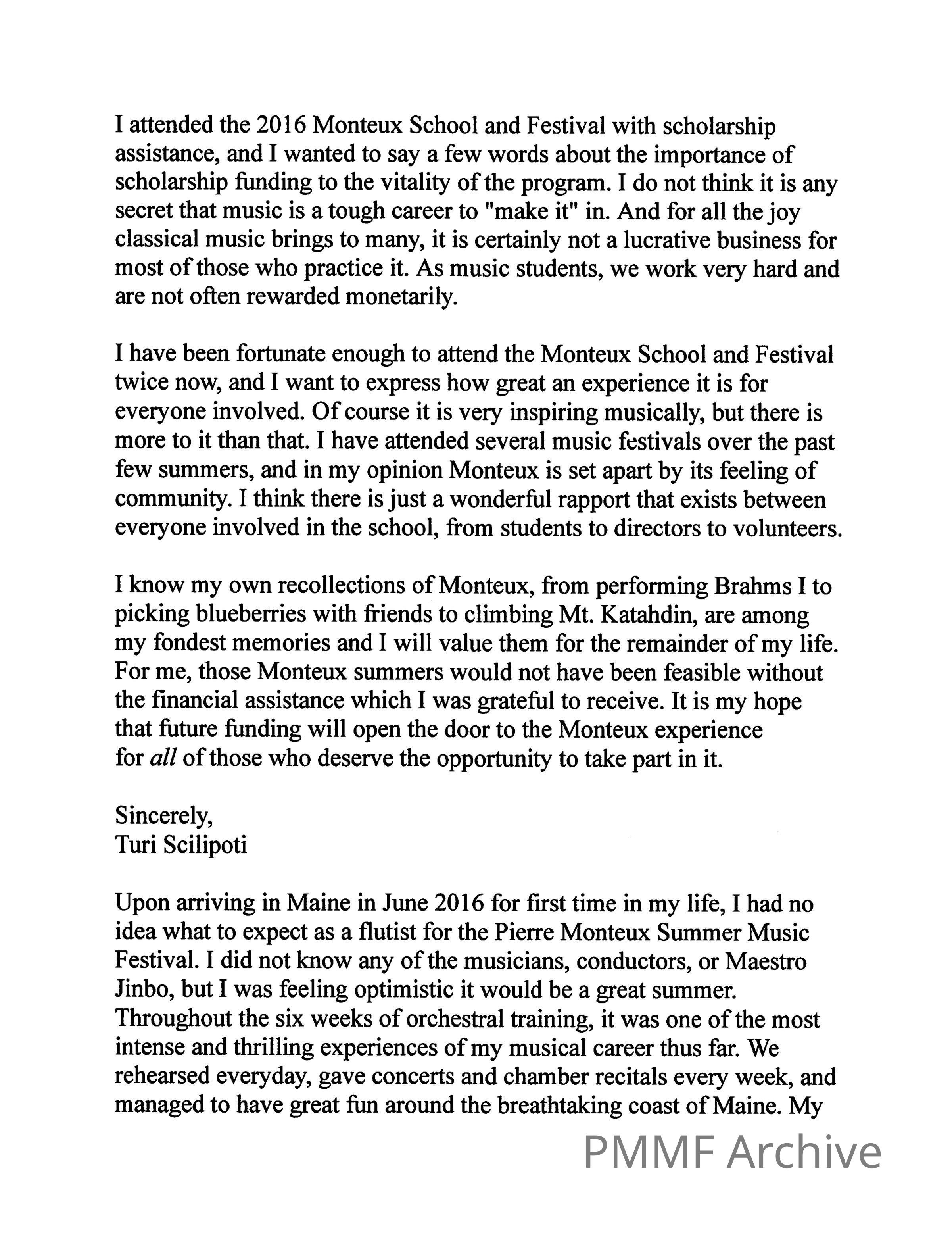 Testimonials from students for scholarship fund-raising campaign 2016Collection