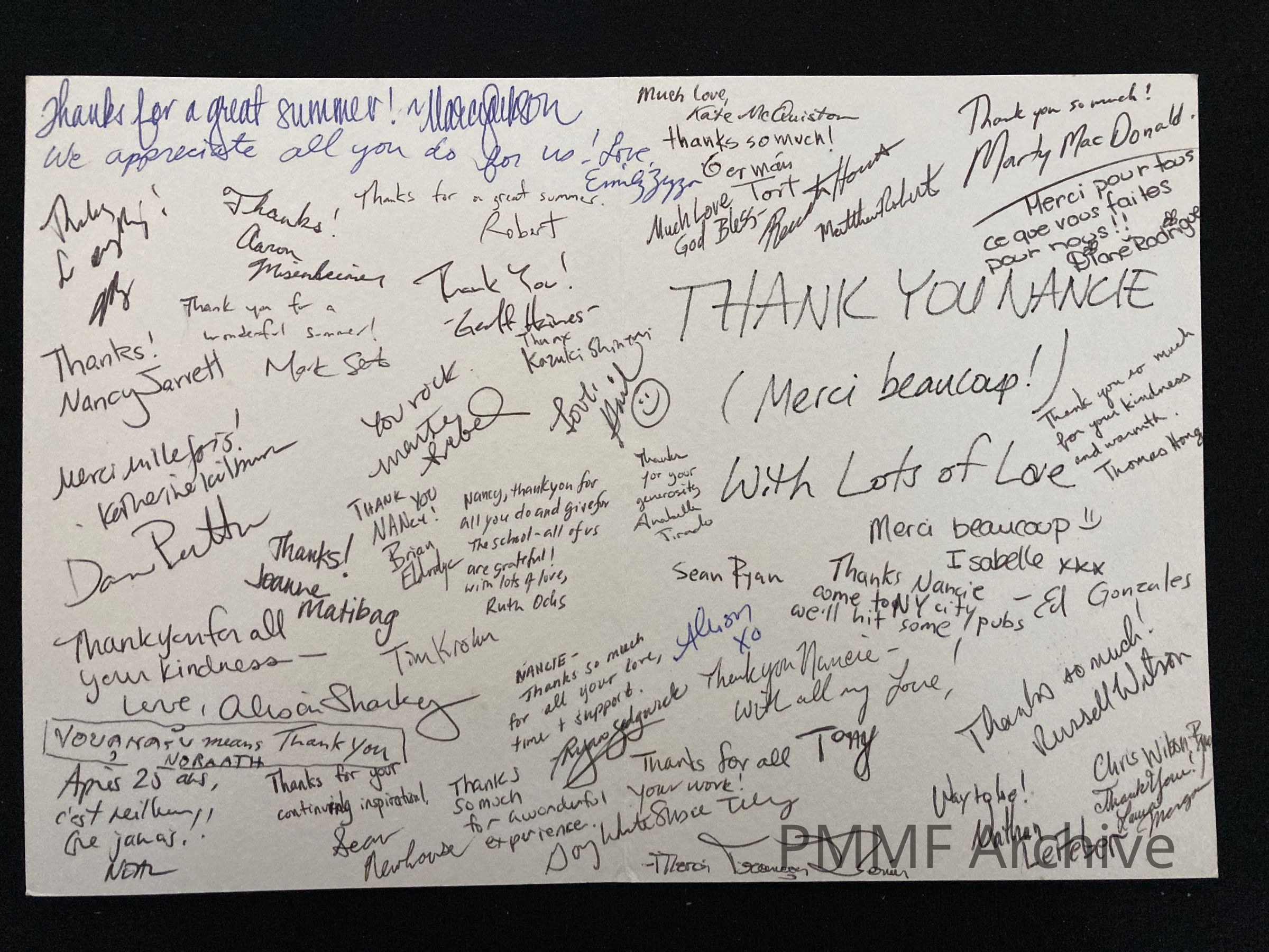 Thank You card to Nancie from Monteux School students