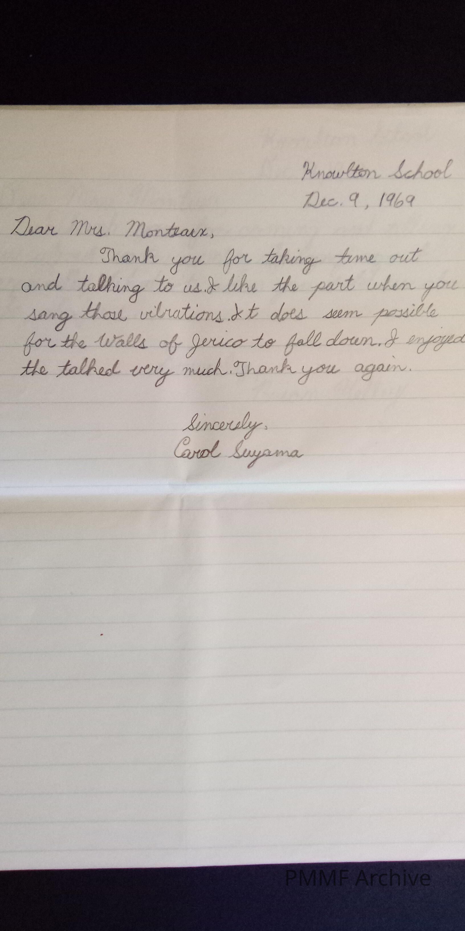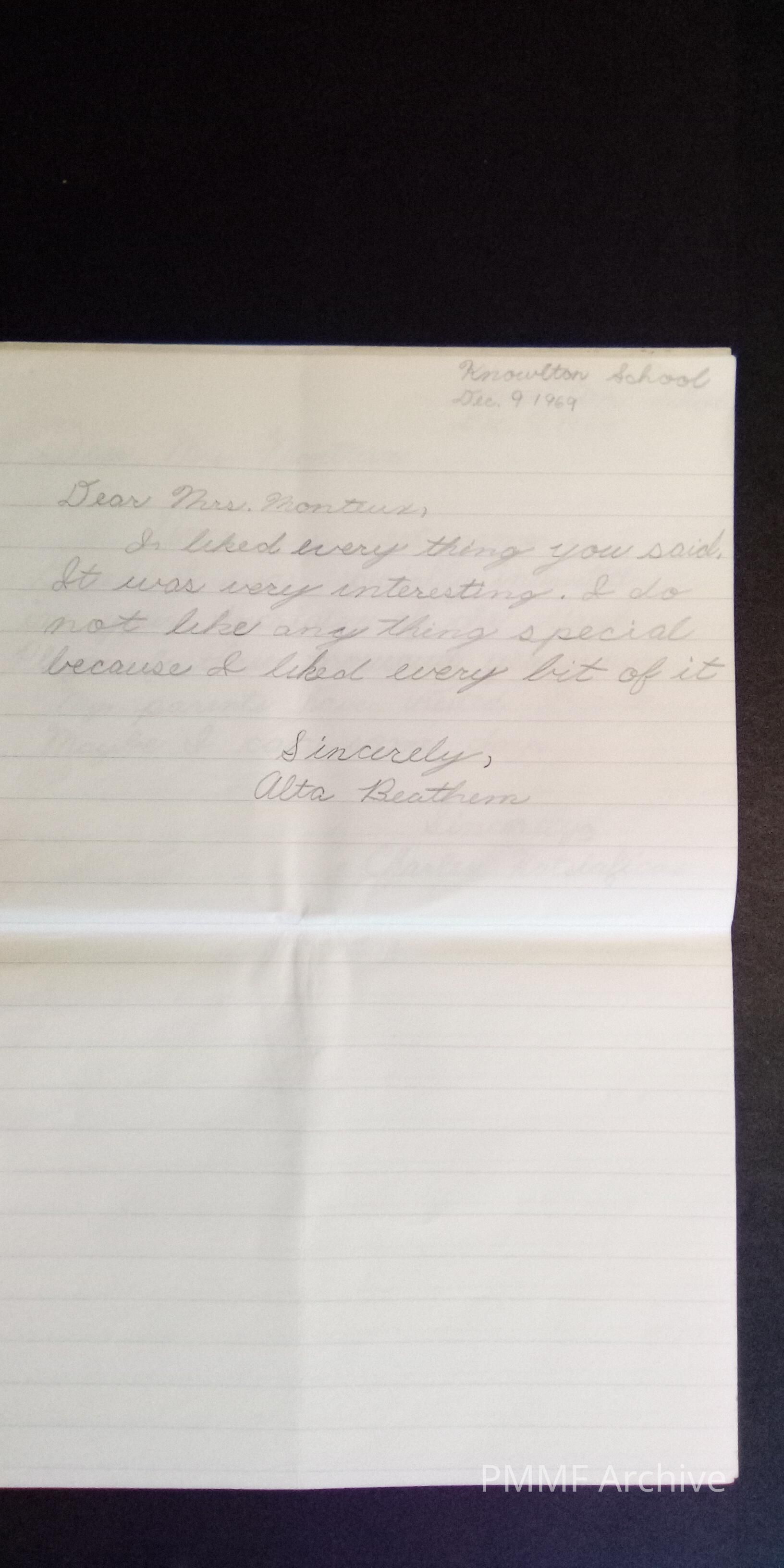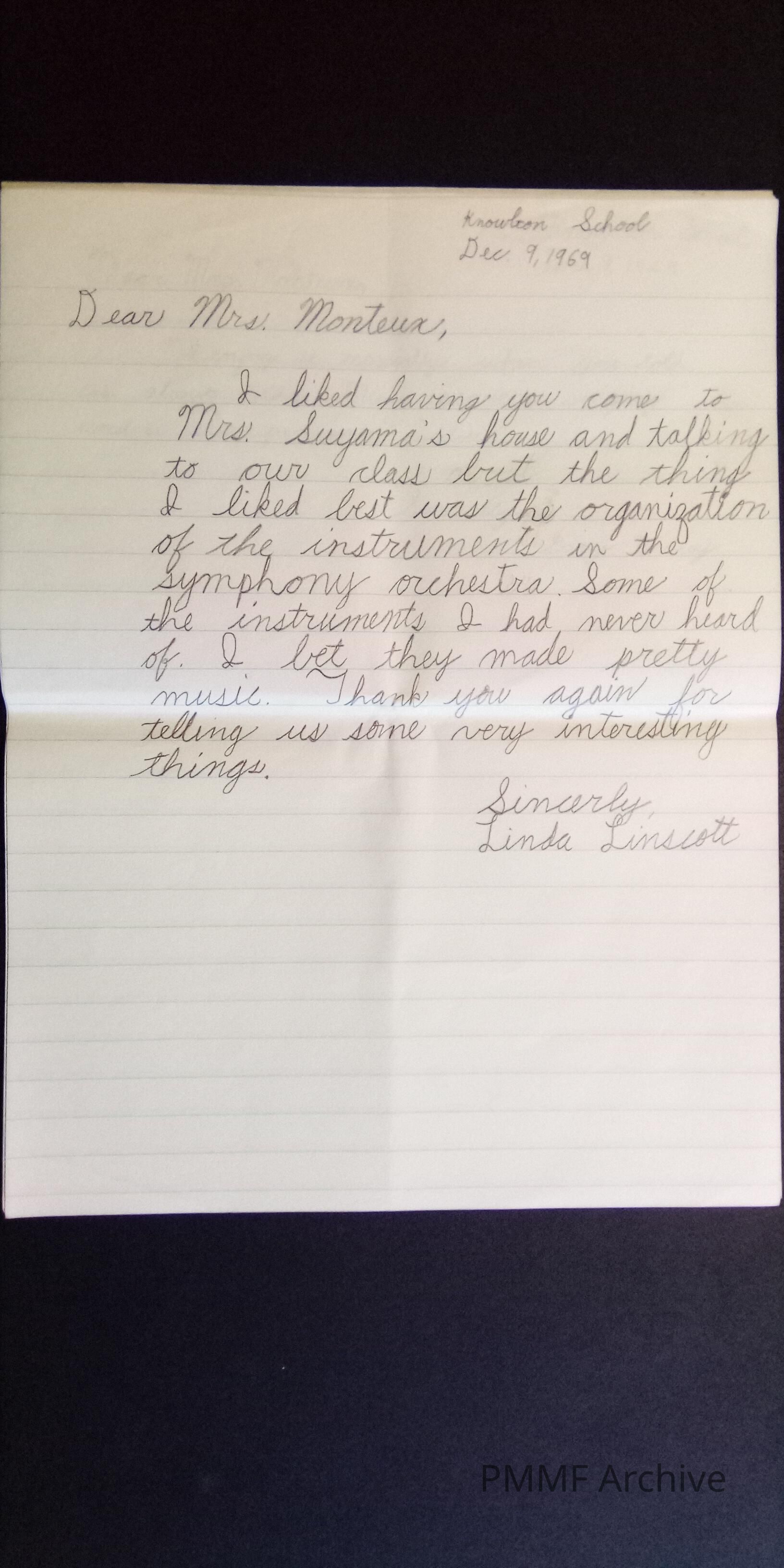 Thank you notes from Knowlton school