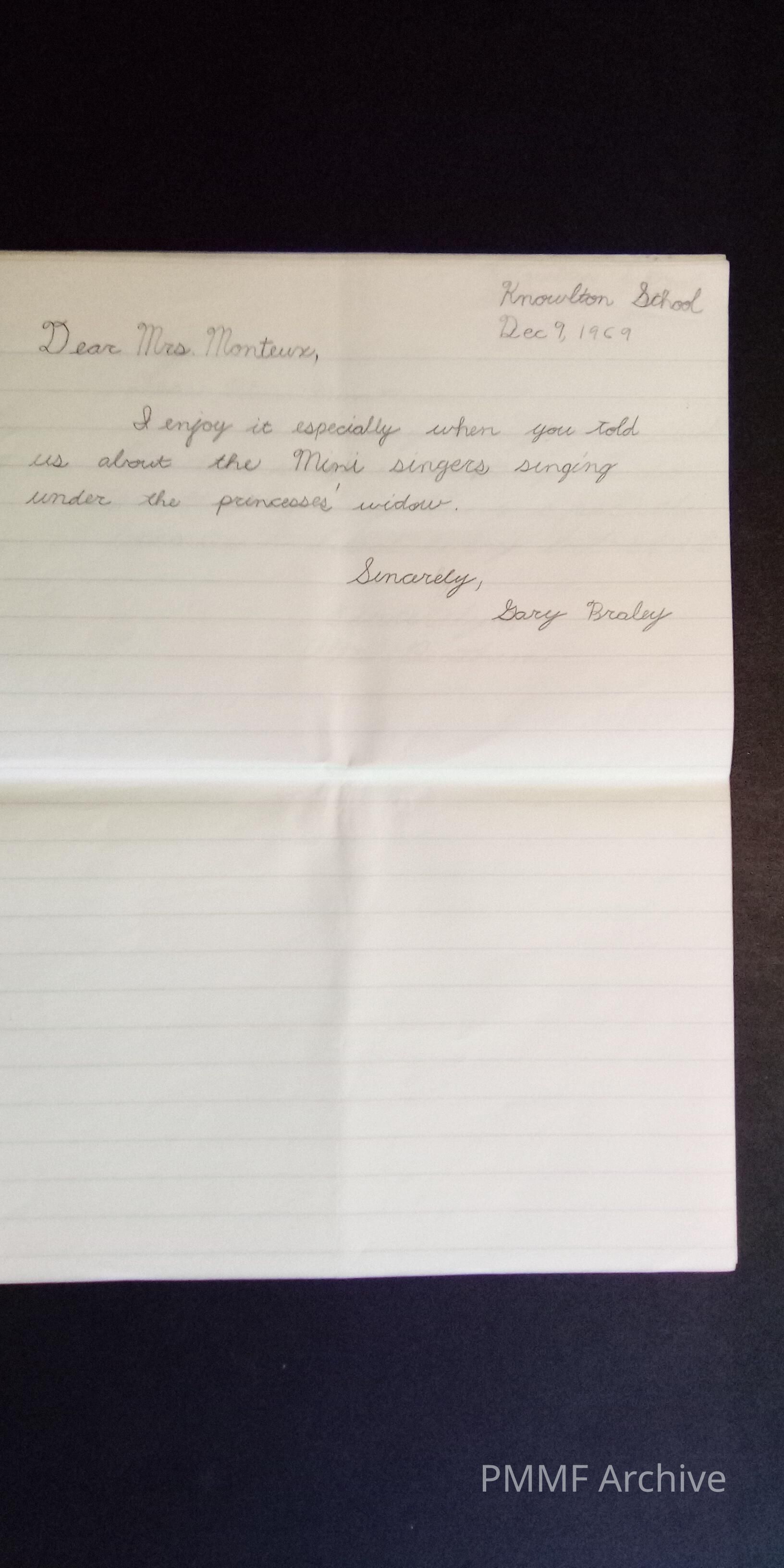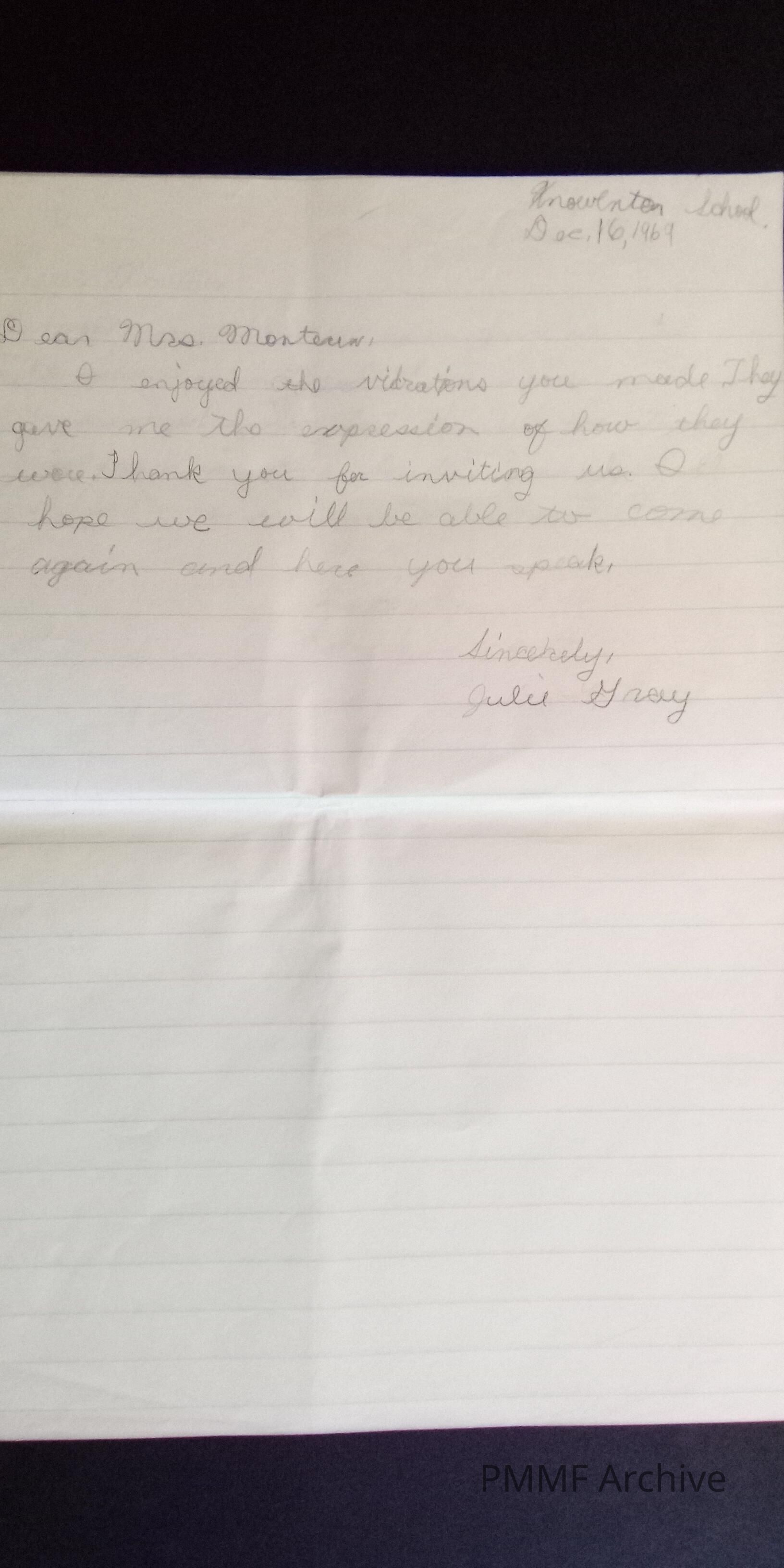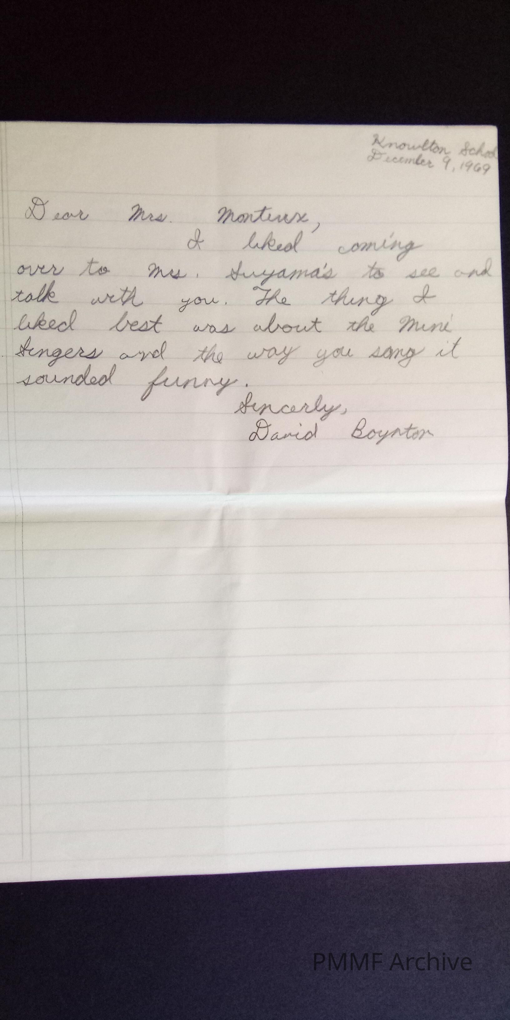 Thank you notes from Knowlton school